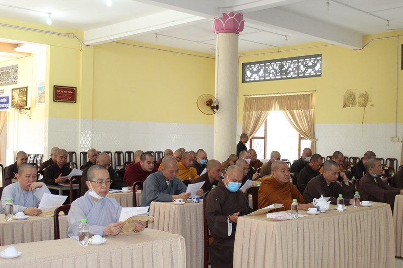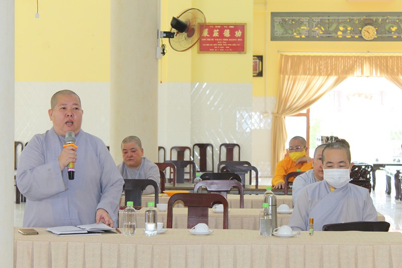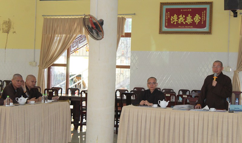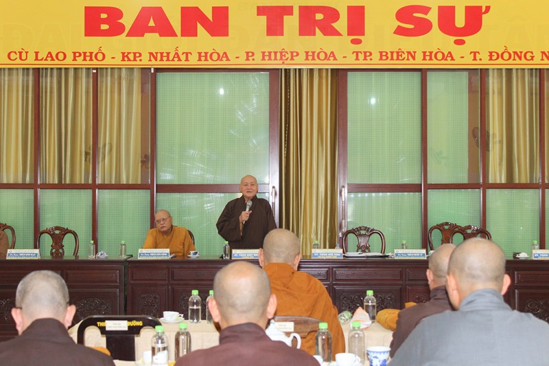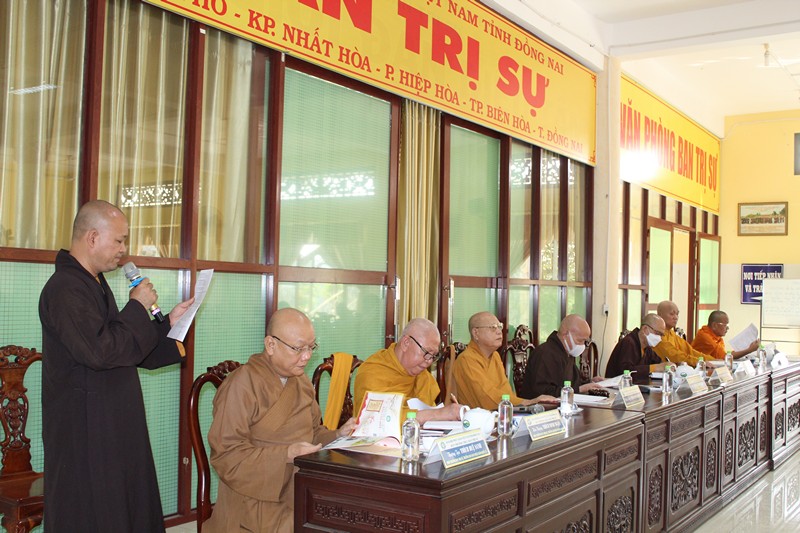 Tại phiên họp, ĐĐ.Thích Đạt Ma Đức Long báo cáo công tác Phật sự trong tháng vừa qua: Ban Trị sự giới thiệu 02 vị Ni đến Bình Thuận - Đồng Tháp; Giới thiệu đi học: 01 vị Tăng học Luật (chùa Huê Nghiêm - TP.HCM), 03 vị Tăng học hệ Cao đẳng Phật học TP.HCM; Thuyên chuyển công tác trong tỉnh: 01 vị Tăng; ngoài tỉnh 01 vị Tăng, 01 vị Ni; Thuyên chuyển ra tỉnh ngoài: 02 Tăng (Quảng Ninh - Bến Tre); Đăng ký bổ nhiệm 02 vị trụ trì (H.Long Thành); Quyết định bổ nhiệm trụ trì: 03 vị (H.Long Thành, TP.Biên Hòa); Đề nghị chủ trương xây dựng: 01 cơ sở tự viện (chùa Viên Giác - TP.Biên Hòa); Quyết định công nhận cơ sở: 05 tự viện (TP.Biên Hòa, H.Long Thành, H.Định Quán); Quyết định đổi danh xưng: 03 tịnh thất (TP.Long Khánh).