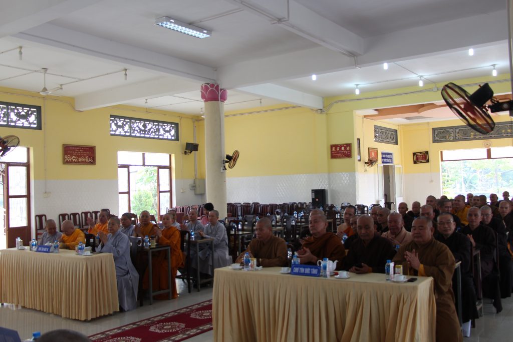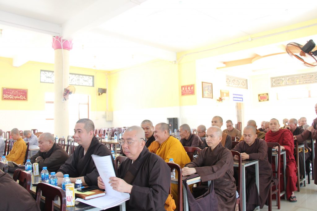 Đại đức Thích Đạo Huy - Phó Thư ký, Chánh Văn phòng BTS, báo cáo công tác Phật sự trong những tháng đầu năm 2019; TT Thích Huệ Khai đọc Thông bạch Đại lễ Phật Đản PL 2563 - DL 2019; Hòa thượng Thích Bửu Chánh - Phó Ban kiêm Chánh Thư ký BTS tỉnh, thông qua kế hoạch tổ chức An Cư Kiết Hạ; Đại đức Thích Thiện Trí - Phó Thư ký BTS tỉnh, Thông báo Thủ tục hồ sơ xuất gia; Hòa thượng Thích Giác Quang - Phó BTS, Trưởng Ban Tăng sự tỉnh, trình bày Dự thảo Tổ chức Đại giới đàn năm 2019; Ni trưởng Thích nữ Huệ Hương- Phó BTS, Trưởng Phân Ban Ni giới tỉnh trình bày một số hoạt động của Phân ban.