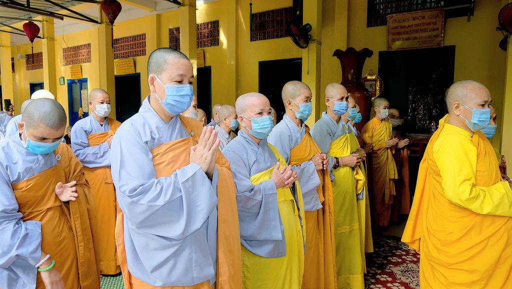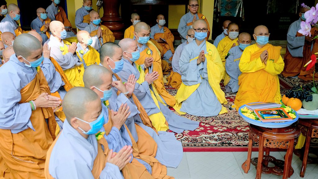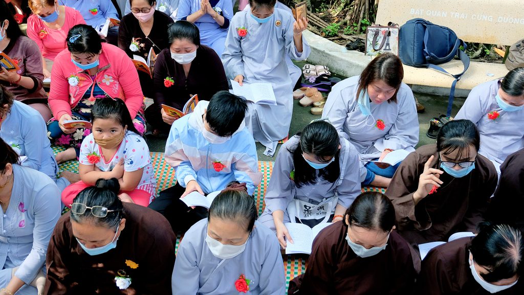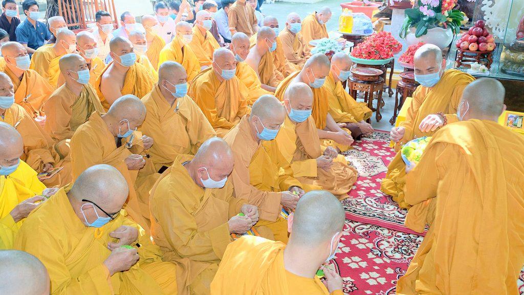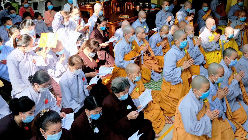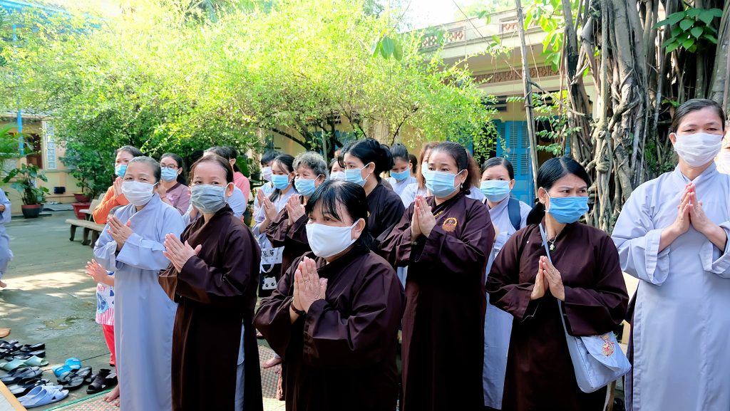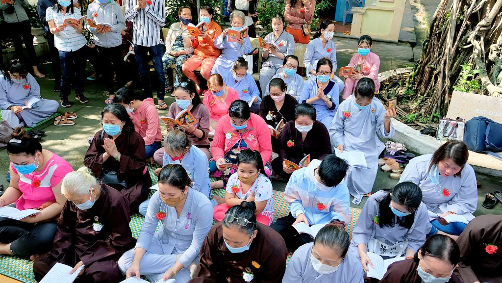 Buổi lễ thể hiện đậm nét ngày hội tri ân, tất cả quý Phật tử lần lượt đều được cài những nhánh hoa tươi sắc lên áo mình. Do tình hình dịch bệnh Covid-19 đang diễn biến phức tạp trên toàn thế giới, nên tất cả chư Tăng Ni, Phật tử đều chấp hành nghiêm chỉnh trong việc phòng, chống dịch bệnh, đeo khẩu trang và giữ gìn vệ sinh sát khuẩn tốt. Dòng người dự lễ vẫn đông đúc, vì có lẽ ai trong tất cả họ những người Phật tử hay chúng ta, đều muốn trên chiếc áo mình được cài một nhành hoa ý nghĩa nhân mùa Vu lan Hiếu hạnh!