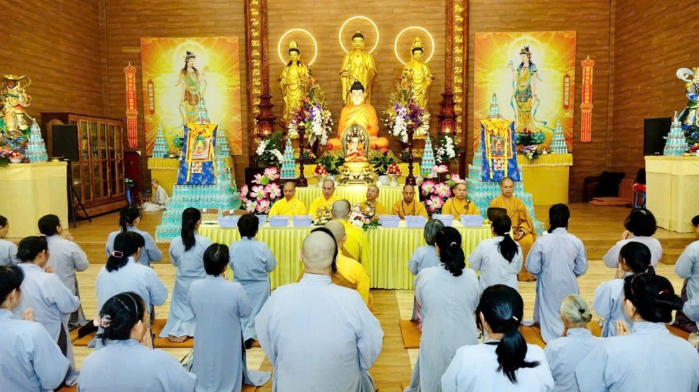Sau phiên họp, toàn thể chư Tôn đức Tăng Ni và đạo tràng Phật tử đã trang nghiêm vân tập tại Chánh điện chùa Quan Âm để tụng kinh tạ đàn Dược Sư Thất Châu, cầu nguyện quốc thái dân an, thế giới hòa bình, đồng thời hồi hướng cho kỳ bầu cử Hội đồng Nhân dân các cấp sắp tới được thành công tốt đẹp, nhân dân an cư lạc nghiệp, gia đình Phật tử luôn được bình an, mạnh khỏe và hạnh phúc.