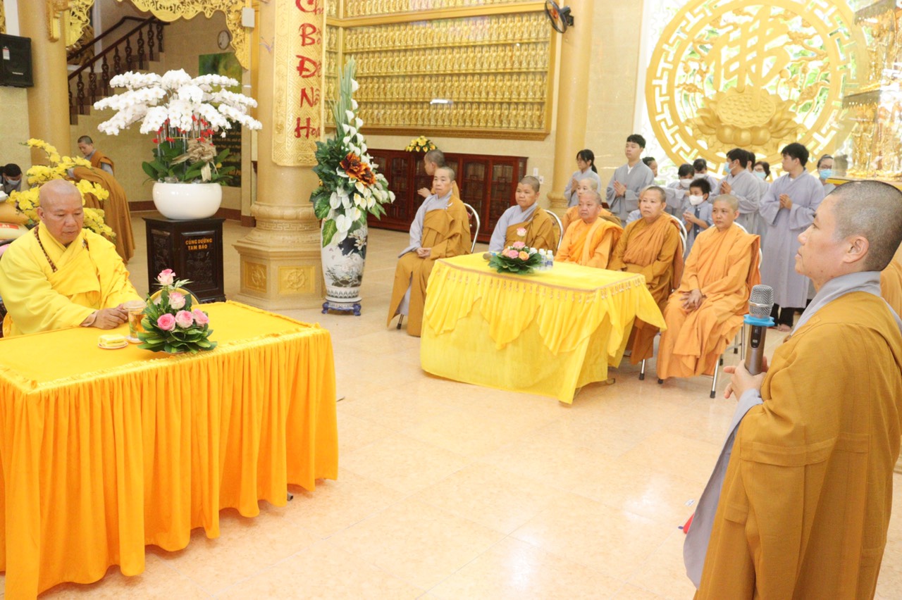 Thượng tọa Trưởng ban cũng thăm hỏi, chúc sức khỏe và chúc mừng đến toàn thể chư Tăng, Ni đang tu học được thêm một tuổi đạo. Đồng thời, Thượng tọa chia sẻ về những trải nghiệm khi còn tu học tại Trường TCPH tỉnh Lâm Đồng và khuyến tấn chư hành giả nỗ lực tu tập để trau dồi thân tâm, trang nghiêm giáo hội.