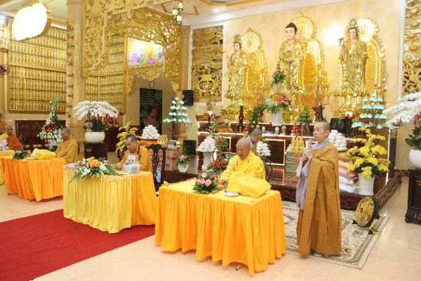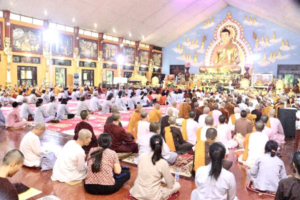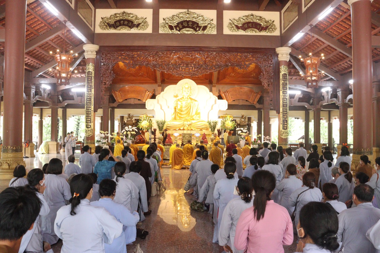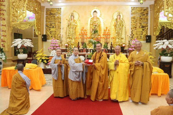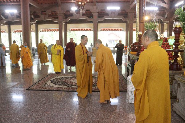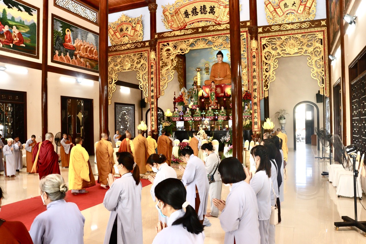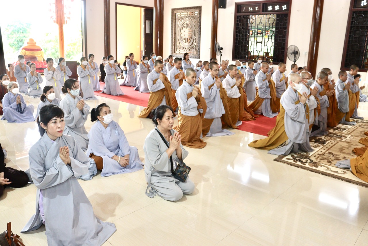 Sáng cùng ngày, đoàn y bác sỹ từ thiện gồm có BS.CK2 Trần thị Thanh Thủy – Trưởng phòng Quản lý Chất lượng, bệnh viện Hùng Vương TP.HCM; BS.CK2 Hồ Thị Minh Nguyệt – Phó khoa nội Thận bệnh viện Nguyễn Trãi; DS. Hoàng Luân – Giám đốc Cty dược phẩm Minh Khang TP.HCM đã đến hạ trường chùa Long Vân (TP. Biên Hòa) mở lớp chuyên đề hướng dẫn về dinh dưỡng trong thức ăn chay, các triệu chứng hậu COVID và cách khắc phục cũng như bệnh cao huyết áp cho chư Tăng Ni.
