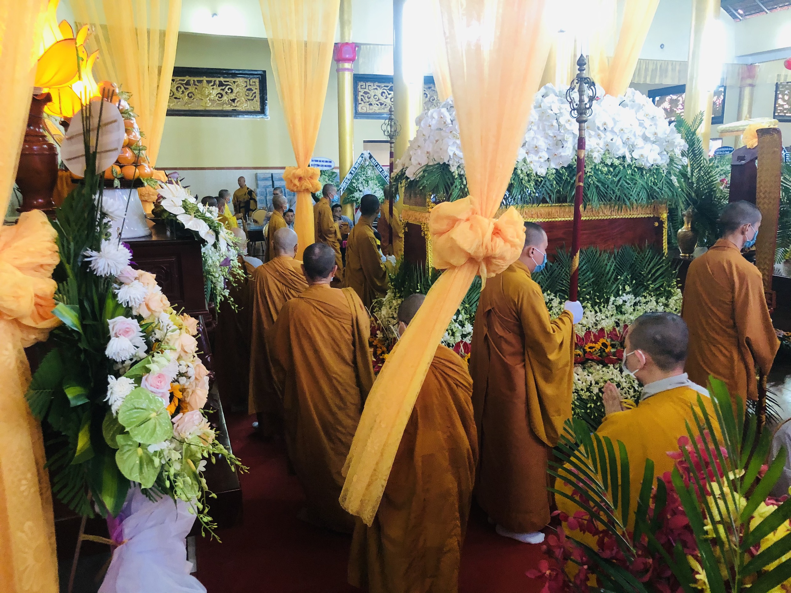 Đối trước kim quan và di ảnh của Hòa thượng, chư Tôn đức thành kính thắp nén tâm hương dâng lời cầu nguyện hương linh thong dong nhẹ bước cõi an nhiên. Một lòng nguyện tiếp bước trên con đường hành đạo, là cánh tay nối dài những hạnh nguyện, sự nghiệp Đạo pháp của Hòa thượng còn đang dang dở.