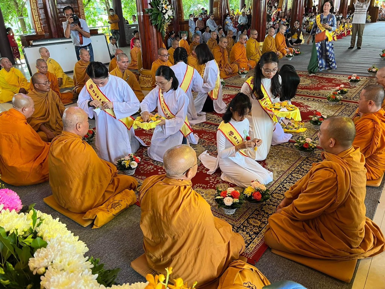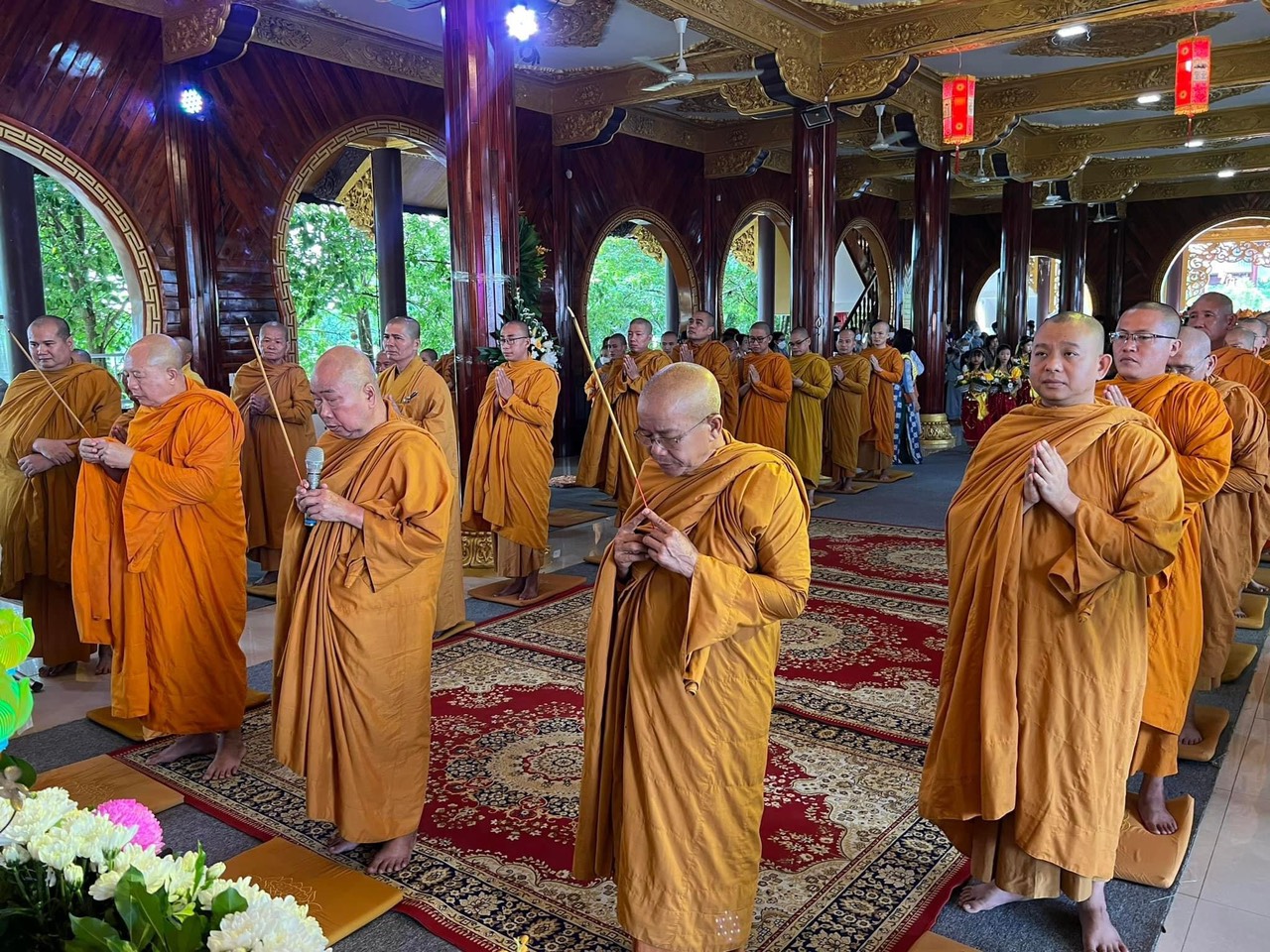 HT.Giác Pháp thay mặt chư Tôn Giáo phẩm và đại chúng Tăng Ni chứng minh công đức của toàn thể nam nữ Phật tử trong việc hộ trì Tam bảo đúng Chánh pháp,… “Nguyện cầu mười phương chư Phật gia hộ cho quý Phật tử đạo tâm kiên cố, luôn tinh tấn dũng mãnh trên đường đạo, mãi là những người con hiền, cháu thảo với ông bà cha mẹ, xứng đáng là người đệ tử chân chánh của Đức Như Lai”.