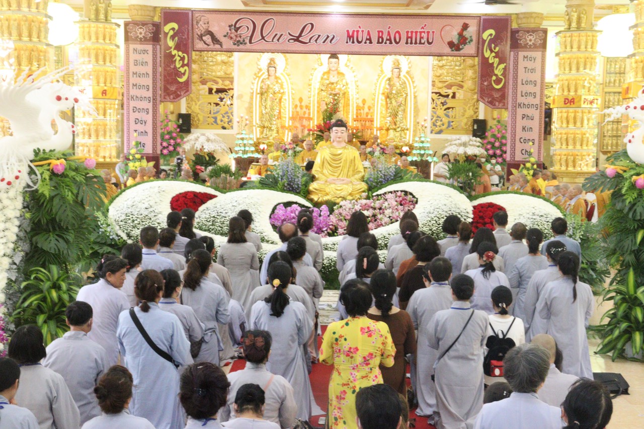 Tại buổi lễ, Phật tử Lan Phương đại diện Phật tử dâng lời tác bạch cúng dường trai phạn Thiên Tăng mùa Vu lan báo hiếu chùa Long Vân, đã hoài niệm về ơn đức sinh thành dưỡng dục của cha mẹ gây niềm xúc động cho thiện nam tín nữ Phật tử tham dự.