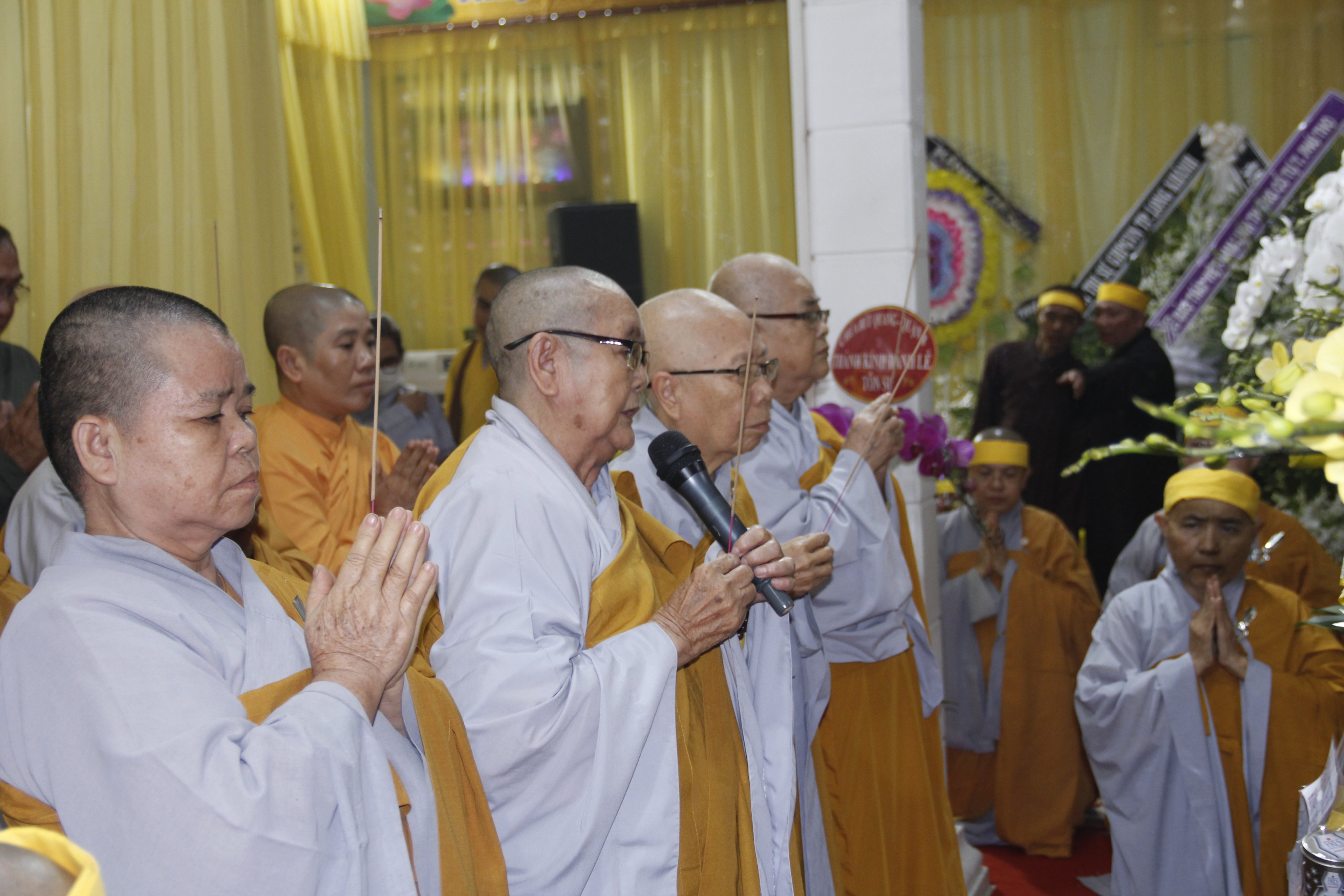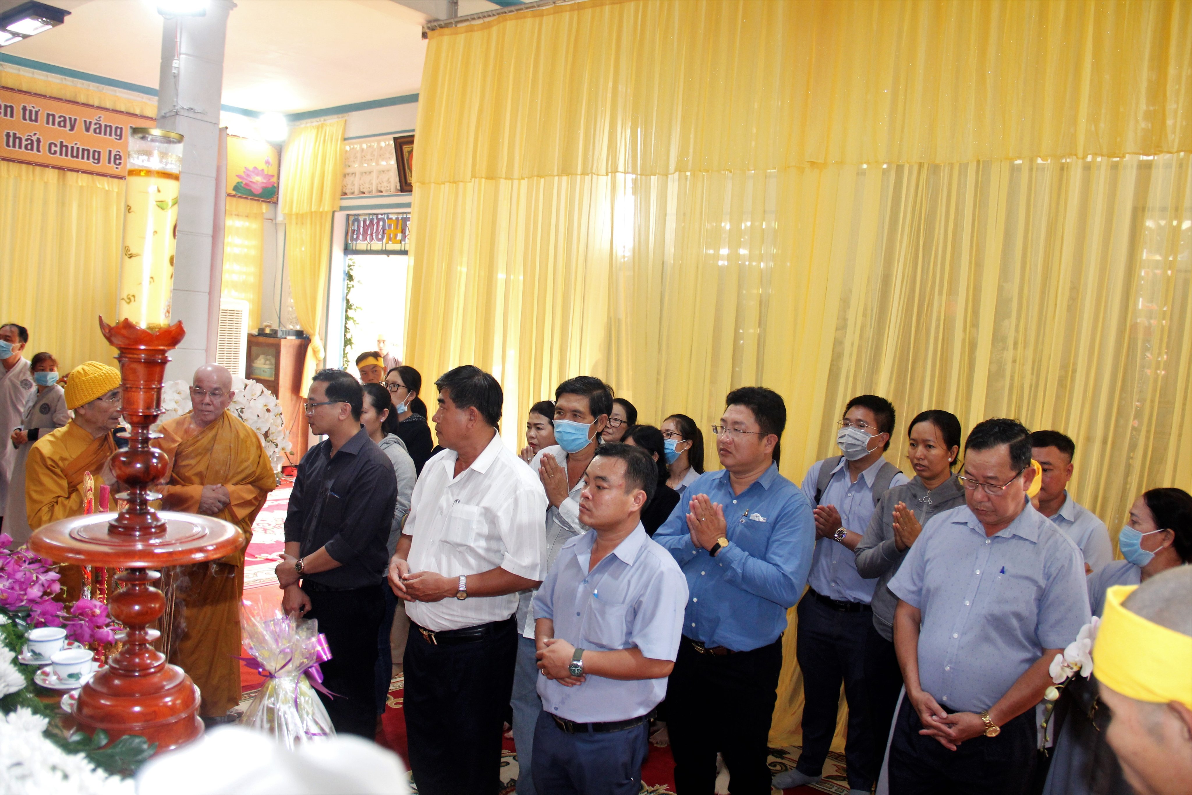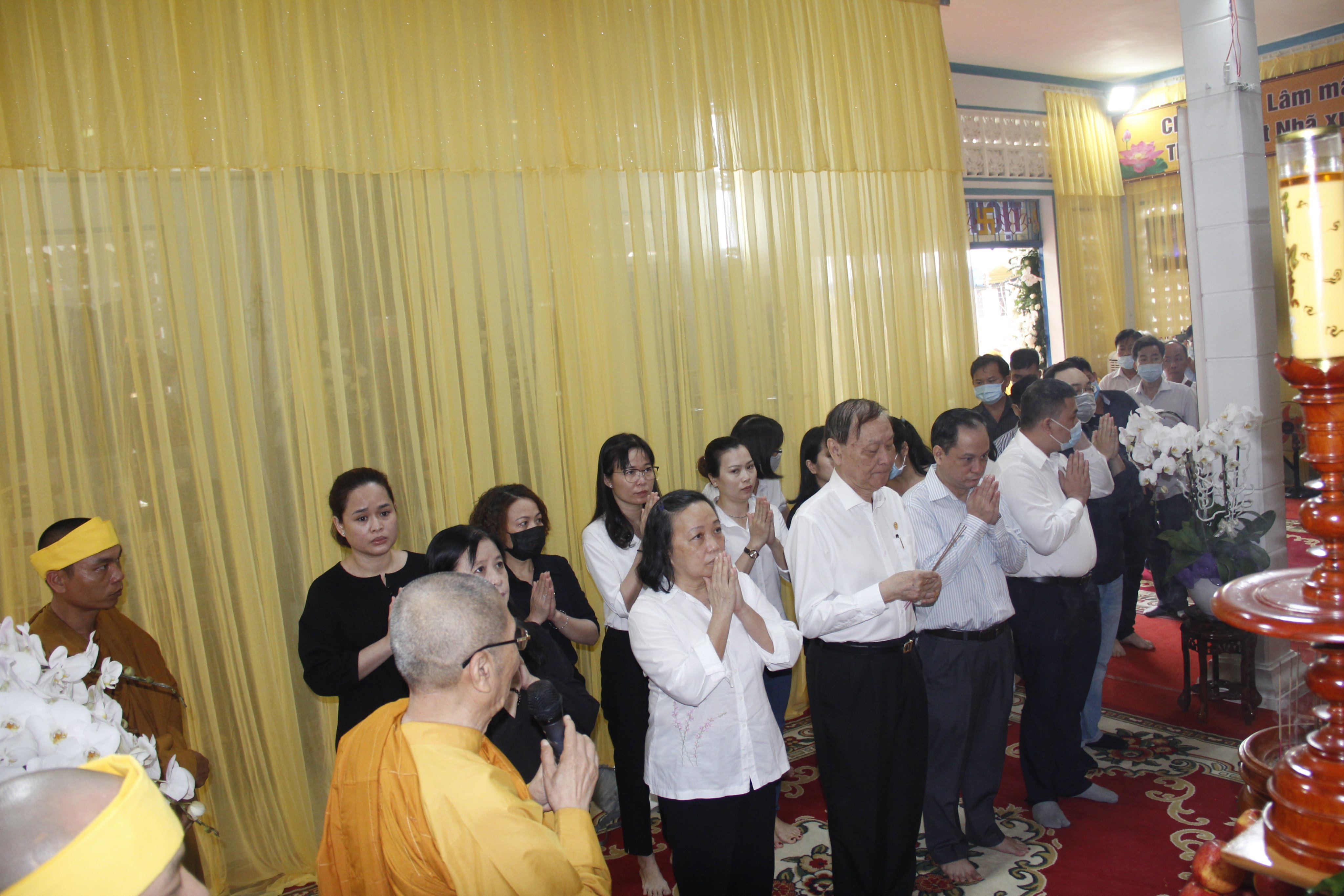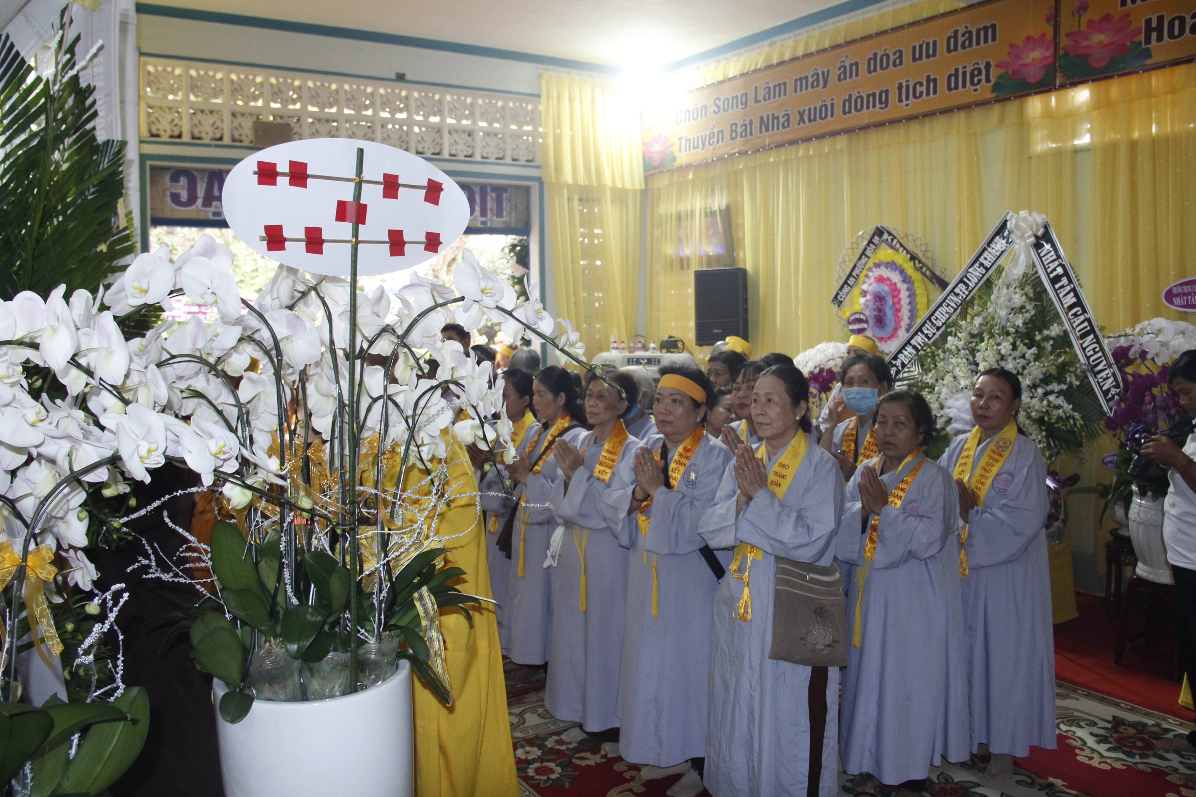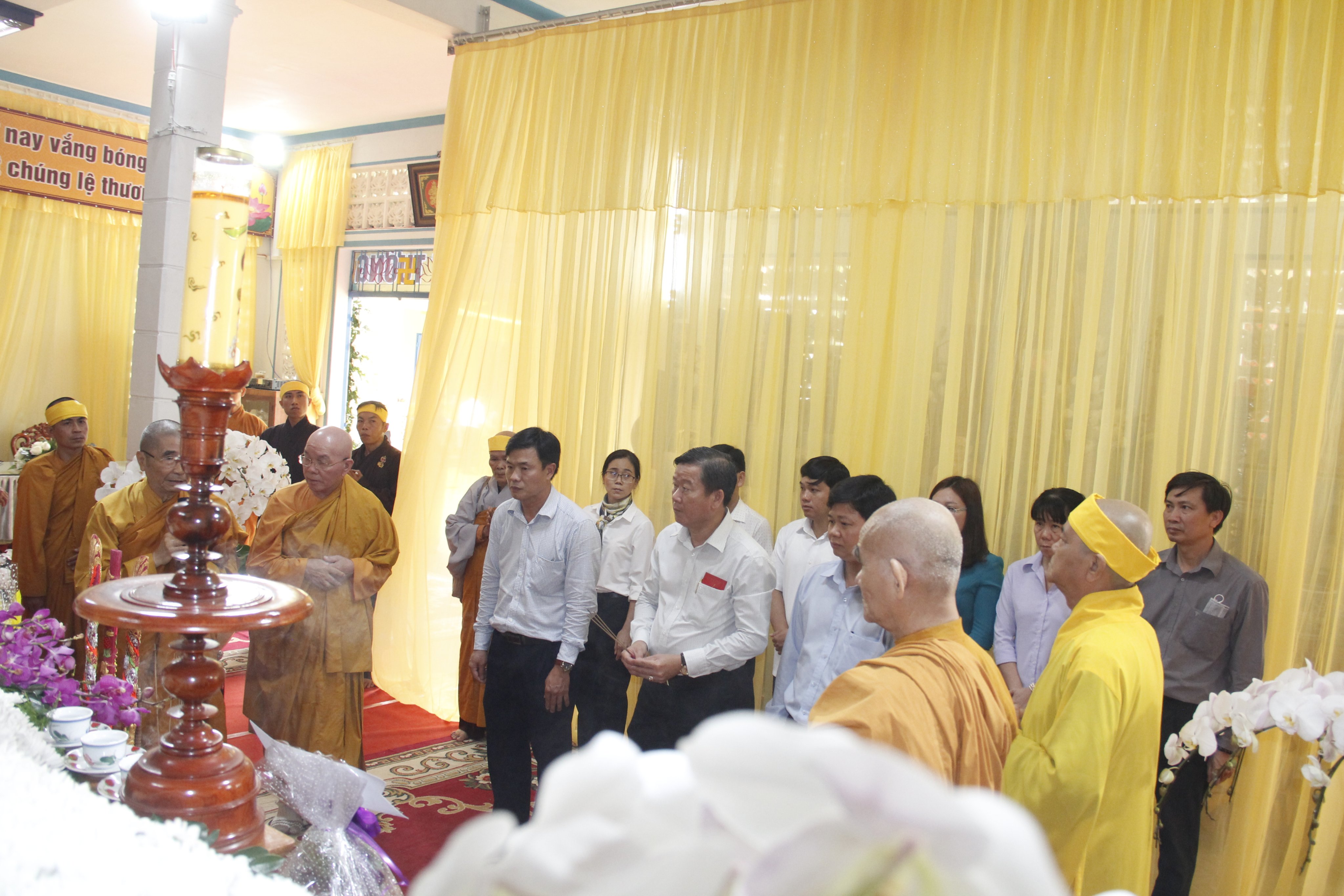 Thật xúc động trước những công hạnh cao quý của Ni trưởng TN. Huệ Giác đã 84 năm cống hiến cho đạo pháp và dân tộc, nay xả báo thân trở về miền Tây phương tịnh cảnh. Ban Tôn giáo Chính phủ do Ông Nguyễn Phước Ninh - Phó Trưởng phòng Tổng hợp, Vụ Công tác Tôn giáo phía Nam đại diện;Phái đoàn Tỉnh ủy, UBND, HĐND, UBMTTQVN tỉnh Đồng Nai; Thành ủy - UBND - UBMTTQVN TP. Biên Hòa; Đảng ủy – HĐND - UBND - UBMTTQ VN phường Bửu Hòa, phường Hóa An, xã Cẩm Đường; Phái đoàn Công an PA02 tỉnh Đồng Nai, Công an huyện Long Thành; Hội chữ Thập đỏ tỉnh; TP. Biên Hòa; HCTĐ Tổng Công ty Cao su Đồng Nai; Đội ngũ Y Bác sĩ Bệnh viện Tim Tâm Đức do Bác sĩ Nguyễn Ngọc Chiếu làm trưởng đoàn; Trung tâm nuôi dạy trẻ khuyết tật tỉnh Đồng Nai;...hướng dẫn phái đoàn đến trước Giác linh đường dâng hương tưởng niệm Giác linh Ni trưởng, cũng như có đôi lời phân ưu cùng môn đồ pháp quyến.