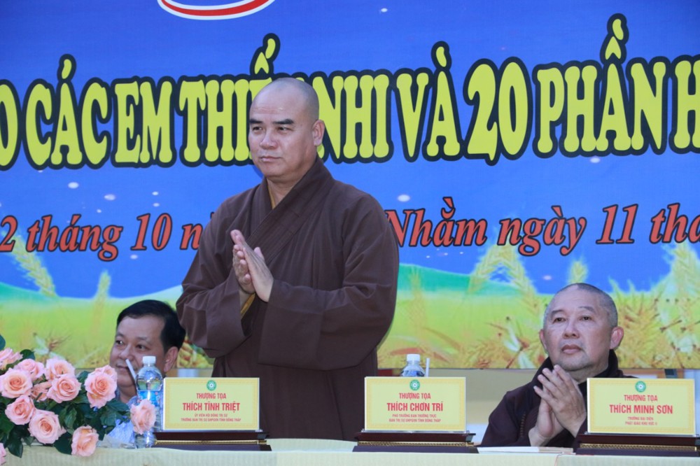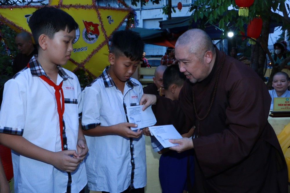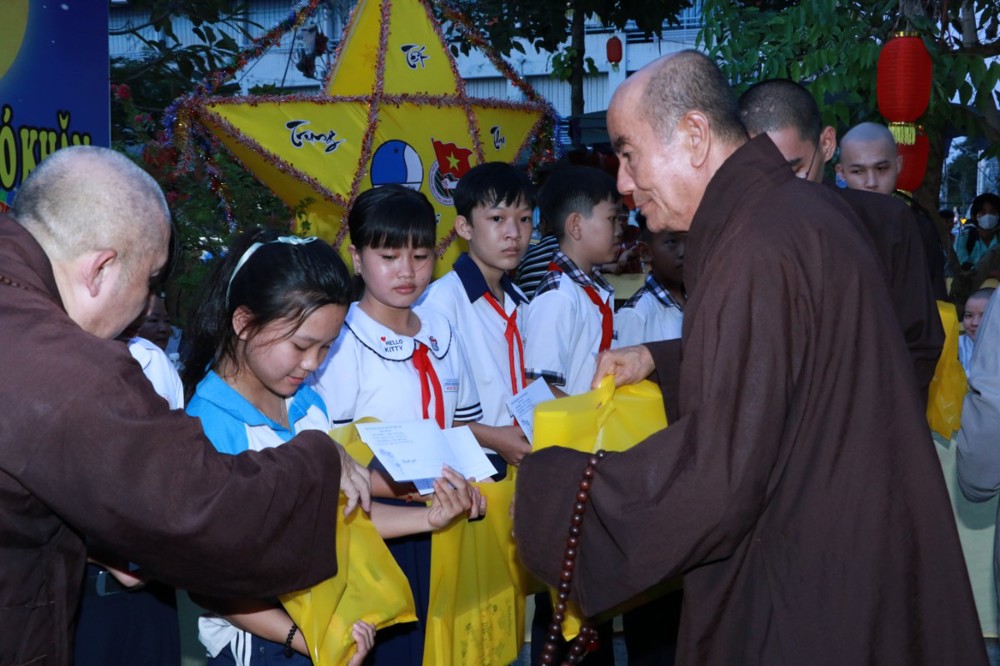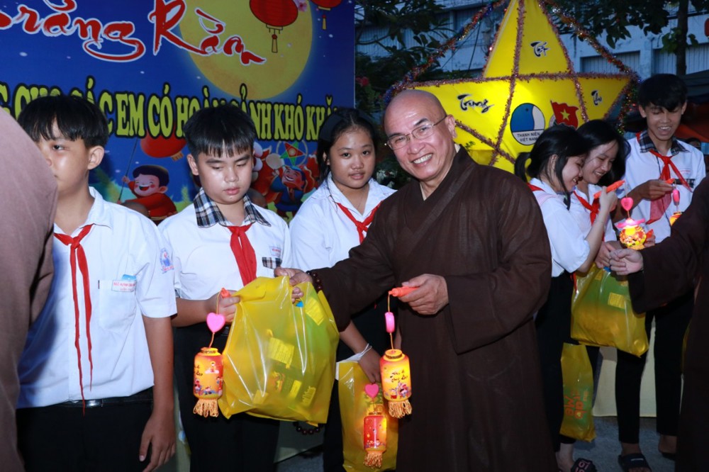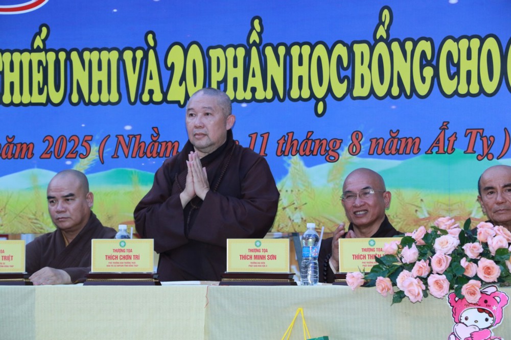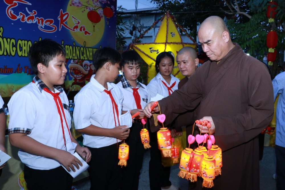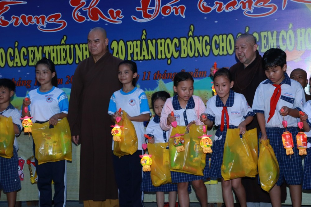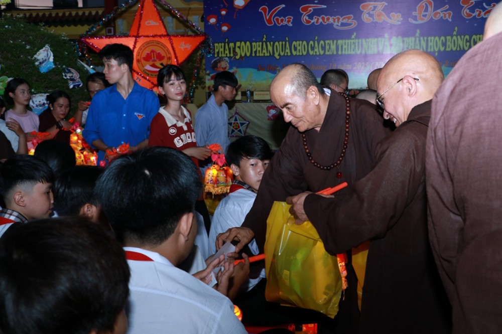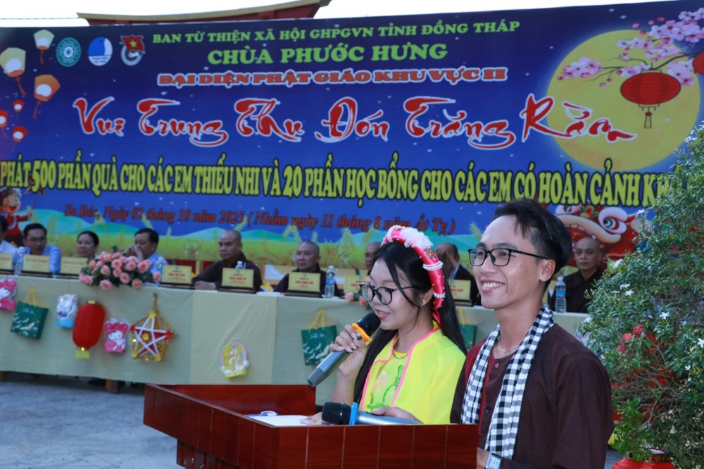 Trên tinh thần Đạo pháp luôn đồng hành cùng Chính Quyền các cấp, quan tâm chăm lo đến đời sống, niềm vui và nụ cười tuổi thơ các em thiếu nhi, các em là mầm non tương lai của Đất nước. Với ý nghĩa đó, Ban từ thiện xã hội GHPGVN tỉnh Đồng Tháp cùng Ban đại diện Phật giáo khu vực II đã long trọng “Đêm Hội Trăng Rằm” tặng quà Trung Thu cho các em thiếu nhi nhân dịp Tết Trung 2025 tại Chùa Phước Hưng – Phường Sa Đéc. Phát 500 phần quà Trung Thu cho các em Thiếu Nhi nhân dịp Tết Trung 2025. Mỗi phần quà gồm có lồng đèn, bánh trung thu, kẹo, snack, tập…, bên cạnh đó Chư tôn đức khu vực II còn trao tặng 20 phần học bổng (1.000.000đ/1 phần) cho các em thiếu nhi có hoàn cảnh gia đình khó khăn.