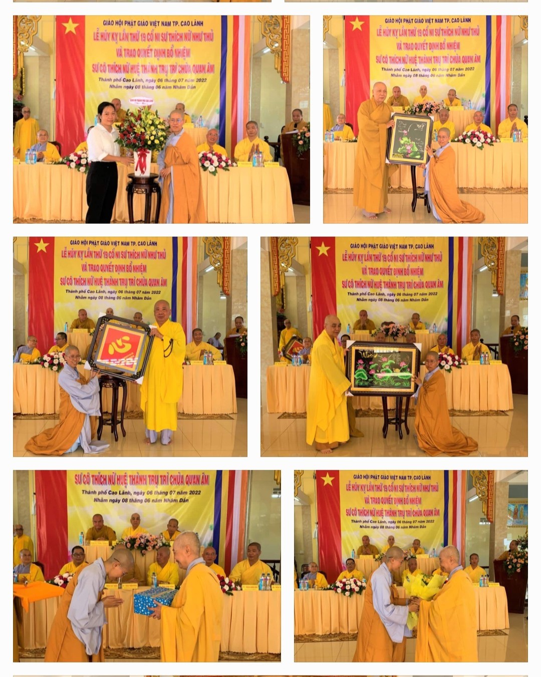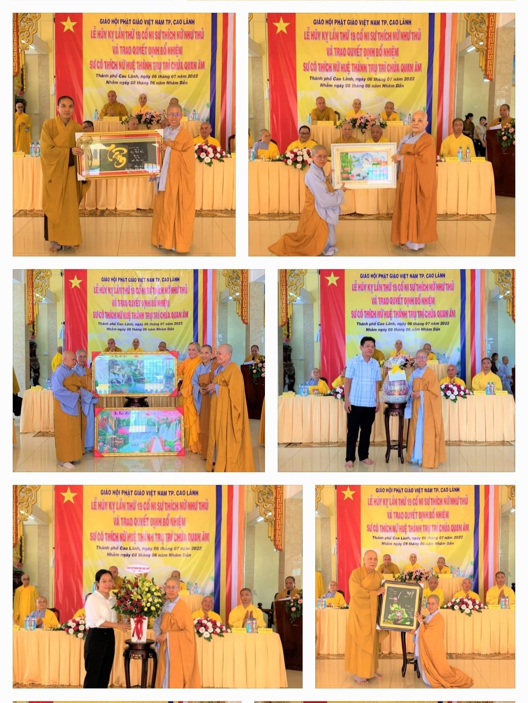 Dịp này, Sư cô tân Trụ trì chùa Quan Âm đã đón nhận nhiều lẵng hoa và quà chúc mừng từ chư Tôn đức, lãnh đạo chính quyền các cấp tỉnh và Phật tử.