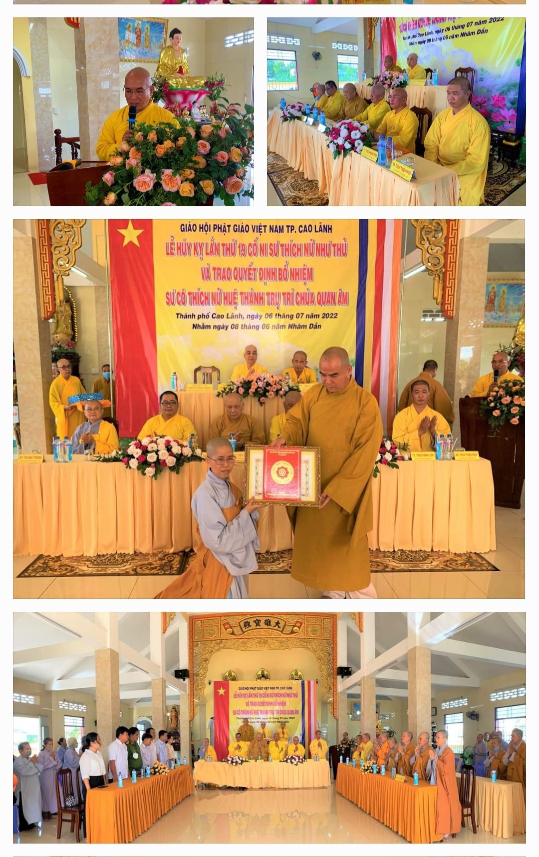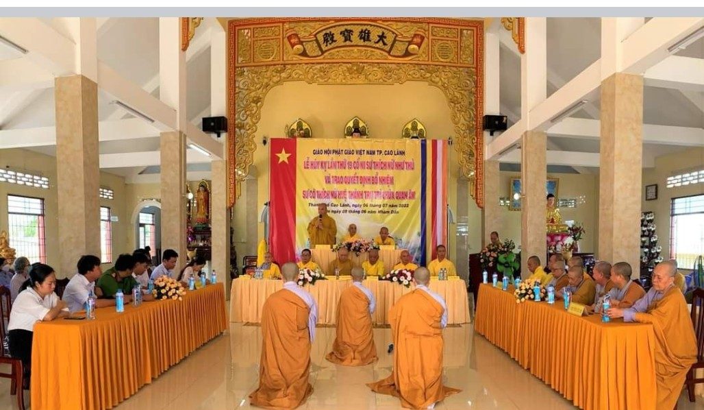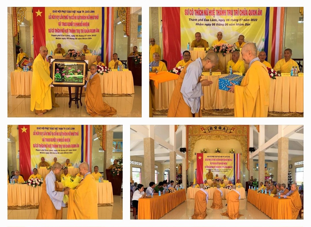 Thay mặt Thường trực BTS Phật giáo tỉnh TT. Thích Minh Sơn - Chánh thư ký đã đọc quyết định bổ nhiệm trụ trì chùa Quan Âm. TT. Thích Tĩnh Triệt - Phó ban Thường trực BTS Phật giáo tỉnh trao quyết định bổ nhiệm cho Sư cô Thích Nữ Huệ Thành tân trụ trì.