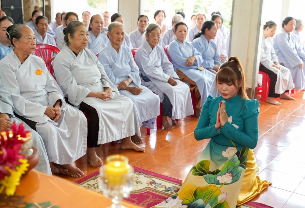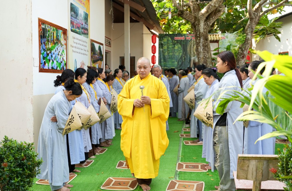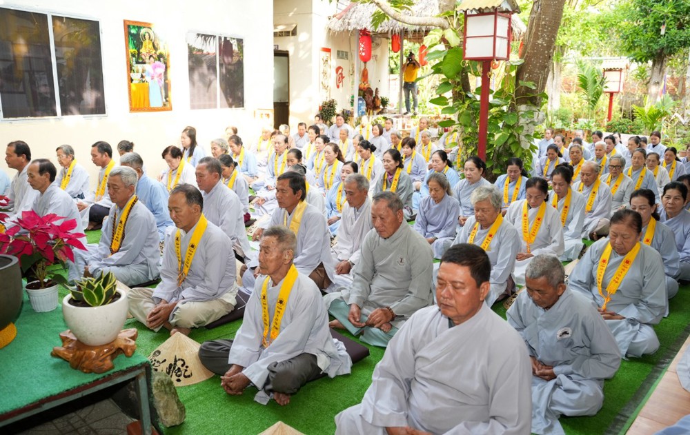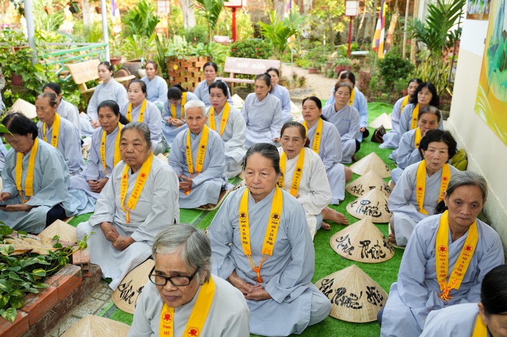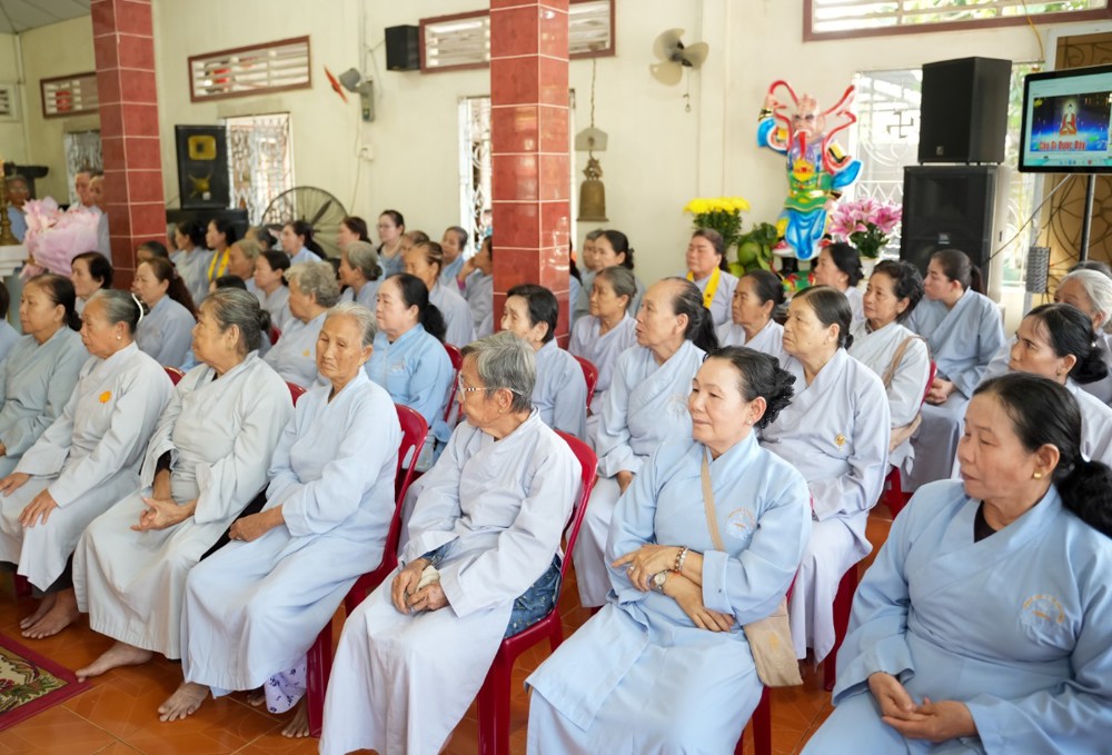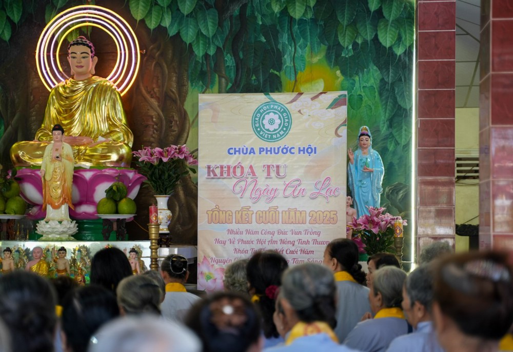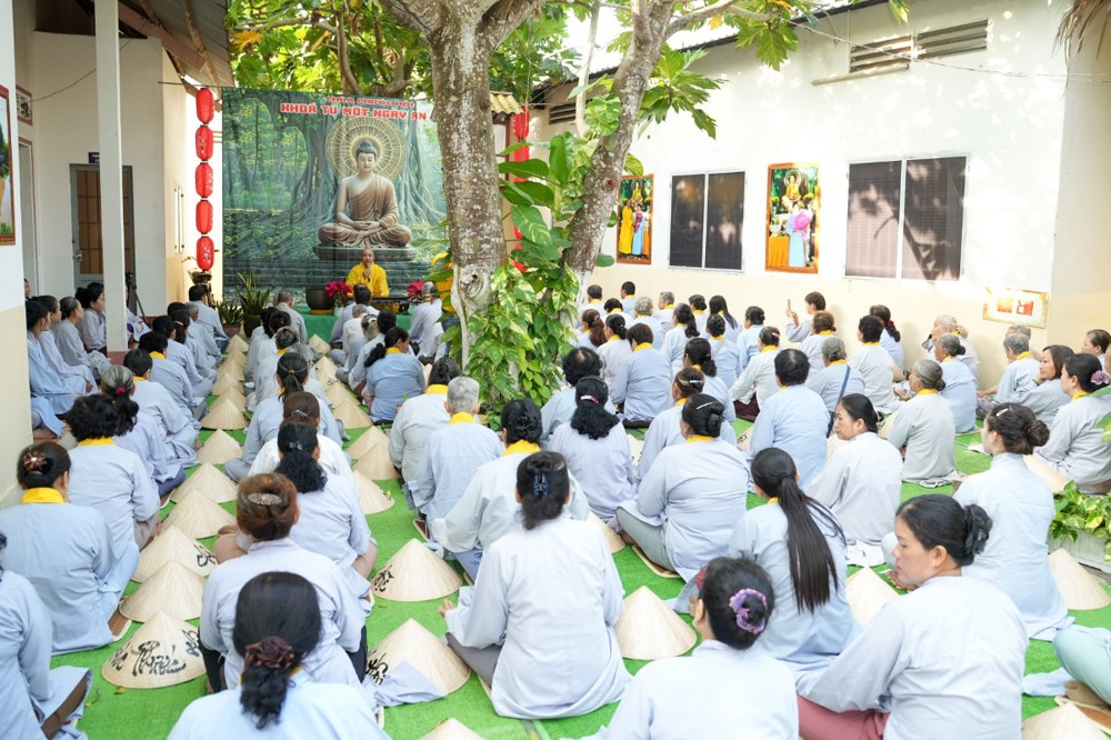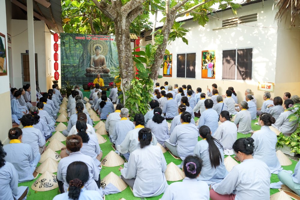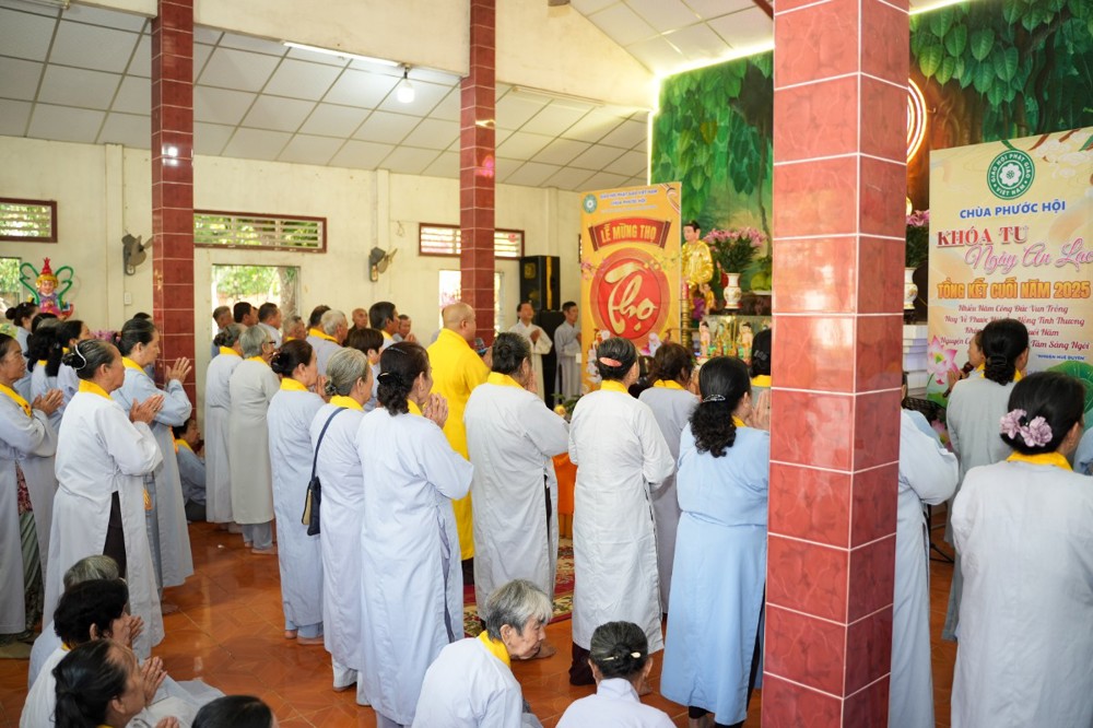 Trước đó, trong khuôn khổ ngày tổng kết, từ sáng sớm Phật tử đã vân tập về chùa tham dự khóa tu. Dưới sự hướng dẫn của Đại đức Thích Đức Lộc, đại chúng đã trang nghiêm niêm hương bạch Phật và đảnh lễ Tam bảo tại chánh điện, mở đầu cho một ngày tu học đầy chánh niệm.