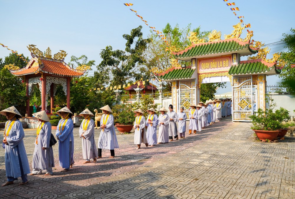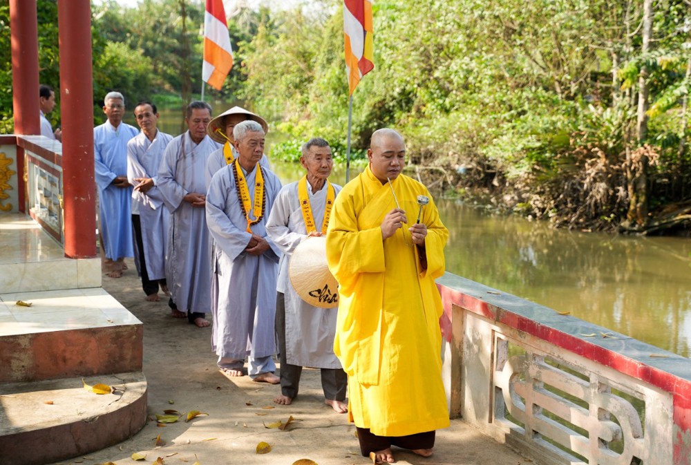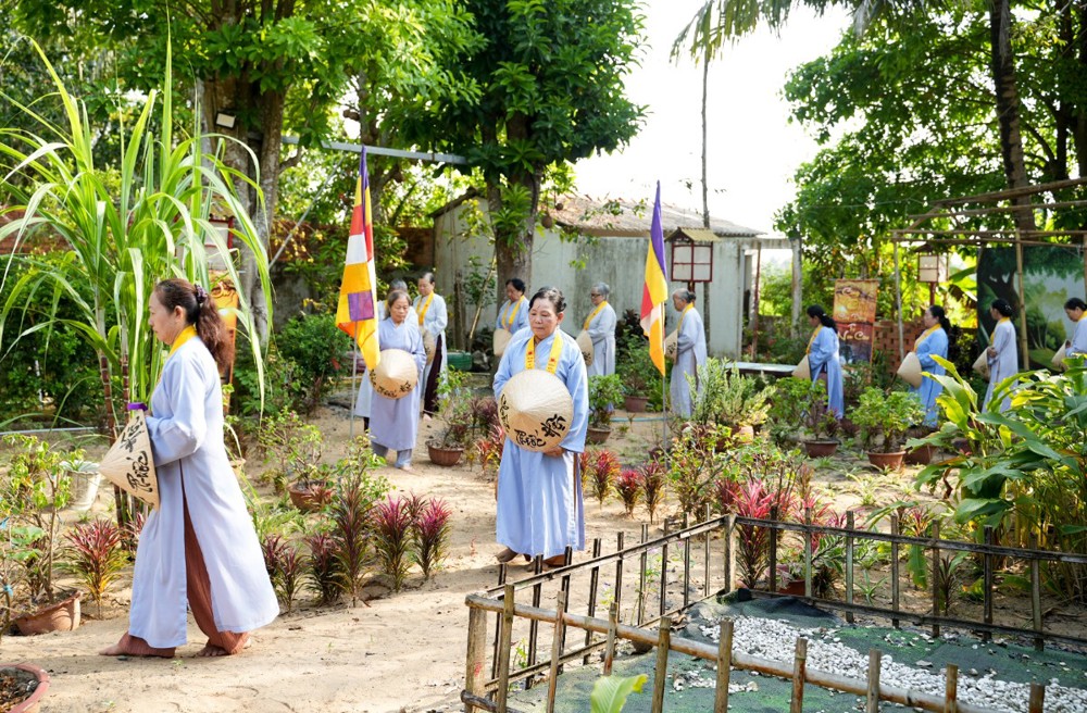 Giữa dòng người kinh hành ấy, hình ảnh các Phật tử thong thả trong từng bước chân chánh niệm đã để lại ấn tượng sâu đậm – một đạo tràng đang cùng nhau đi trong tỉnh thức, nương tựa nơi Chánh pháp giữa không gian yên bình của miền quê sông nước miền Tây.