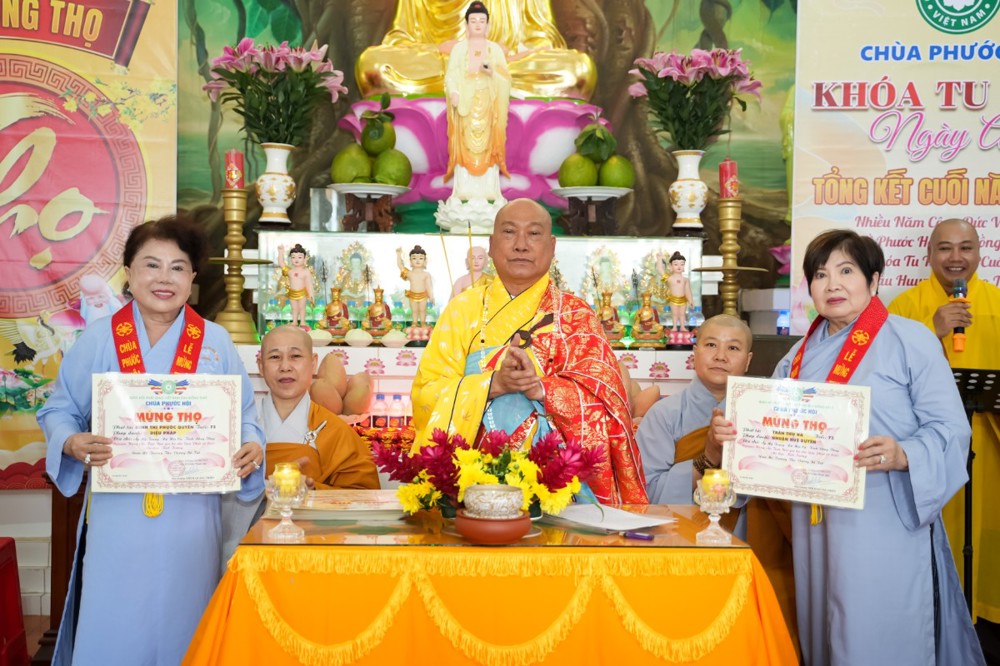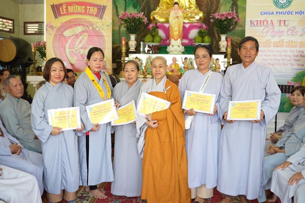 Nhằm ghi nhận tinh thần hộ trì Tam bảo, phụng sự đạo pháp chùa Phước Hội đã trao bằng tuyên dương công đức đến các Phật tử tiêu biểu đã có nhiều đóng góp tích cực trong công tác Phật sự năm 2025.