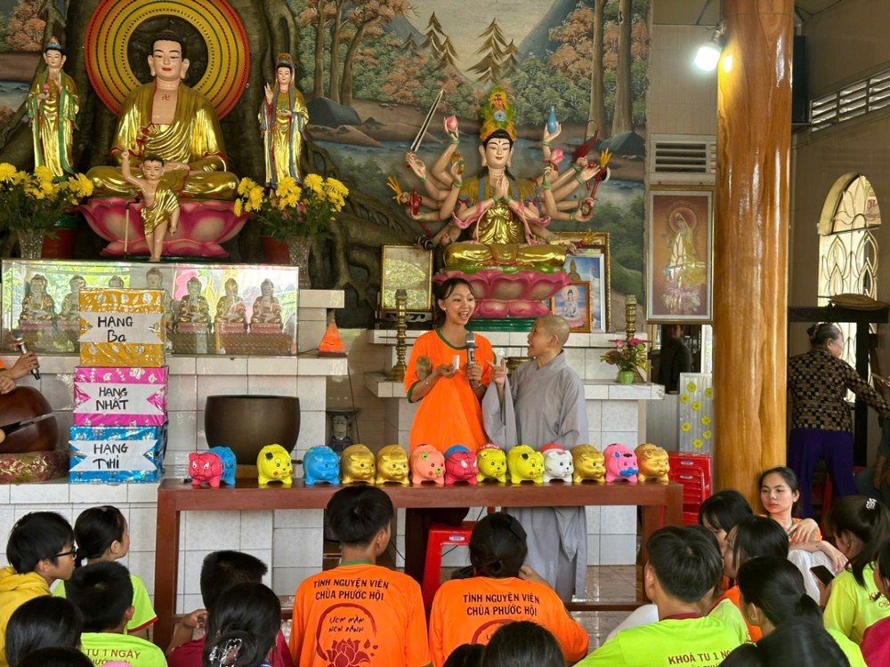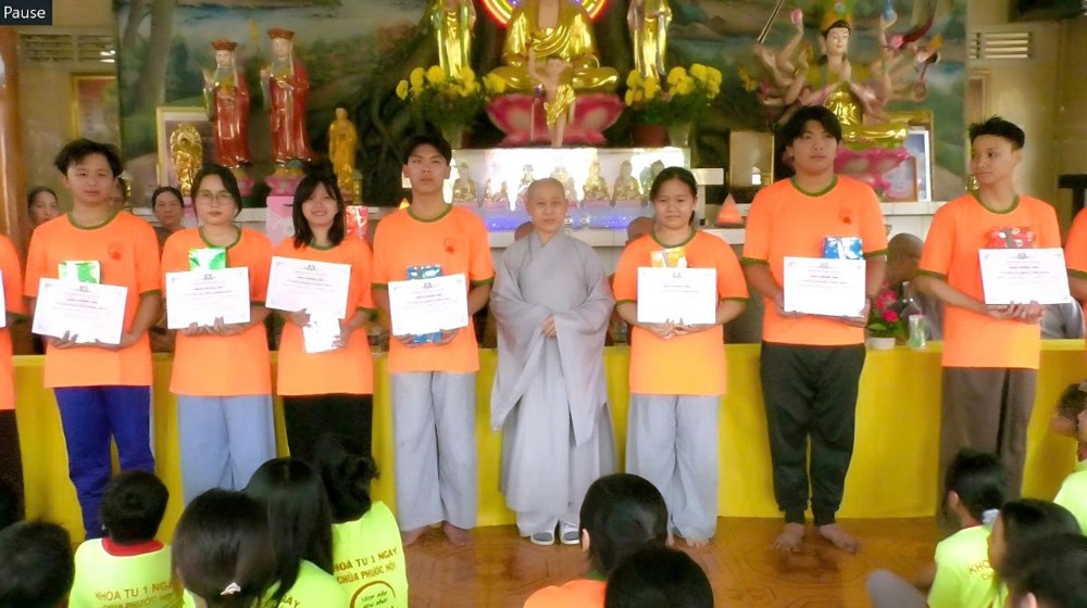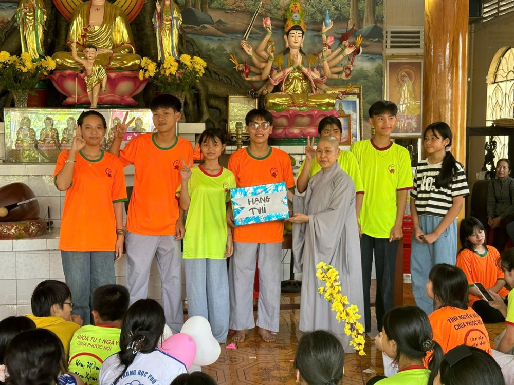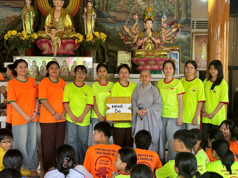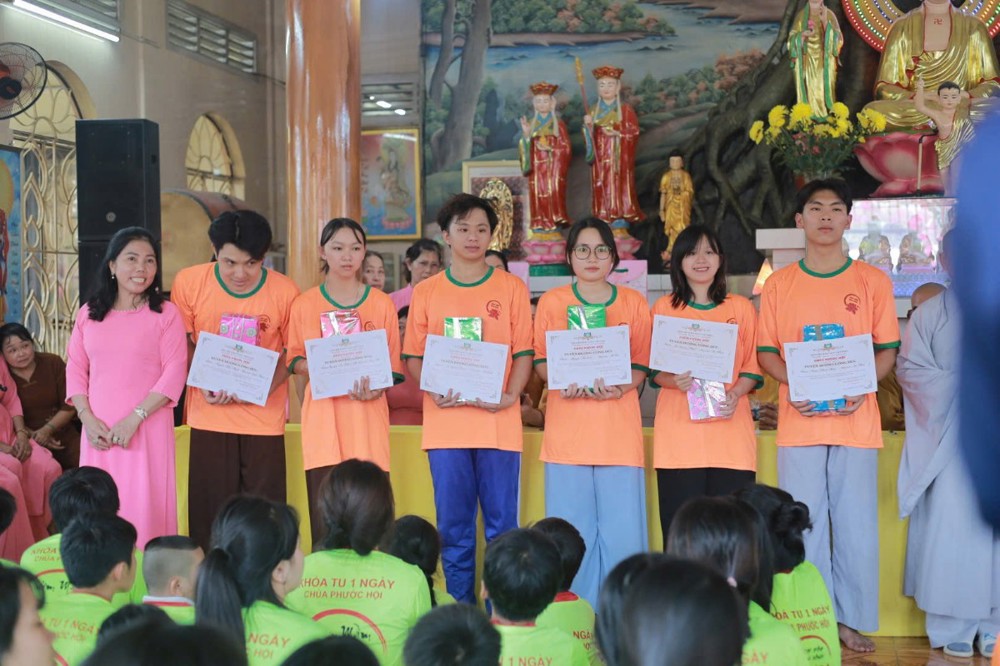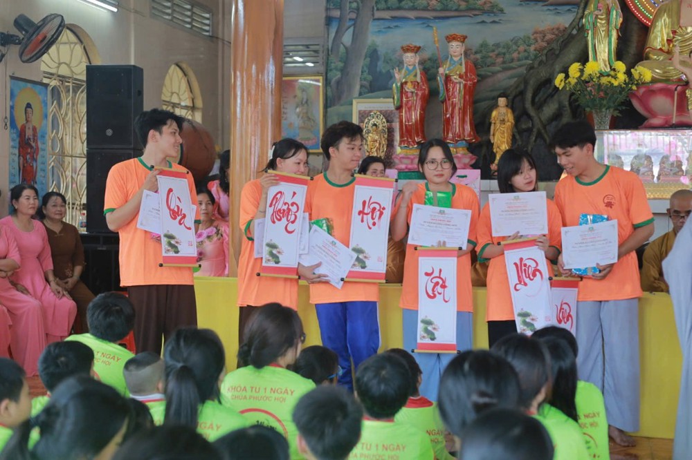 Dịp này, Ban Tổ chức đã trao quà khen thưởng và tri ân đến các tình nguyện viên đã tận tâm đóng góp cho hoạt động khóa tu trong suốt năm qua, đồng thời trao giải thưởng cho các thí sinh đạt thành tích trong cuộc thi văn nghệ, nhằm khích lệ tinh thần tu học và sáng tạo của các em.
