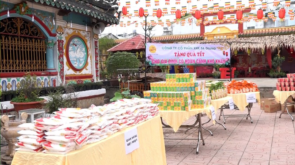 Ngay từ đầu giờ chiều, đông đảo bà con có hoàn cảnh khó khăn đã có mặt tại chùa trong không khí trang trọng và ấm áp. Ban Tổ chức đã chuẩn bị chu đáo các gian hàng với nhiều nhu yếu phẩm thiết thực như gạo, mì, dầu ăn, nước tương, bánh mứt, các phần quà Tết ý nghĩa và 100 nghìn tiền mặt. Đội ngũ tình nguyện viên luôn túc trực, tận tình hướng dẫn, hỗ trợ bà con trong suốt quá trình tham gia phiên chợ. Tổng giá trị cho phiện chợ là 144.000.000đ, Bên cạnh đó Công ty XNH Sa Giang hỗ trợ 100 phần quà gồm 300 nghìn tiền quà và 200 nghìn tiền mặt.