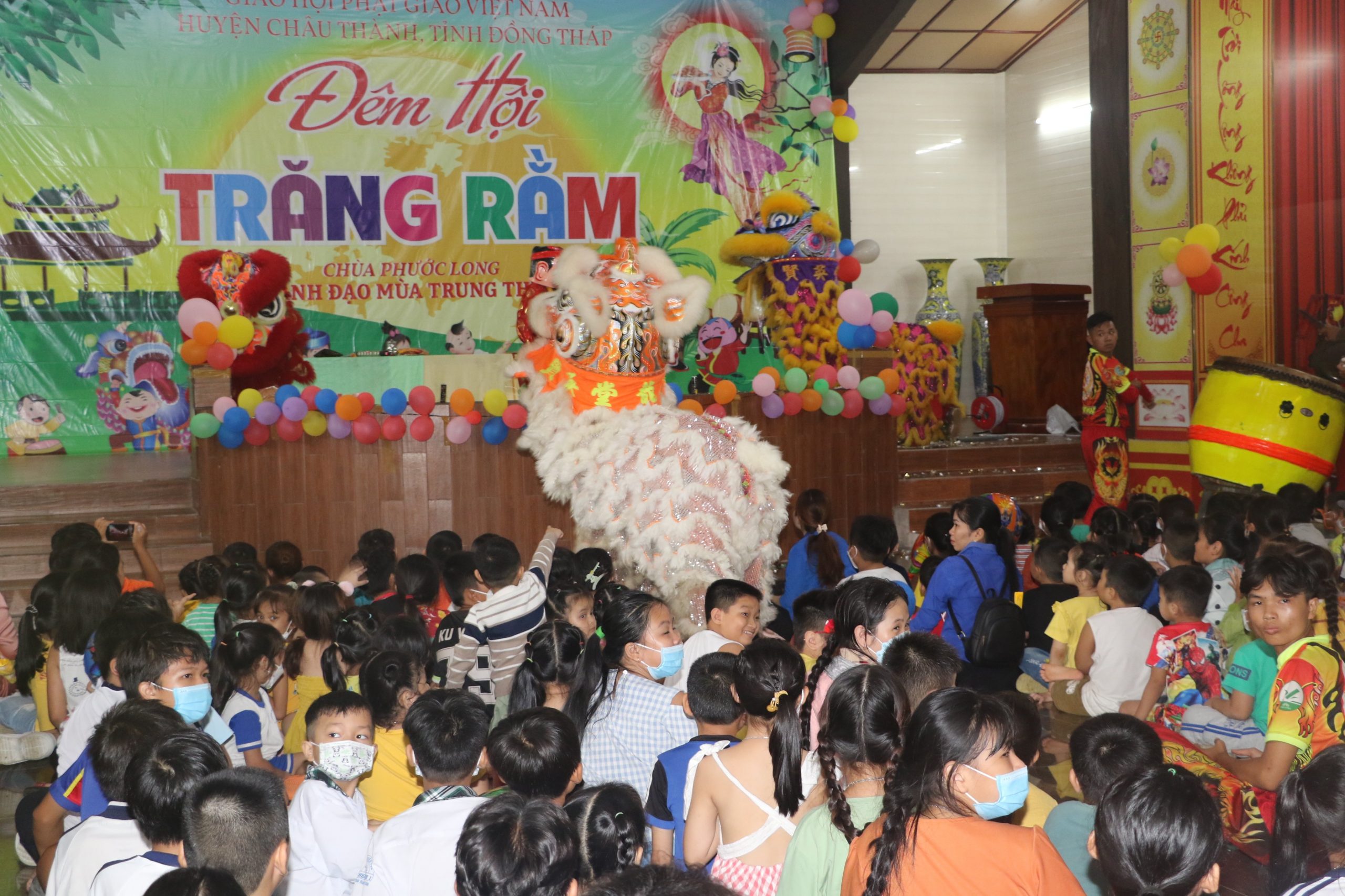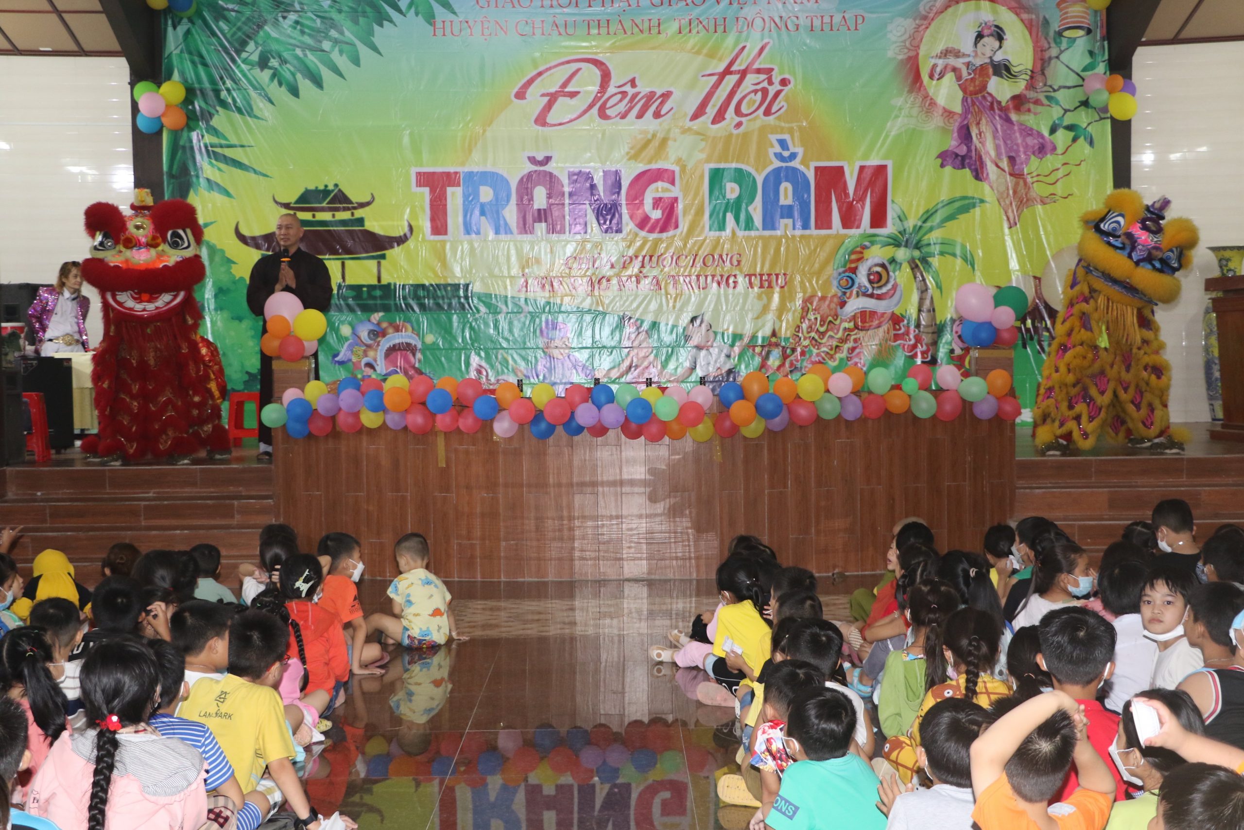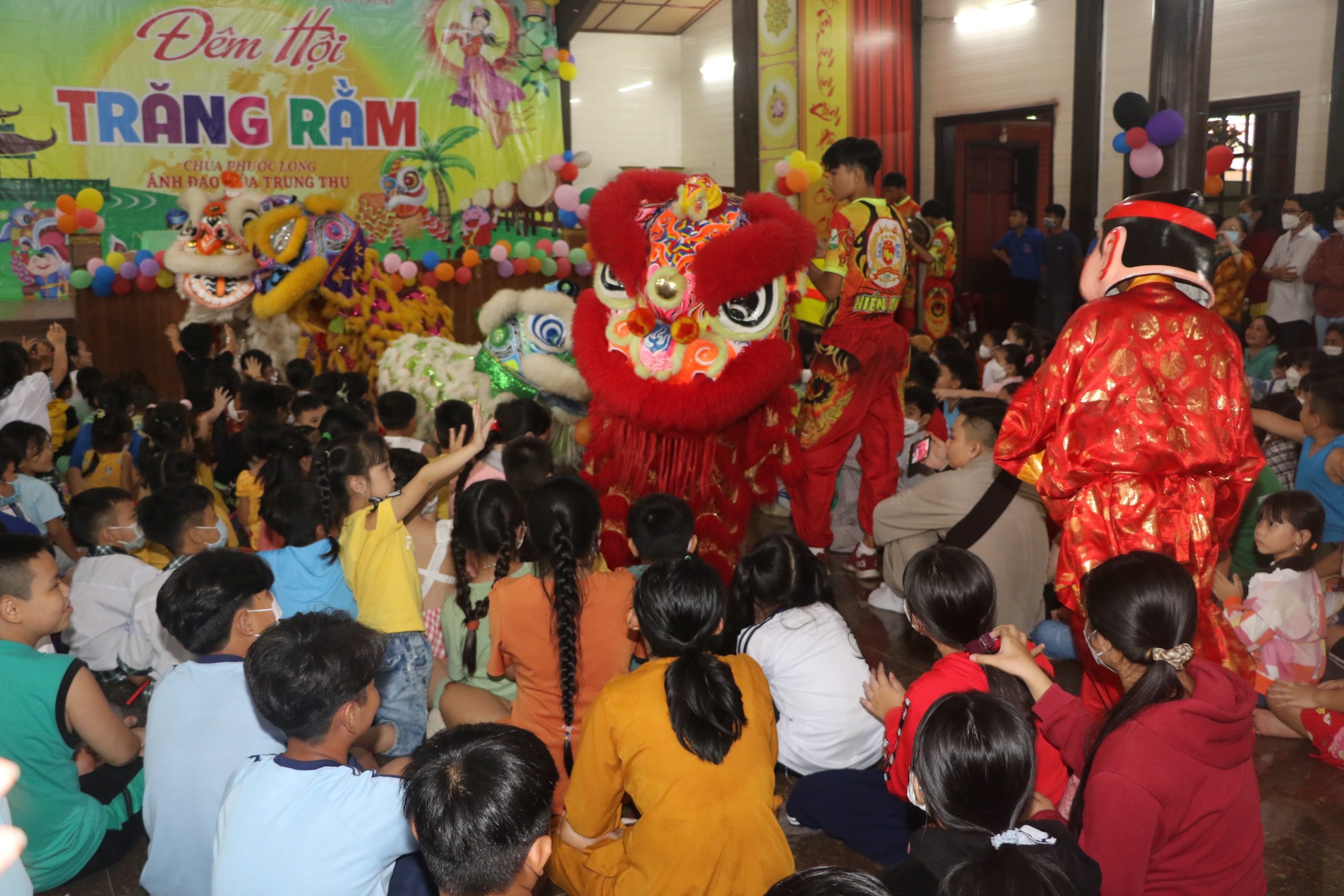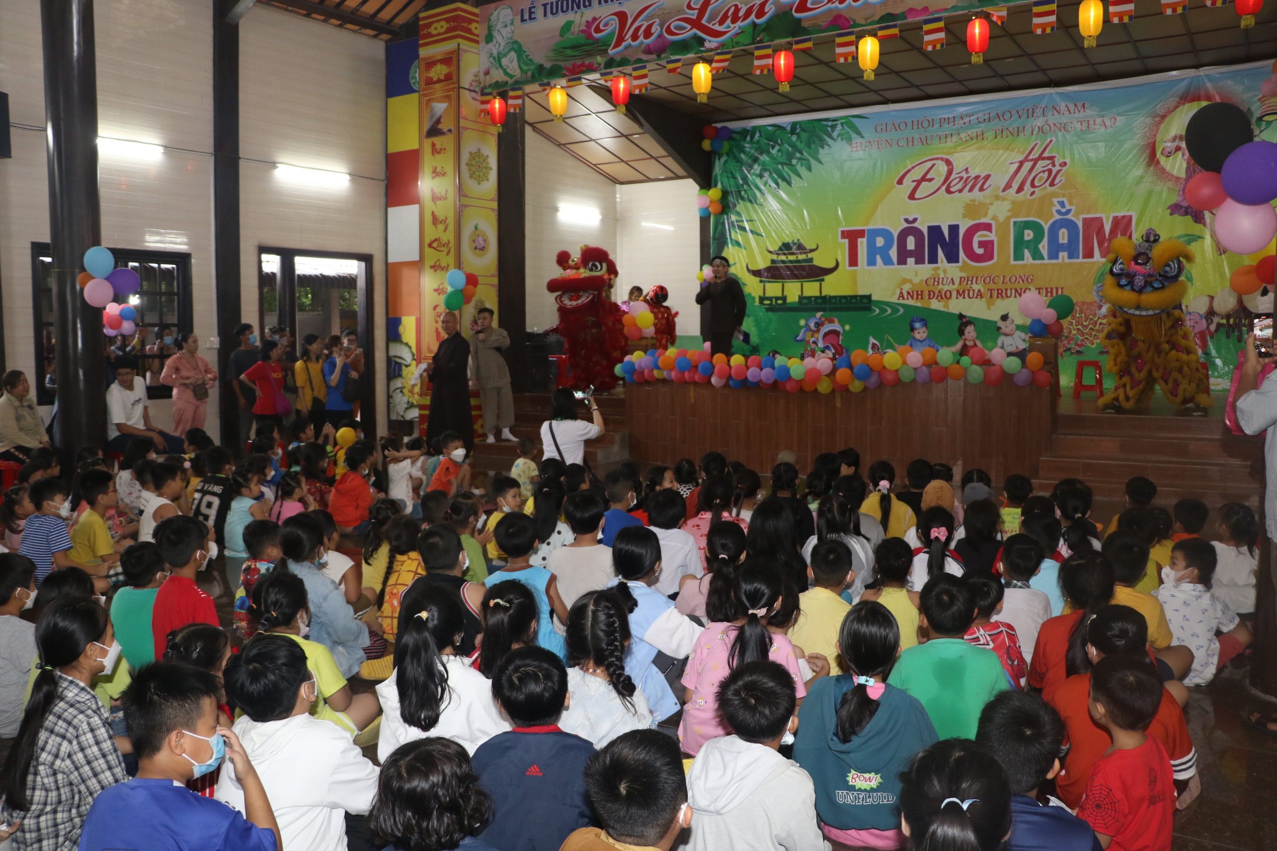 Chương trình “Đêm hội Trăng Rằm” tại chùa Phước Long diễn ra với nhiều hoạt động hấp dẫn và ý nghĩa, các em được xem tiết mục múa lân xương rồng, ảo thuật và kể truyện về sự tích đêm trung thu dưới sự điều hành của chị Hằng và chú Cuội. Cuối cùng là chương trình phá cỗ trung thu.