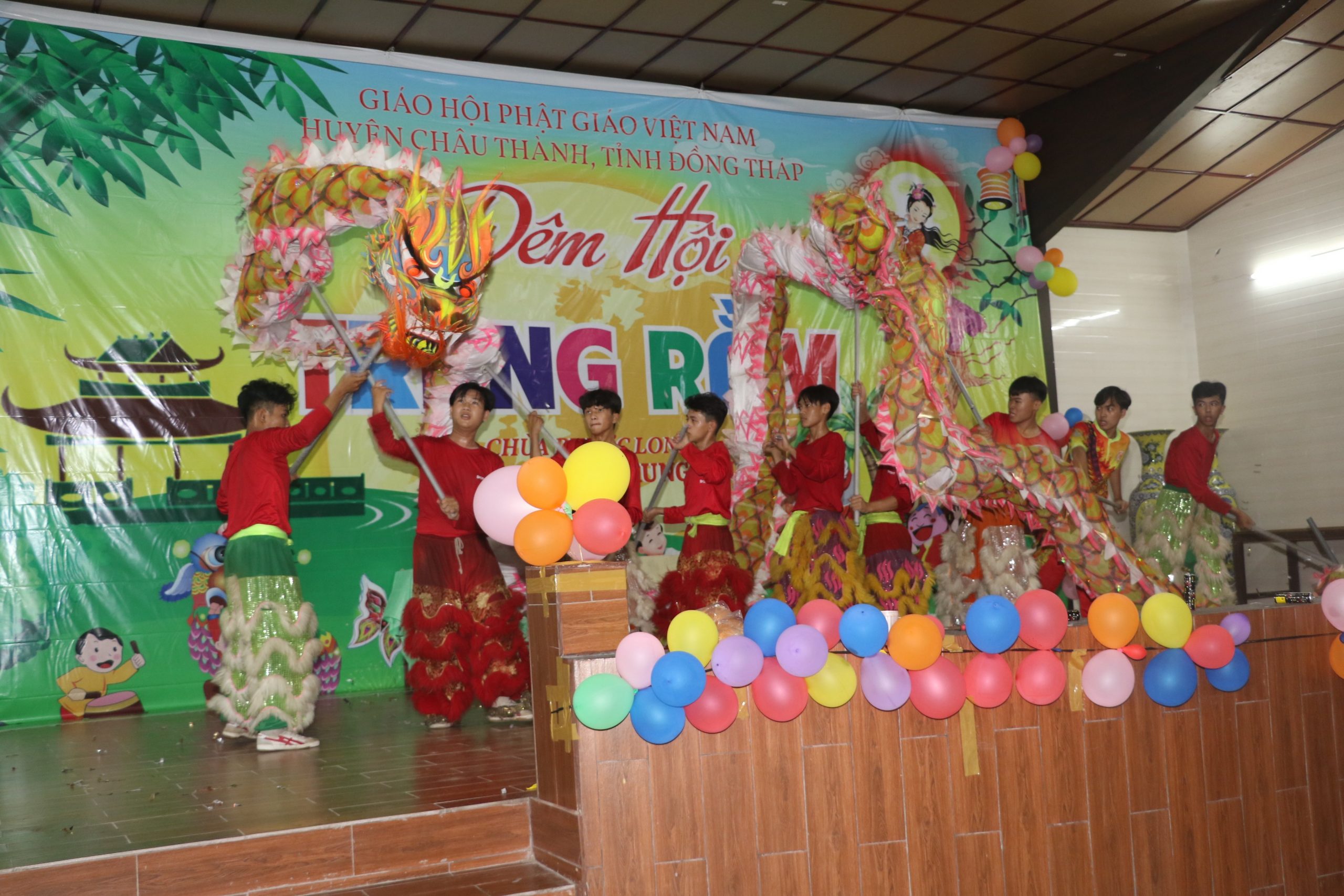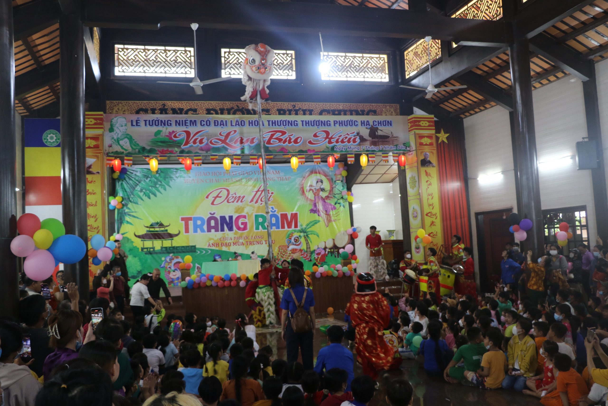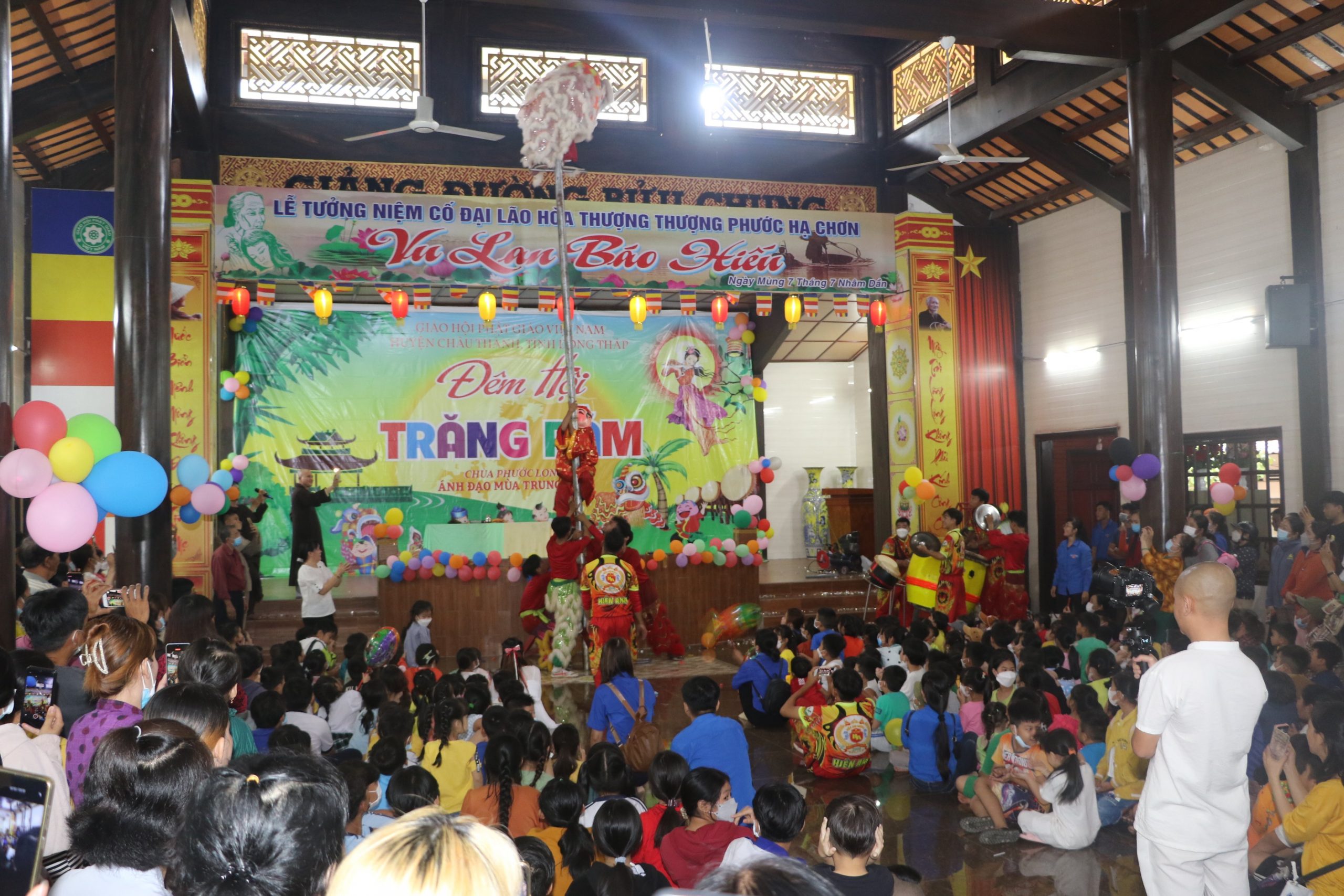 Chương trình “Đêm hội Trăng Rằm” tại chùa Phước Long diễn ra với nhiều hoạt động hấp dẫn và ý nghĩa, các em được xem tiết mục múa lân xương rồng, ảo thuật và kể truyện về sự tích đêm trung thu dưới sự điều hành của chị Hằng và chú Cuội. Cuối cùng là chương trình phá cỗ trung thu.