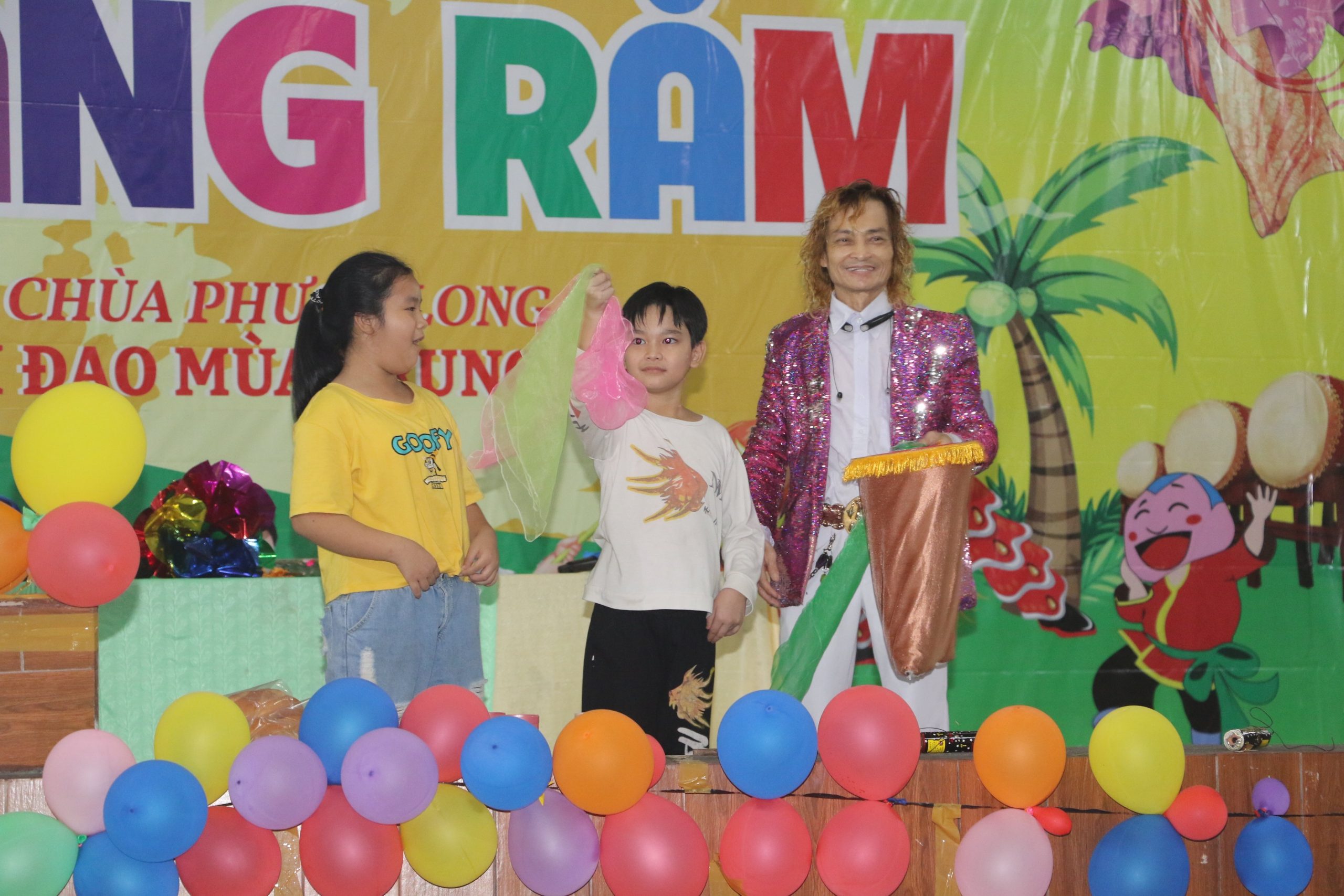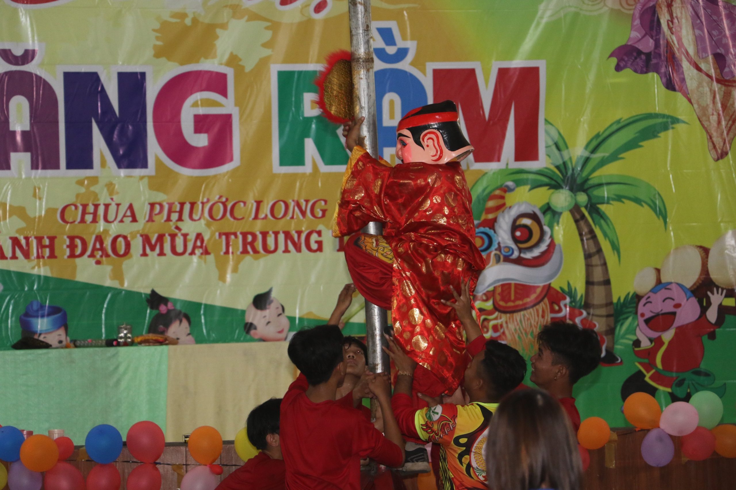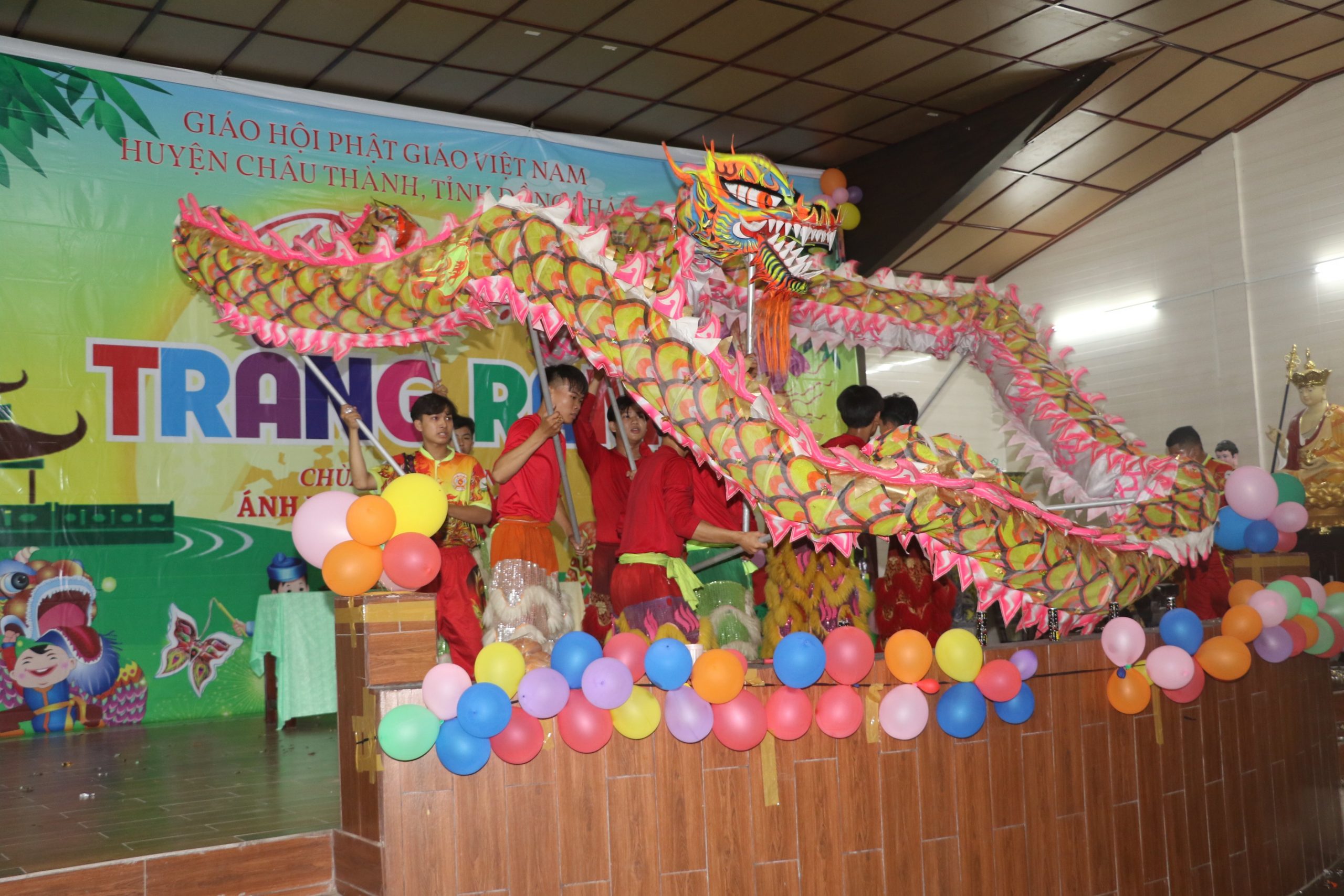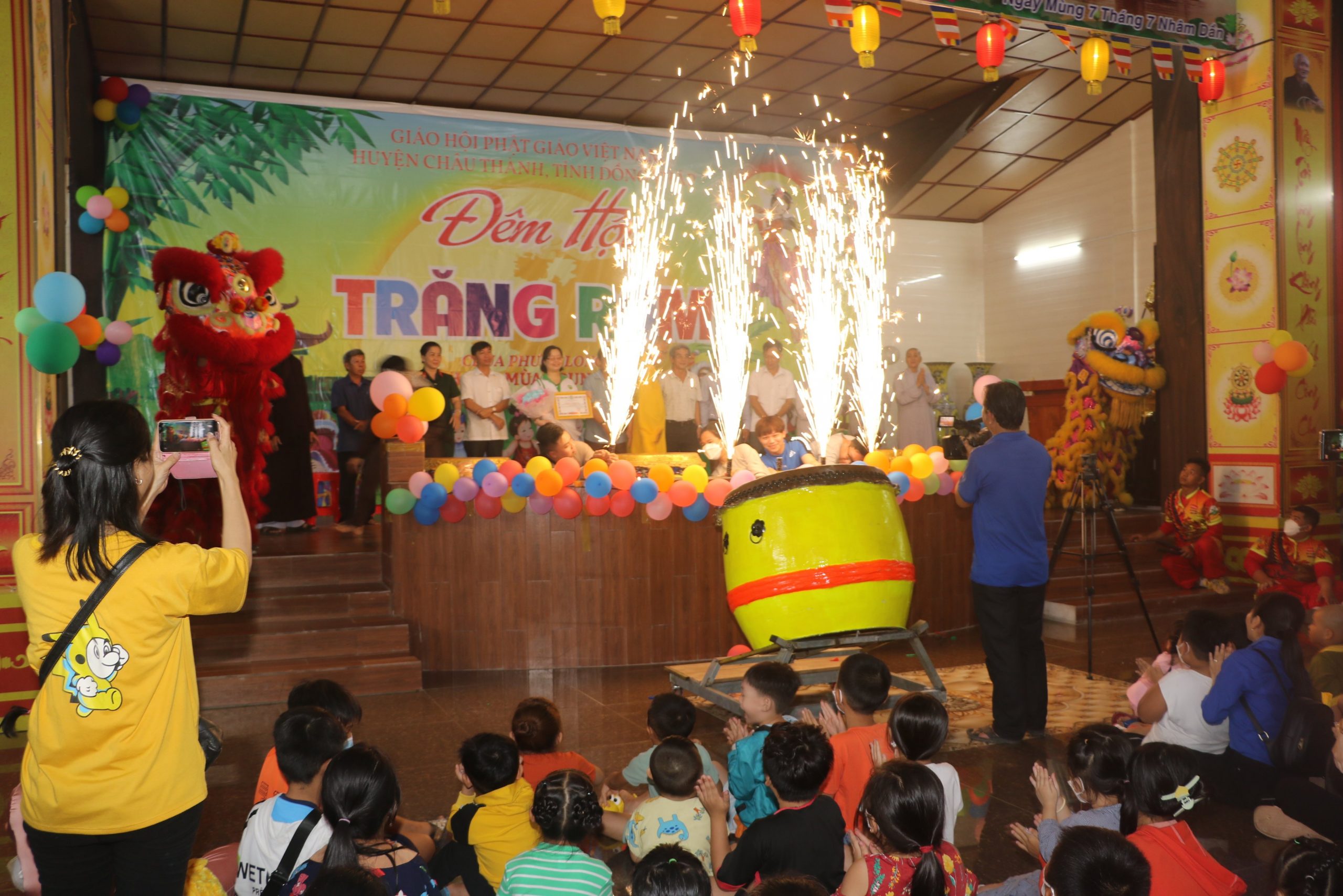 Chương trình “Đêm hội Trăng Rằm” tại chùa Phước Long diễn ra với nhiều hoạt động hấp dẫn và ý nghĩa, các em được xem tiết mục múa lân xương rồng, ảo thuật và kể truyện về sự tích đêm trung thu dưới sự điều hành của chị Hằng và chú Cuội. Cuối cùng là chương trình phá cỗ trung thu.