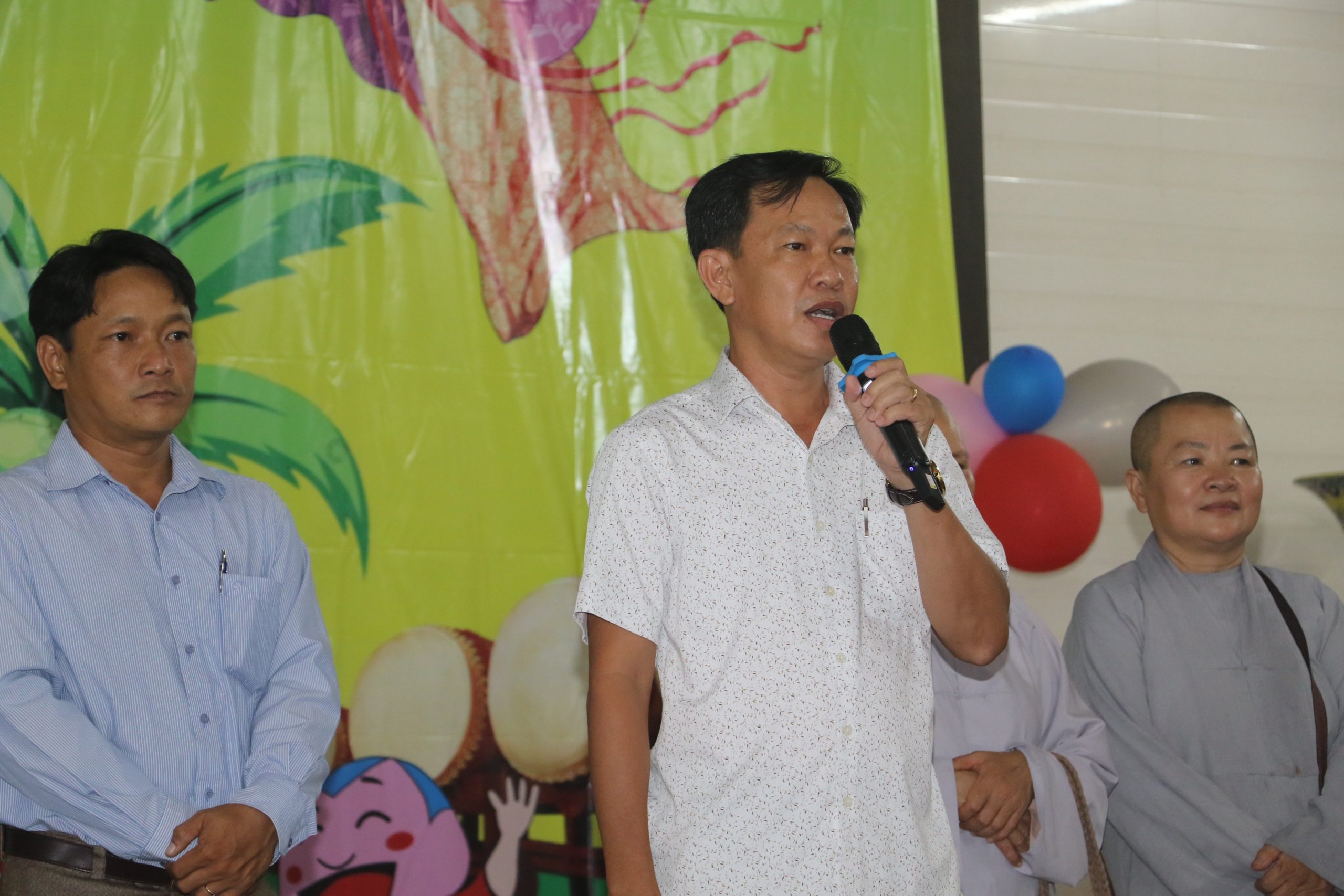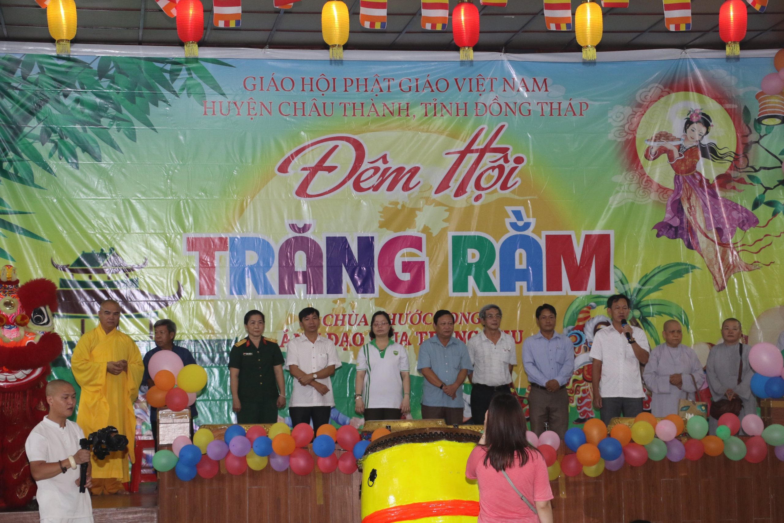Về phía lãnh đạo chính quyền địa phương có: Ông Nguyễn Tấn Lực - Tỉnh uỷ viên, Bí thư Huyện uỷ Châu Thành; cùng đại diện các ban ngành, đoàn thể tại địa phương, quý Phật tử, phụ huynh cùng 800 các em thiếu niên, nhi đồng đồng tham dự.