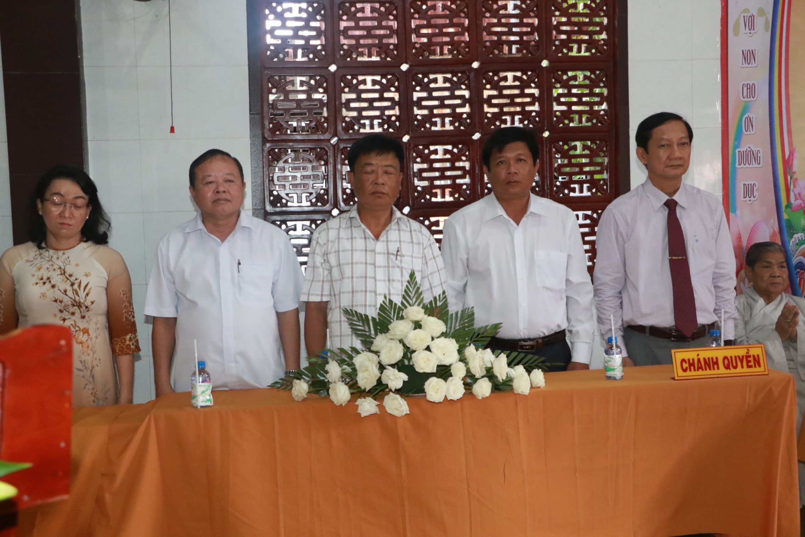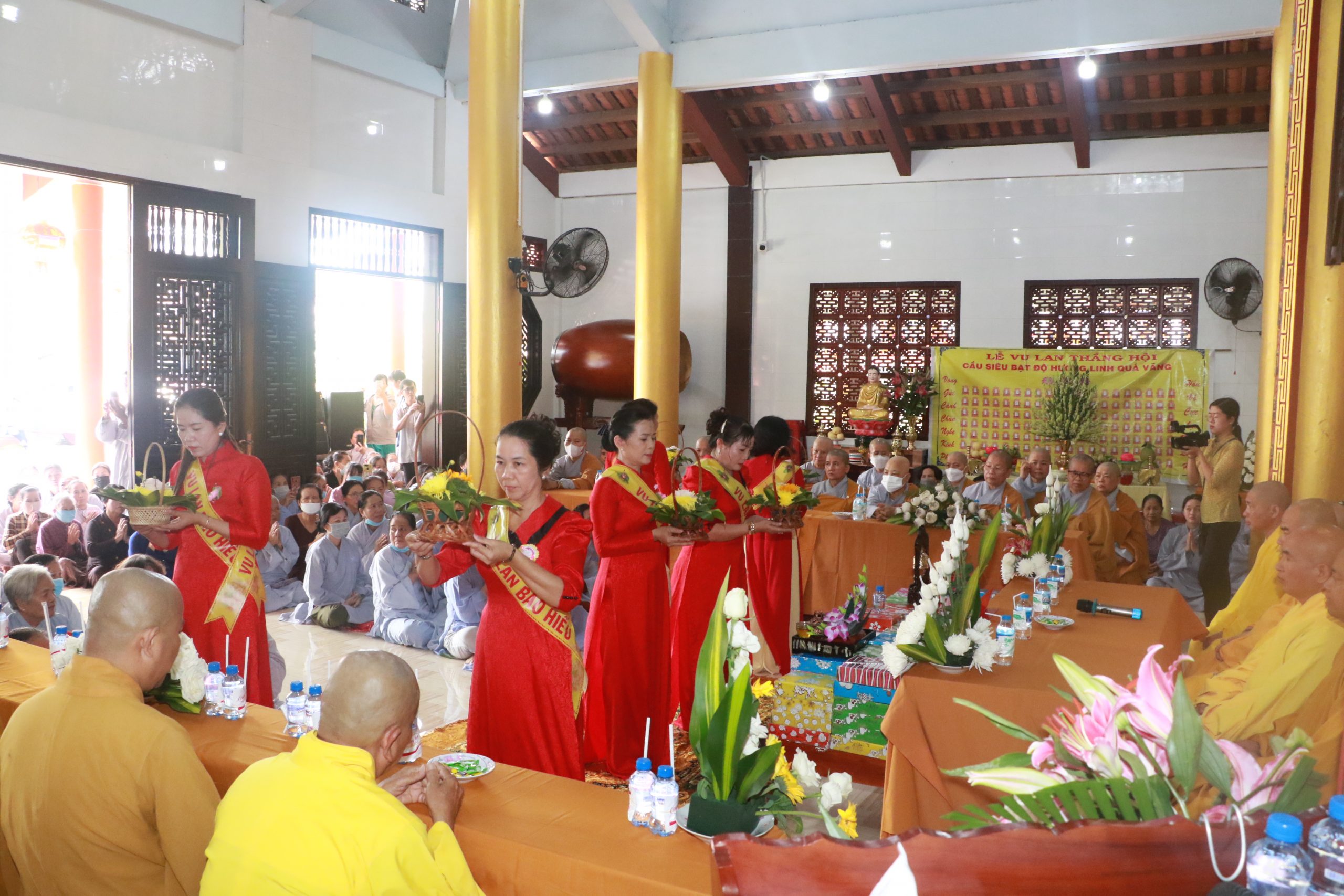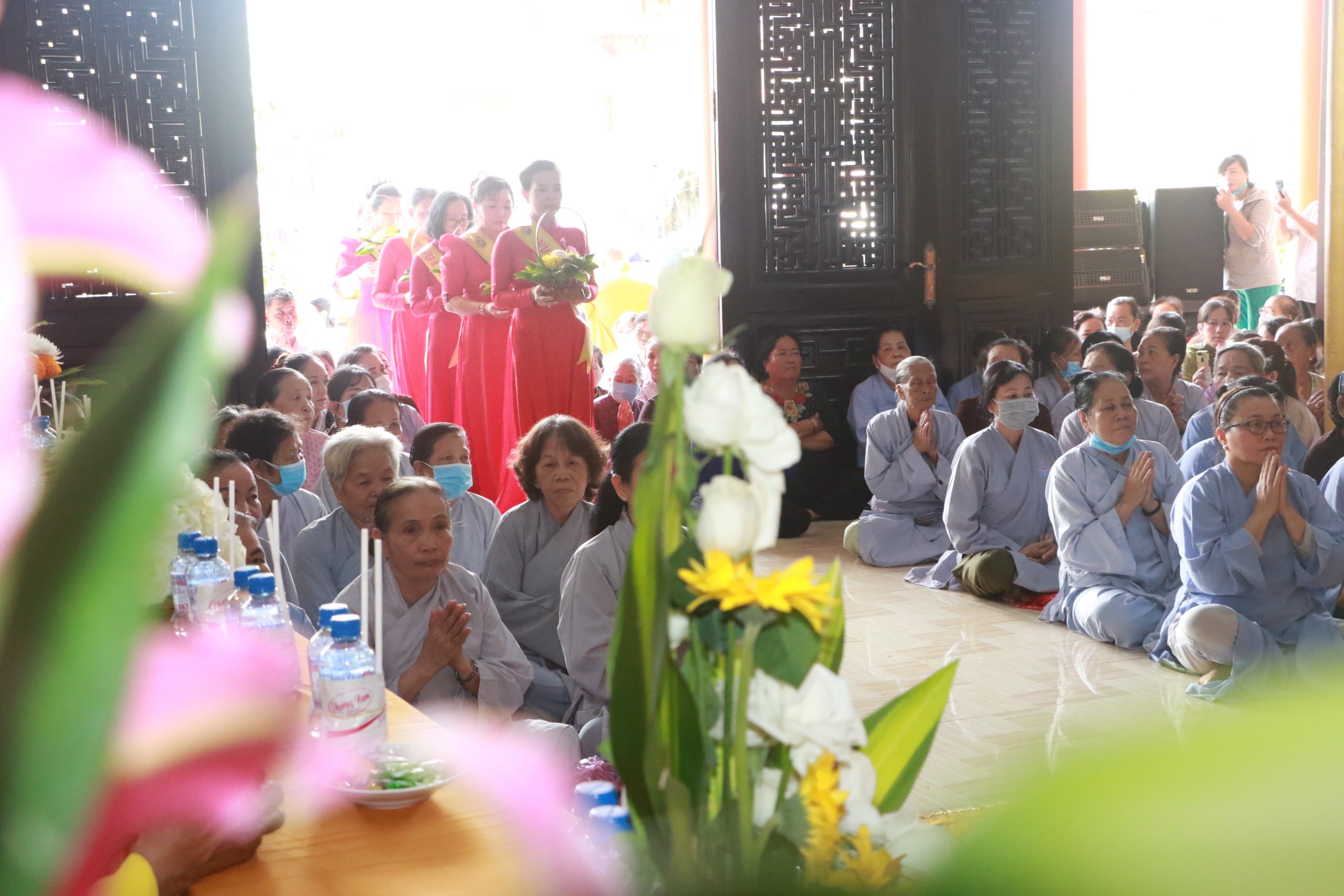 Tại buổi lễ, chư Tôn đức Tăng Ni, đại diện chính quyền các cấp và quý Phật tử đã thực hiện nghi thức niệm Phật cầu gia hộ, phút nhập từ bi quán, dâng hoa cúng dường và nghi thức cài bông hồng.