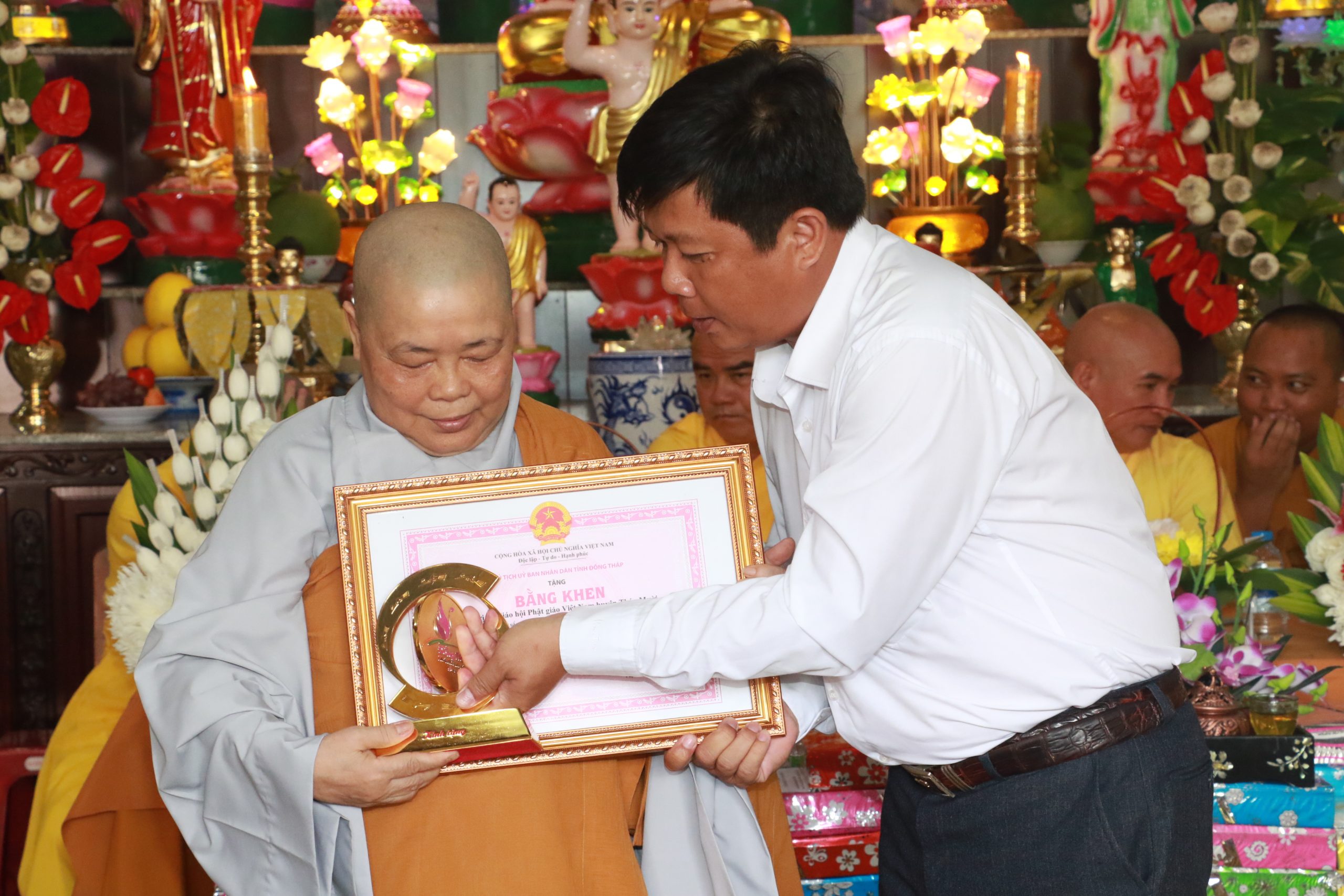 Nhân dịp mùa Vu lan Báo hiếu để nhớ về công ơn hai đấng sanh thành và ghi nhận những đóng góp tích cực, sự sẻ chia yêu thương cho người dân gặp khó khăn trong cuộc sống, Ni sư TN. Như Châu đã làm tốt công tác an sinh xã hội trong thời gian qua. Thay mặt Uỷ ban Nhân dân tỉnh Đồng Tháp, ông Võ Ngọc Thành - Phó Chủ tịch UBMTTQVN tỉnh trao tặng giấy khen đến Ni sư Thích nữ Như Châu.