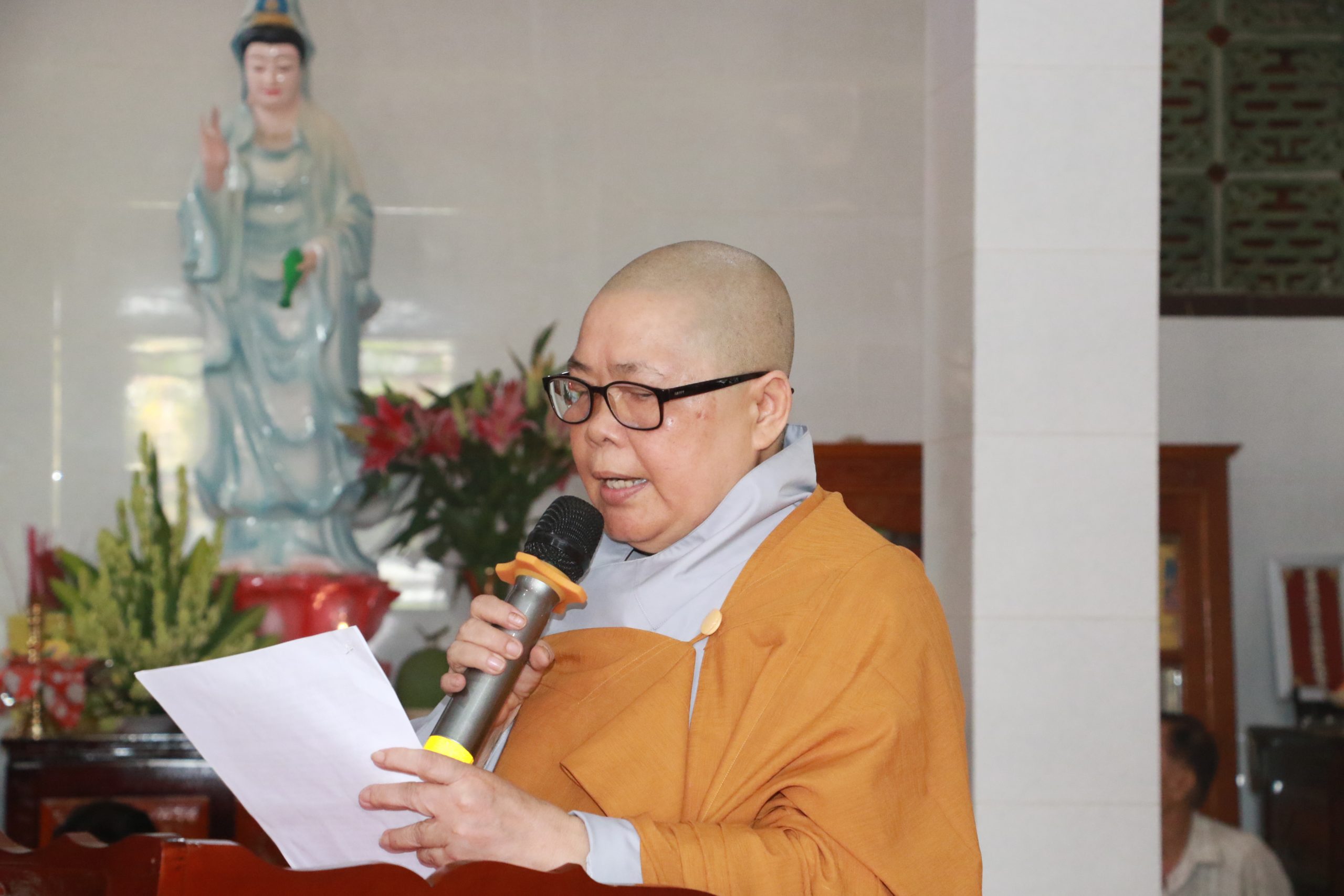 Thay mặt Ban Chứng minh, Thượng toạ Thích Tĩnh Triệt có lời đạo từ tán dương những hoạt động mang ý nghĩa thiết thực trong mùa Vu lan, đây là một hoạt động mang đậm nét đẹp văn hóa truyền thống của dân tộc, là dịp để giáo dục đạo hiếu cho các thế hệ hôm nay, thể hiện sự tri ân lòng biết ơn của các thế hệ con cháu đối với các bậc sinh thành. khuyến tấn hàng Phật tử thực tập hạnh hiếu, đặc biệt là với những ai may mắn còn cha mẹ trong đời đó là cách báo ân tốt nhất. Từ đó, để ra sức xây dựng quê hương đất nước ngày càng phát triển.