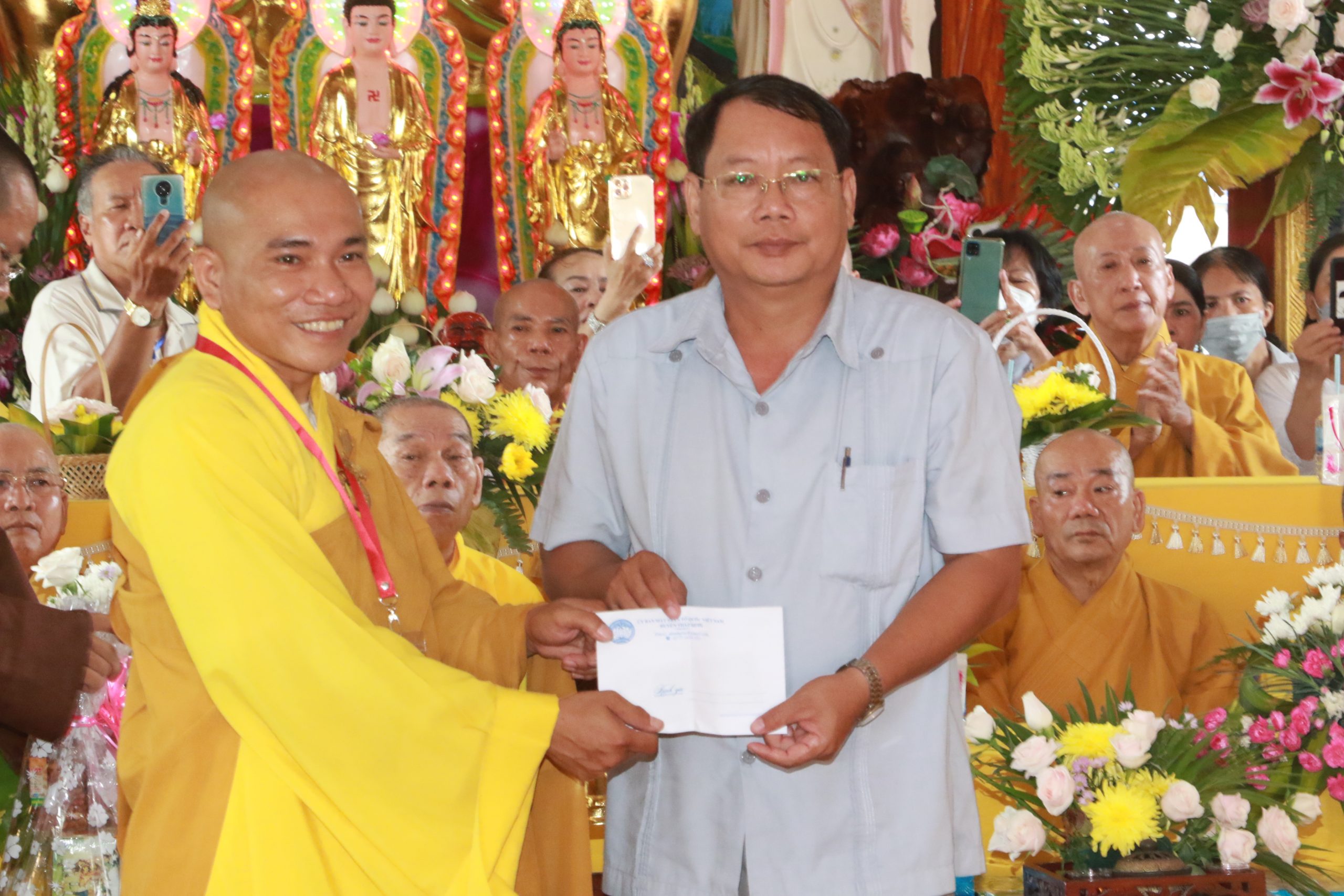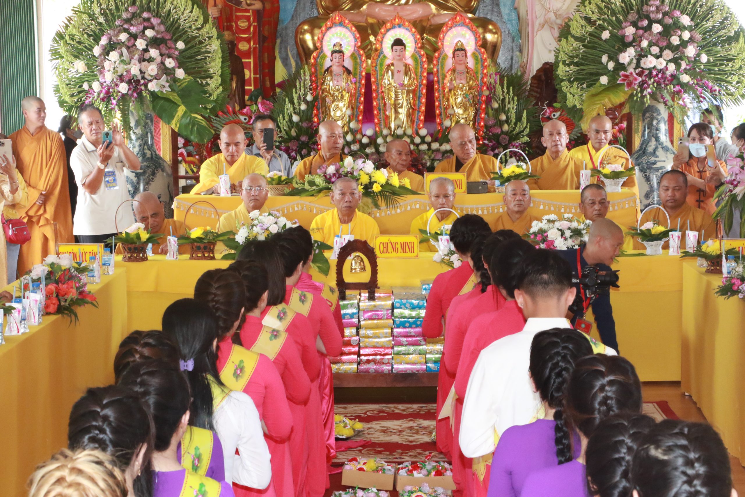 Về chứng minh tham dự buổi lễ có: Hoà thượng Thích Thiện Phương - Chứng minh Ban Trị sự GHPGVN tỉnh Đồng Tháp; TT. Thích Minh Sơn - Chánh Thư ký BTS GHPGVN tỉnh Đồng Tháp, Trưởng ban Trị sự Phật giáo huyện Tháp Mười; Đại đức Thích Trí Khả - Phó Thư ký BTS Phật giáo tỉnh Đồng Tháp – điều phối chương trình; Ni sư TN. Như Châu - Phó ban Thường trực BTS GHPGVN huyện Tháp Mười; cùng chư Tôn đức Thượng toạ chứng minh buổi lễ dâng pháp y Ca-sa.