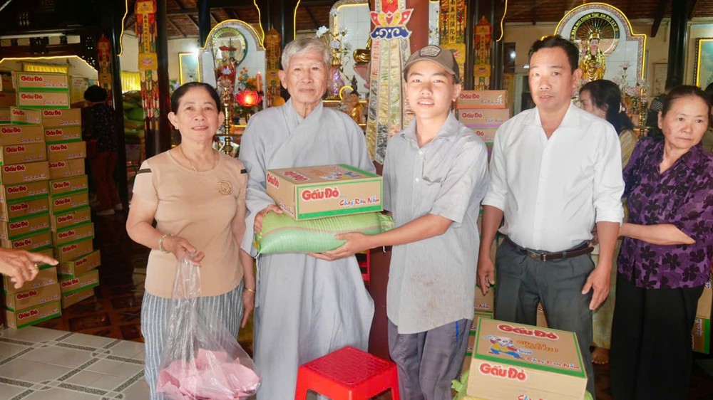 Được biết, đợt trao quà lần này do gia đình Cư sĩ Giác Sang cùng con cháu và quý mạnh thường quân phát tâm đóng góp tịnh tài, tịnh vật, tạo nên 595 phần quà, mỗi phần gồm 10 kg gạo và 01 thùng mì, với tổng trị giá 127.330.000 đồng (một trăm hai mươi bảy triệu ba trăm ba mươi nghìn đồng).