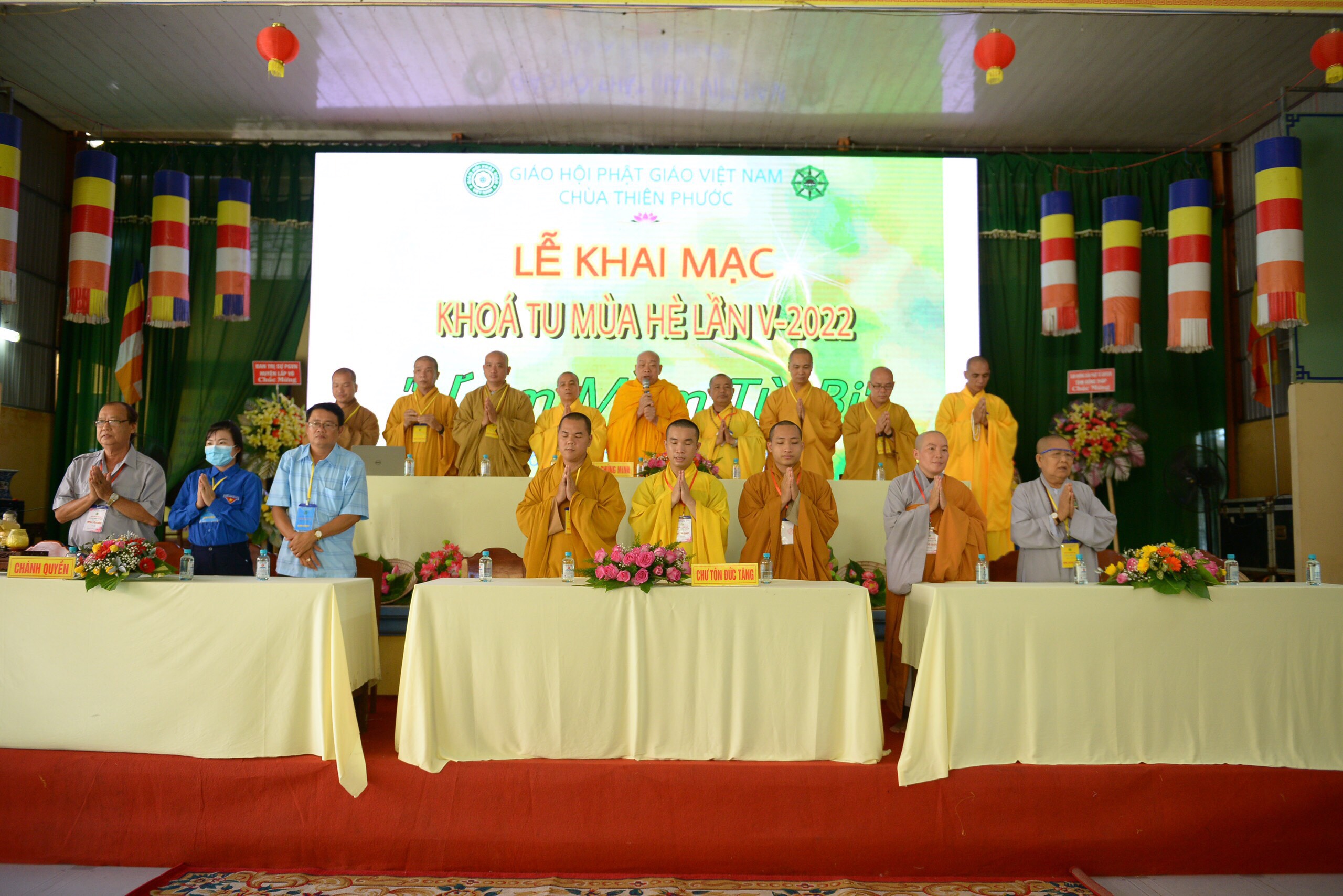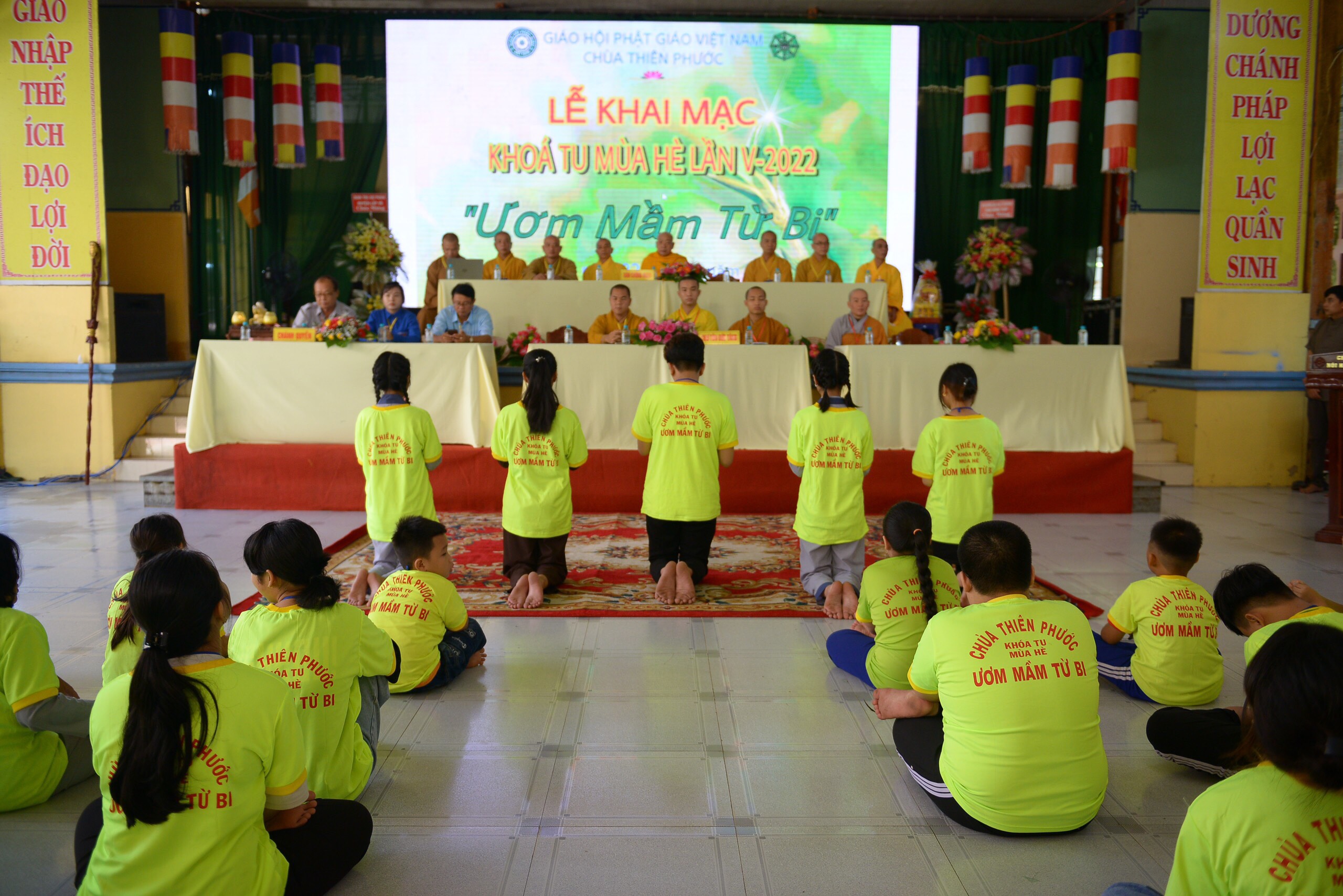 Tham dự chứng minh buổi khai mạc, Đại đức Thích Minh Phước, Trưởng ban HDPT GHPGVN tỉnh huấn từ đến các 110 khoá sinh và 30 bạn tình nguyện viên; việc giáo dục thế hệ trẻ là việc chung của xã hội, vì các bạn nhỏ là chủ nhân tương lai của đất nước. Không chỉ hoạt động khóa tu mùa hè ở chùa Thiên Phước mà còn nhiều khóa tu trên khắp cả nước là việc chung tay của nhà chùa đối với xã hội, đạo pháp đồng hành cùng dân tộc, chăm sóc các em trong những ngày hè.