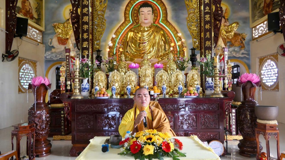 Đến 8 giờ 30, Ban Tổ chức cung thỉnh Đại đức Thích Minh Lộc – Chánh Thư ký Ban Hoằng pháp Phật giáo tỉnh Đồng Tháp, quang lâm thuyết giảng với chủ đề: “Bốn Đức hạnh của người Phật tử tại gia”.