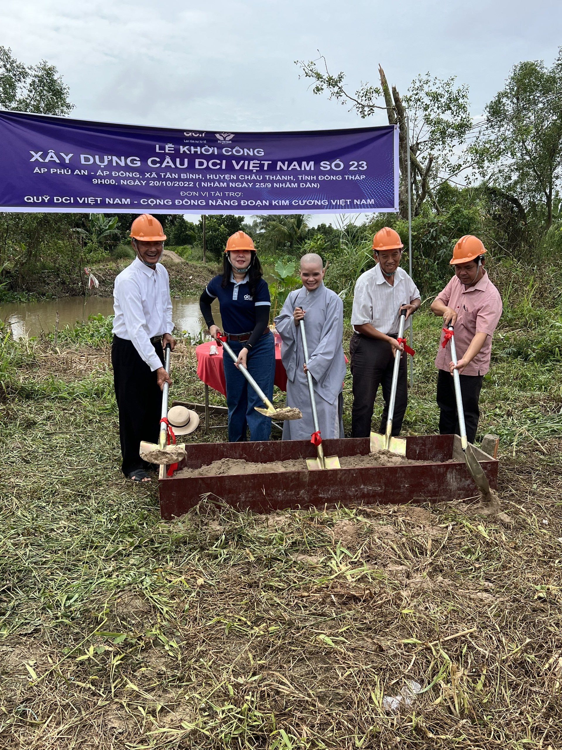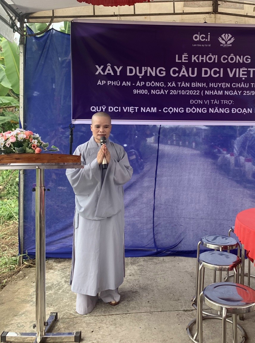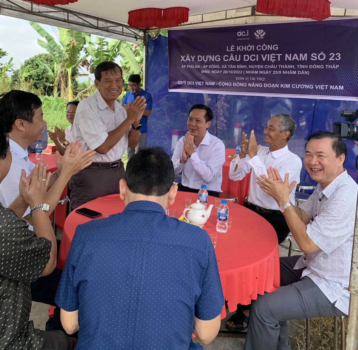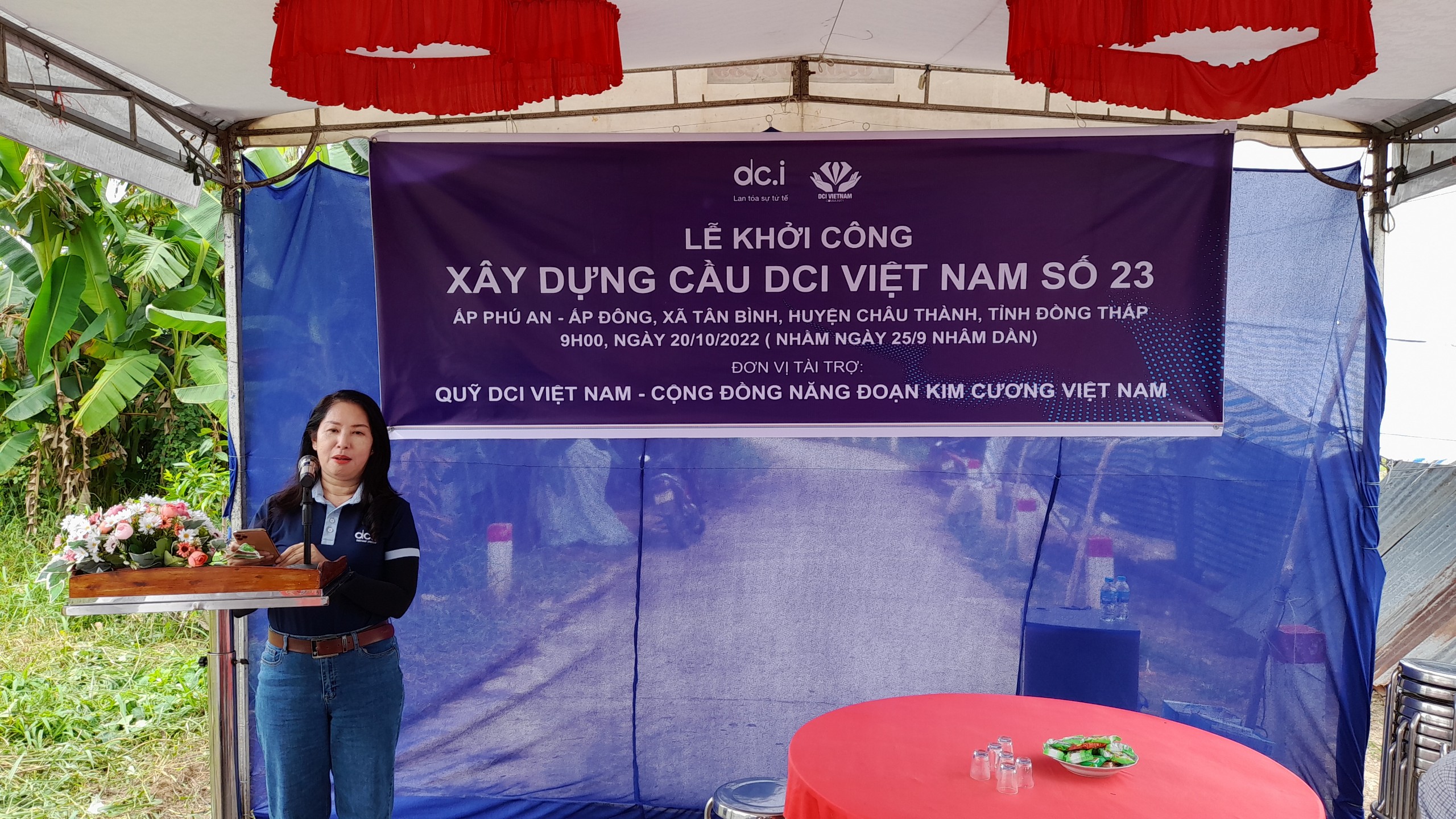 Có được kết quả tổ chức buổi lễ khởi công hôm nay là có sự quan tâm của các cấp, các ngành, đơn vị tài trợ quỹ DCI Việt Nam – Cộng đồng Năng đoạn Kim cương Việt Nam và bà con nhân dân trong và ngoài xã. Cuối lời, ông gửi lời cám ơn sự quan tâm của các cấp lãnh đạo, đơn vị tài trợ đã đóng góp phần lớn kinh phí để xây dựng cầu, đồng thời cảm ơn chú Hai Lúa và các anh trong đội thi công cầu đã hướng dẫn kỹ thuật xây dựng cầu và hứa sẽ sớm hoàn thành việc xây cầu theo kế hoạch.