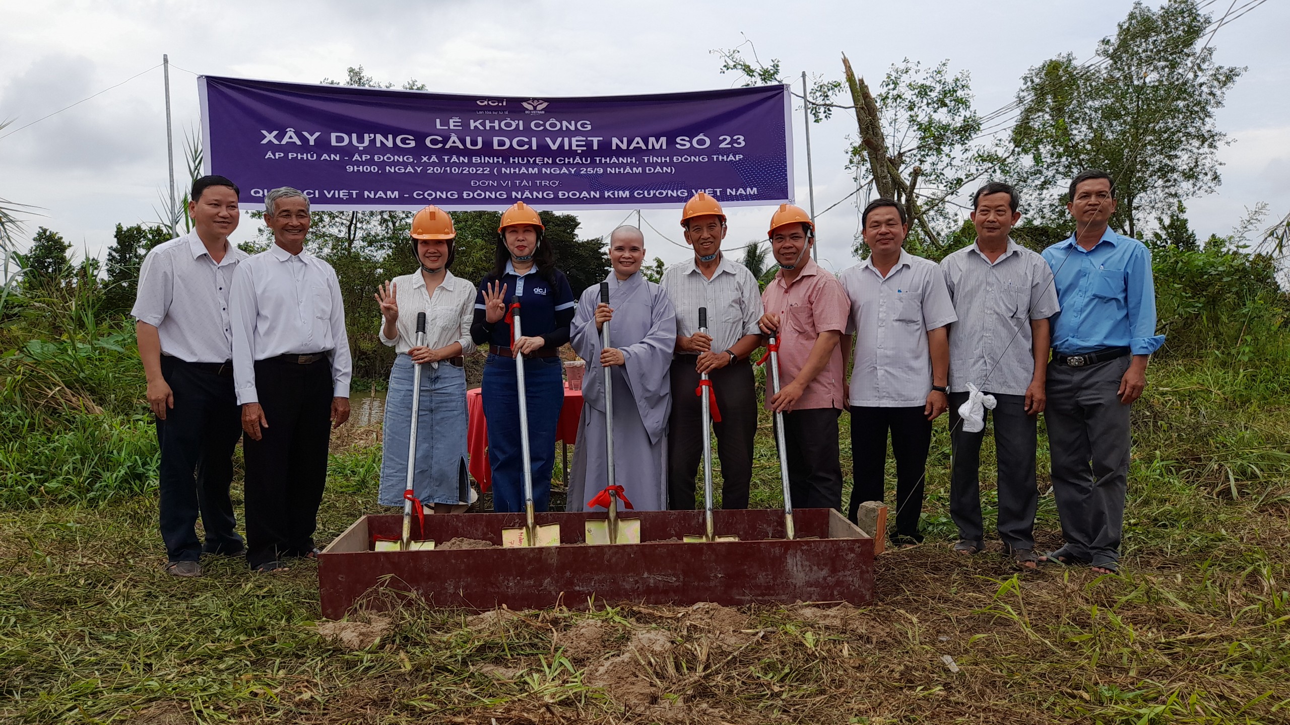 Sau đó, lãnh đạo chính quyền các cấp đã hân hoan tham dự nghi thức động thổ xây dựng Cầu DCI Việt Nam số 23.