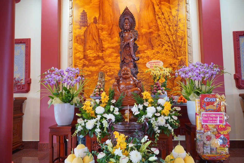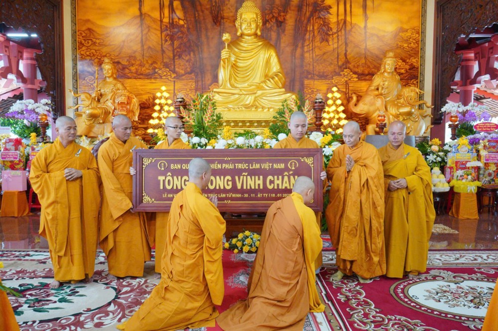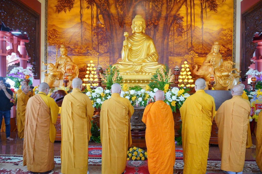 Phần cuối chương trình, chư Tôn đức chứng minh đã cử hành nghi thức tâm linh, sái tịnh và an vị Tôn tượng Phật, Bồ tát và chư vị Tổ sư. Cầu cho đạo tràng ngày thêm hưng thịnh, chánh pháp được truyền lưu phổ quát; Nguyện cho quốc thới dân an, Phật pháp xương minh vạn đại.