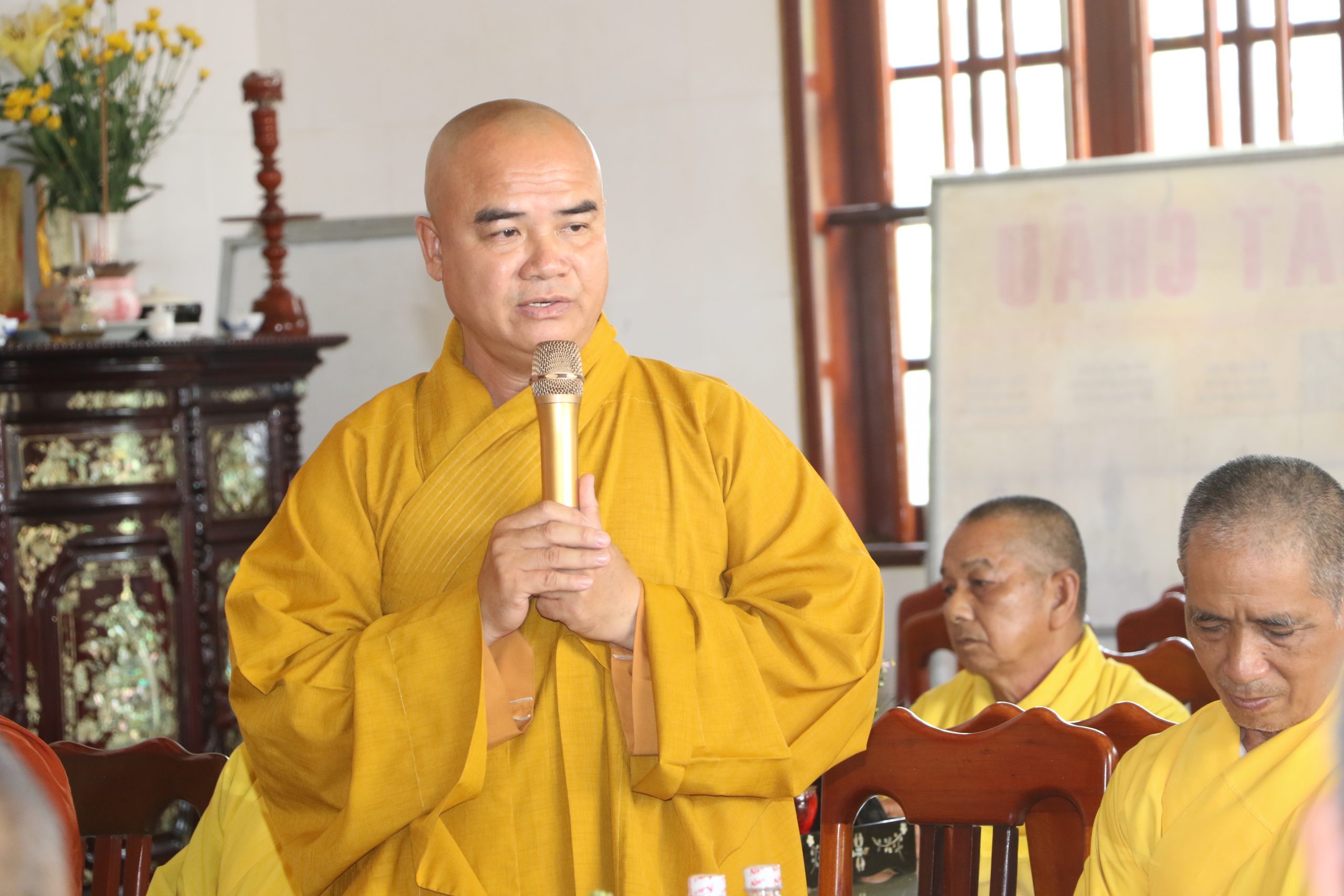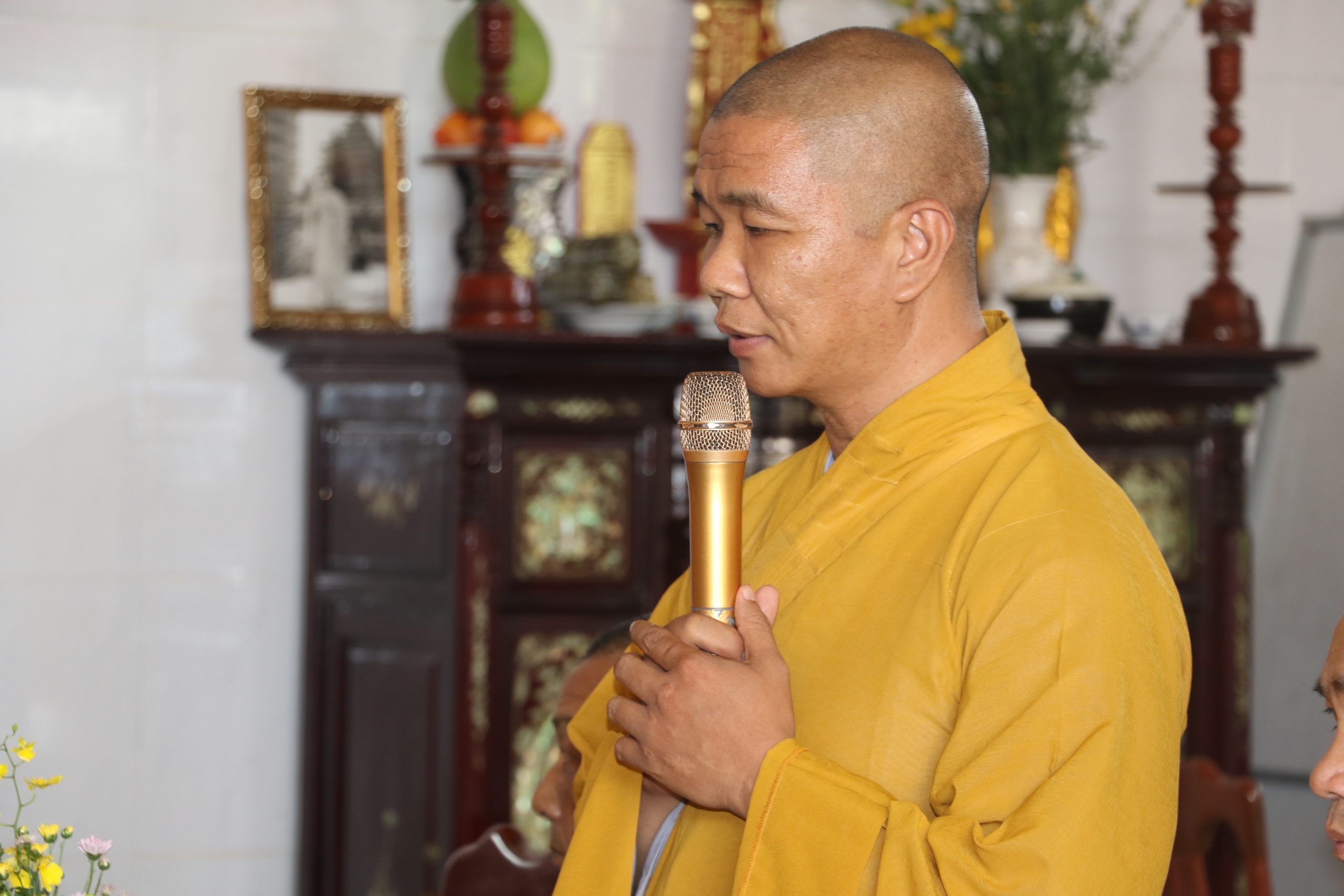 TT. Thích Tĩnh Triệt - Phó ban Thường trực BTS GHPGVN tỉnh bày tỏ niềm hoan hỷ, tán thán Thượng toạ Thích Thiện HữuSau đó, chư Tôn Hoà thượng, chư Thượng toạ, Đại đức Tăng Ni đã đối trước Tổ đường niêm hương tưởng niệm ân đức của Hoà thượng thượng Diệu hạ Nghĩa – Vị tổ khai sơn chùa Phước Đức được cao đăng Phật quốc.