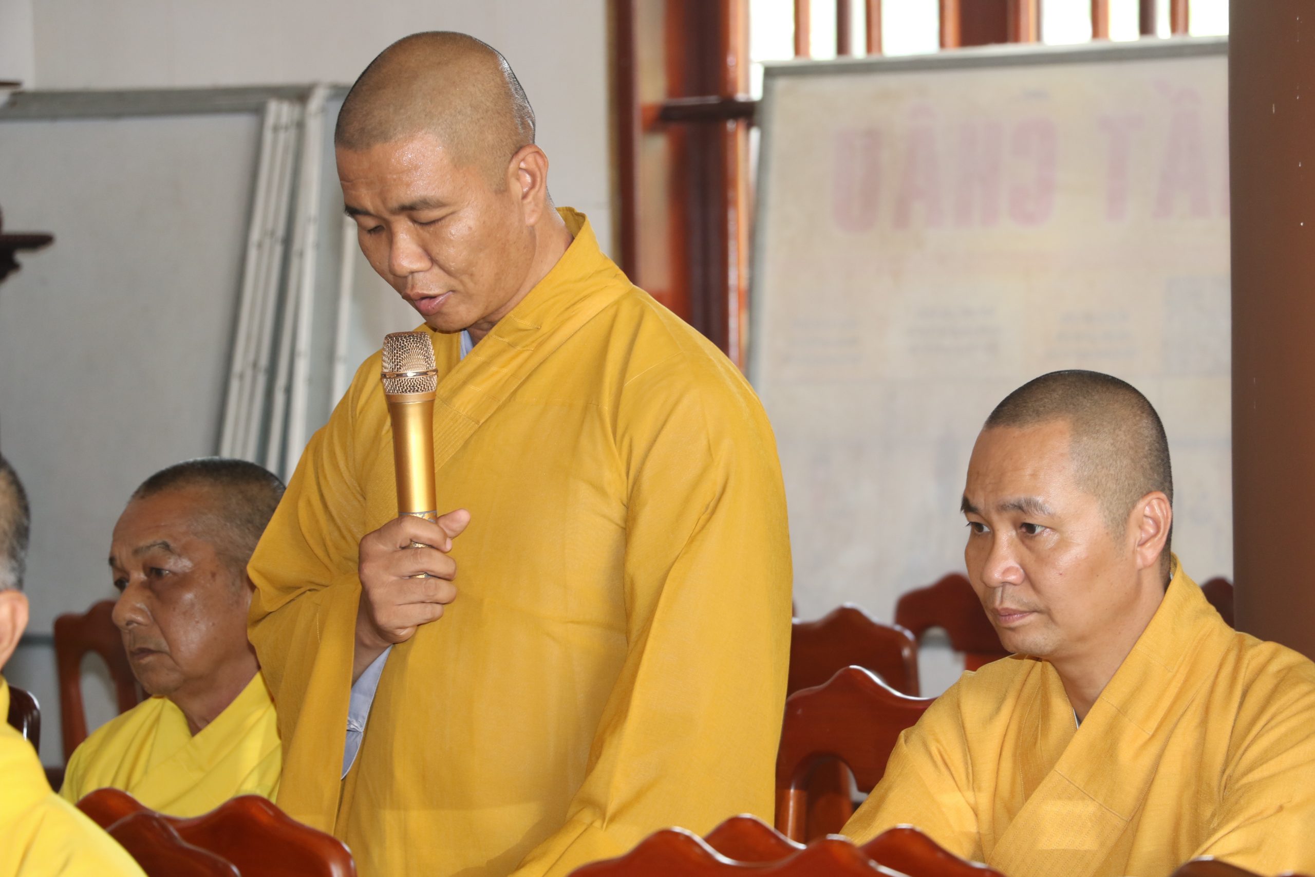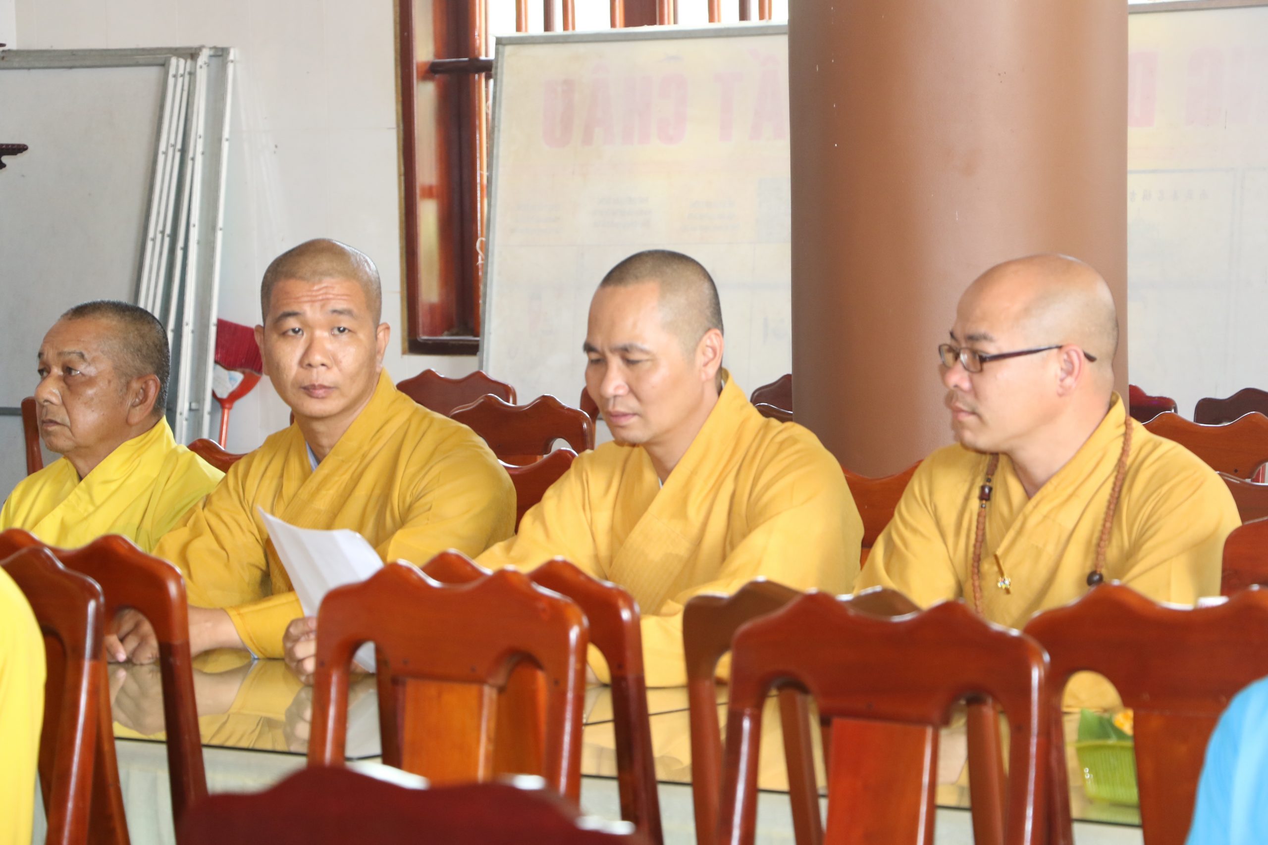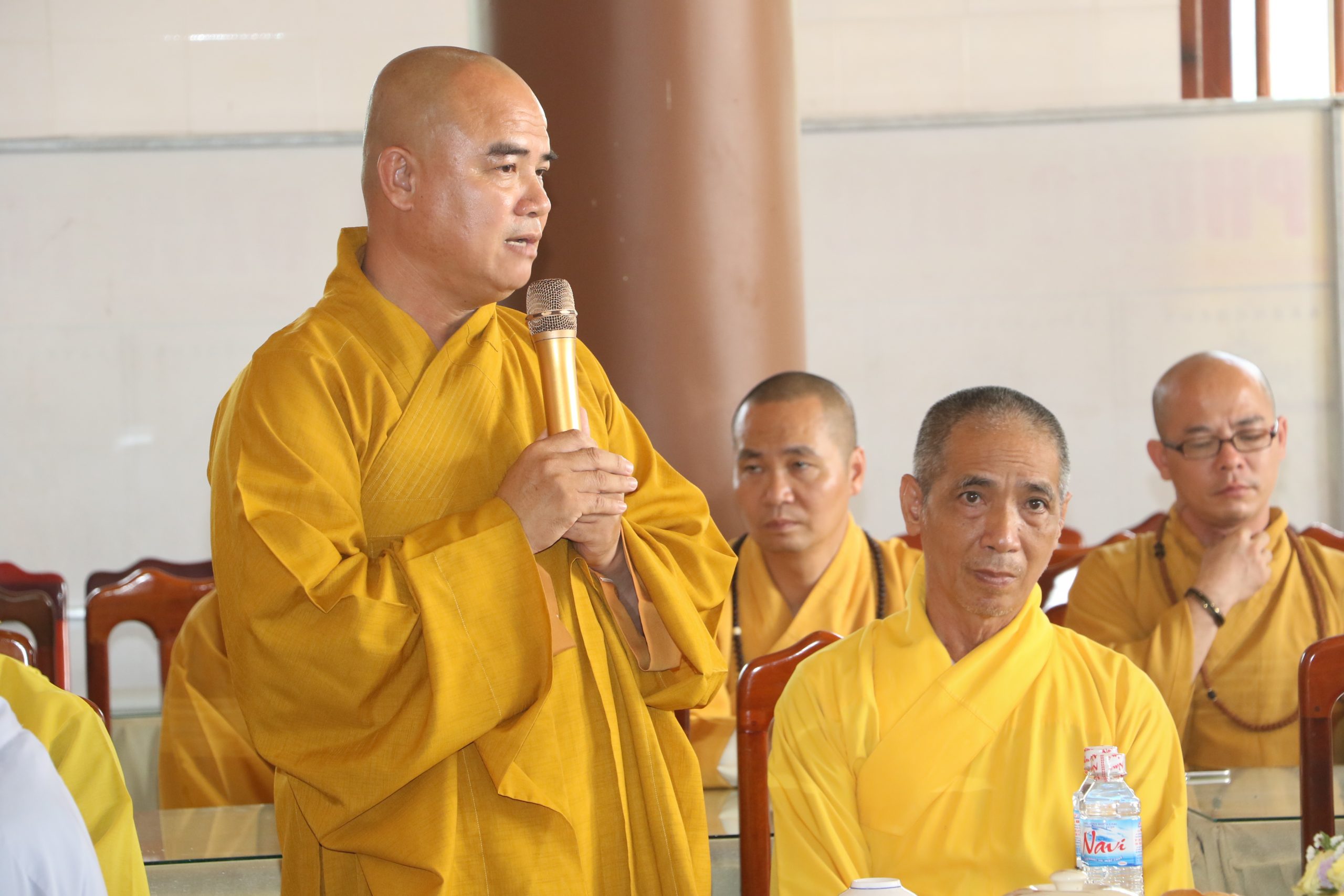 Thượng toạ Thích Thiện Hữu - trụ trì chùa Phước Đức đối trước chư Tôn đức Chứng minh giới thiệu Đại đức Thích Thiện Phúc về chùa Phước Đức