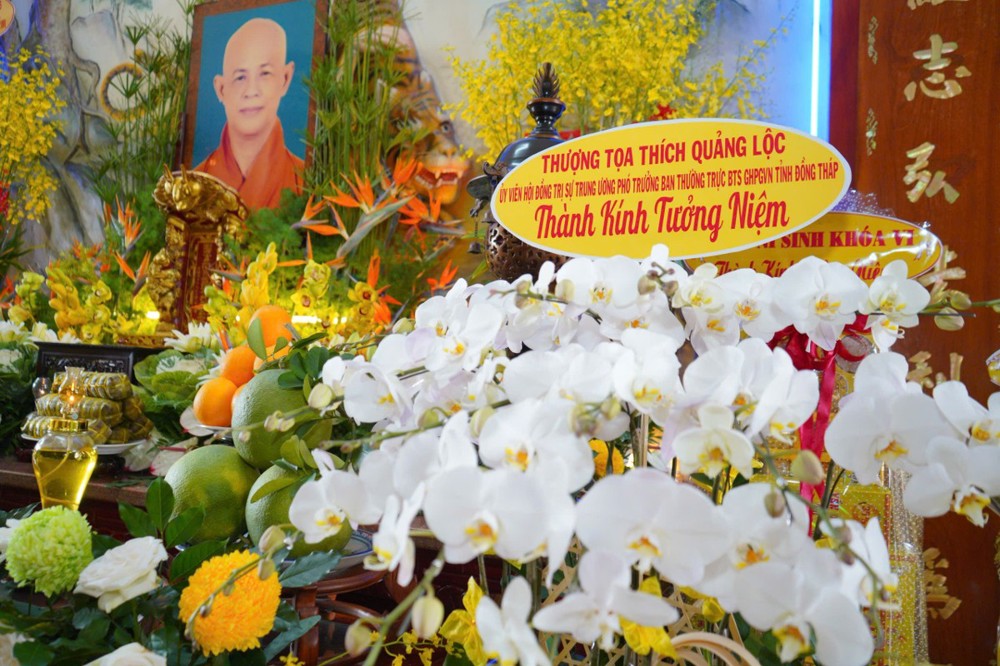Buổi lễ Tưởng niệm năm nay được sự quang lâm chứng minh của Trưởng lão Hòa thượng Thích Huệ Minh – Thành viên Ban Thường trực HĐCM, Chứng minh BTS GHPGVN tỉnh Đồng Tháp; HT.Thích Hoằng Đức, HT.Thích Giác Nhân – đồng Chứng minh BTS GHPGVN tỉnh; chư Tôn đức Tăng Ni trong Ban Giáo dục Phật giáo tỉnh, Ban Giám hiệu nhà trường; chư Tăng Ni sinh các thế hệ học trò của cố Hòa thượng và đông đảo Phật tử tham dự.