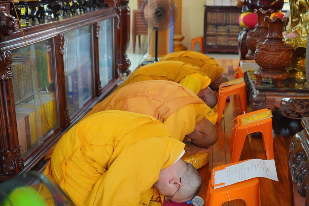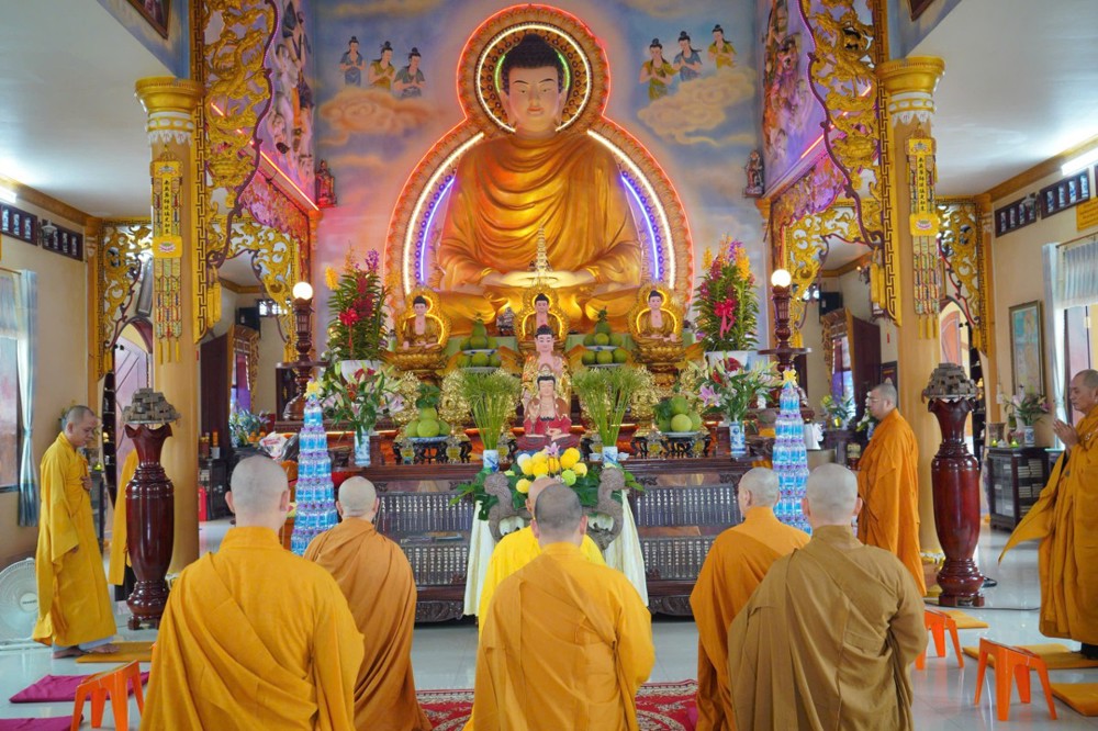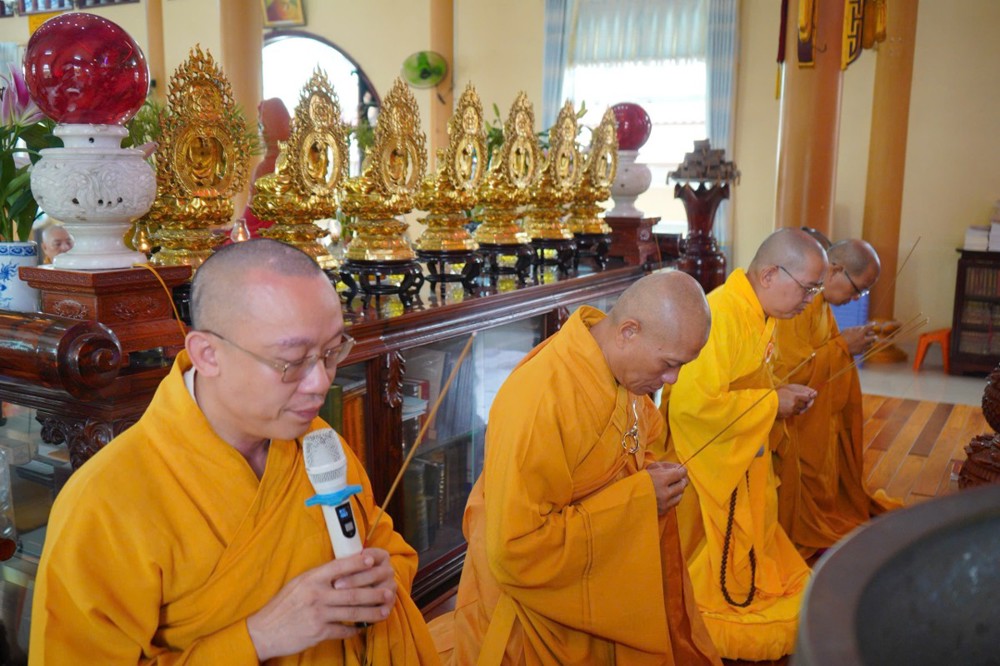 Sau đó chư Tôn đức chứng minh và hội chúng quang lâm Giác linh đường dâng hương Tưởng niệm cố Hòa thượng Hiệu trưởng Trường TCPH Tiền Giang. Kính nguyện Giác linh Hòa thượng bất vong bản thệ tái hiện Ta bà để tiếp tục hạnh nguyên hóa tha, viên thành Phật quả.