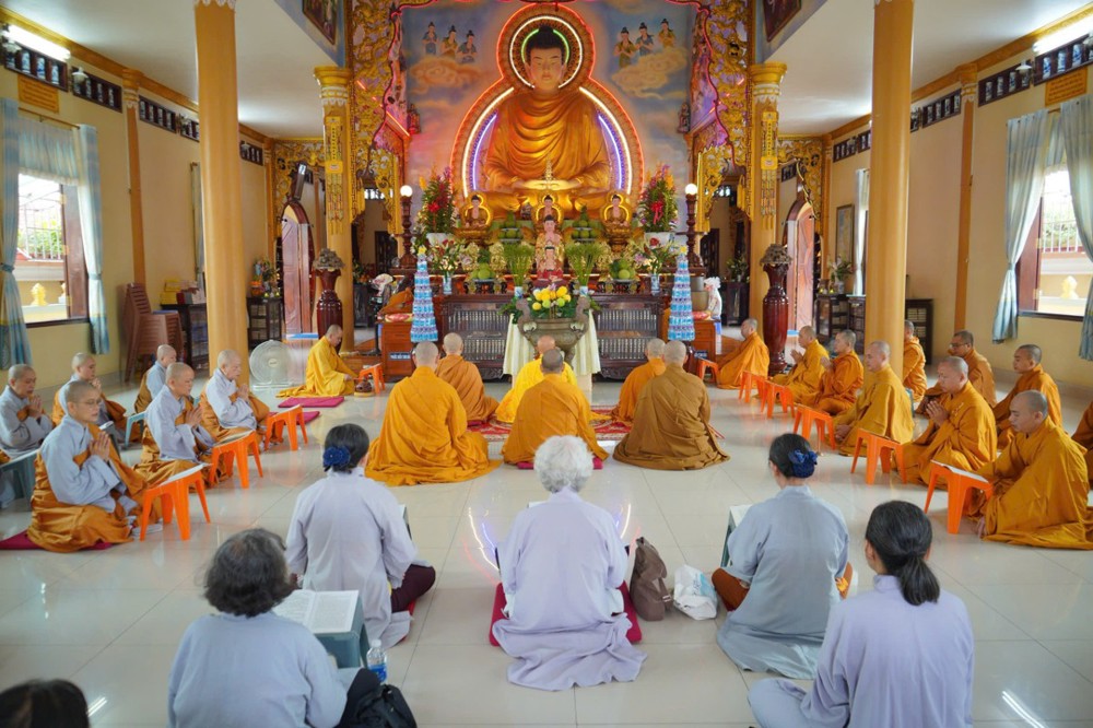 Với lòng thành kính, toàn thể hội chúng đã vân tập trang nghiêm nơi Chánh điện chùa Phật Ân để thực hiện Khóa lễ tụng kinh cầu nguyện trong ngày Tưởng niệm Hòa thượng Ân sư.