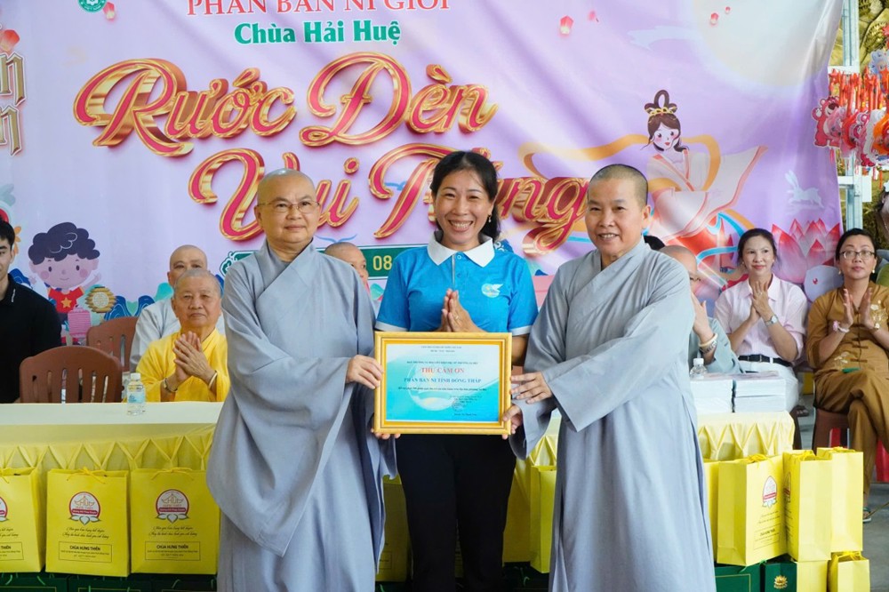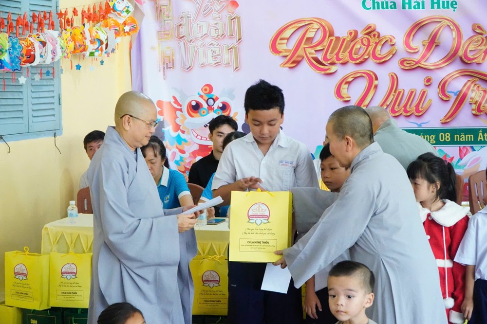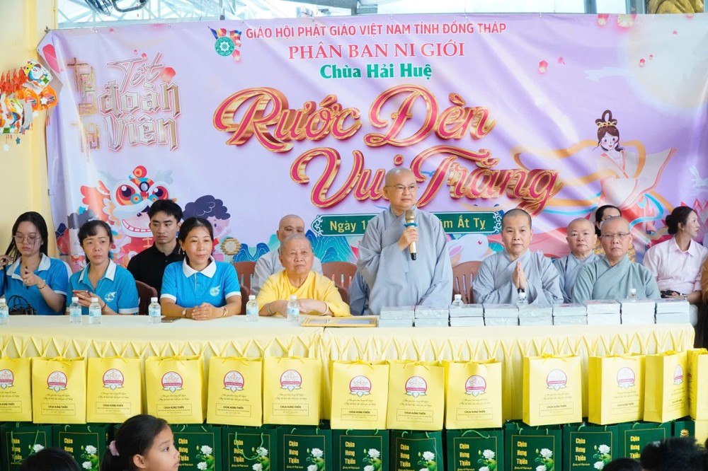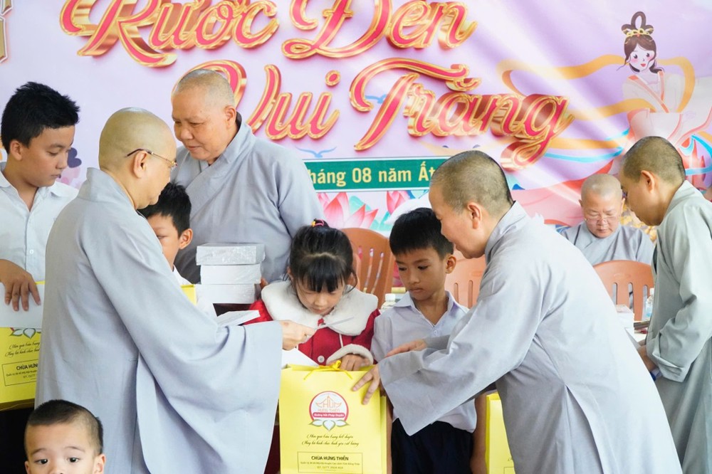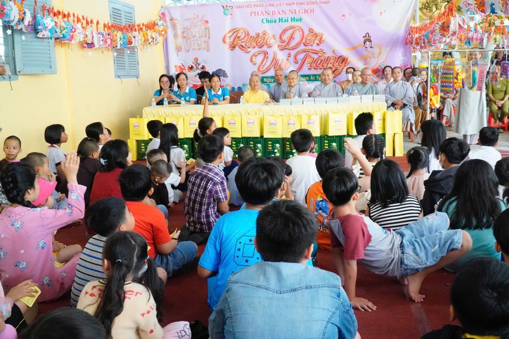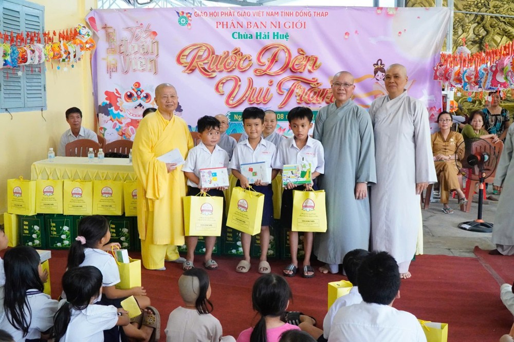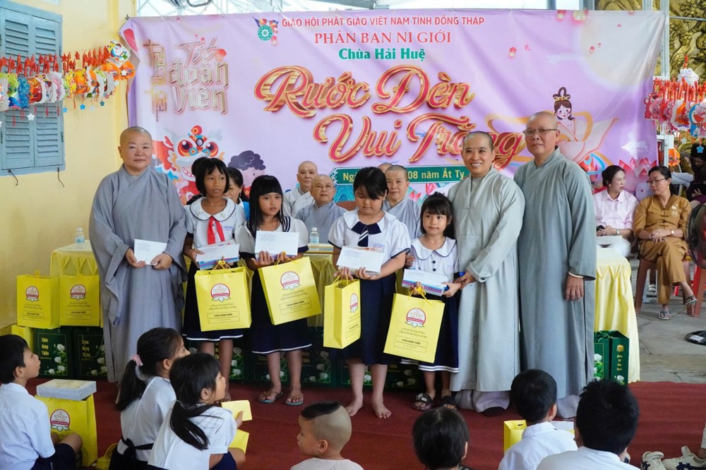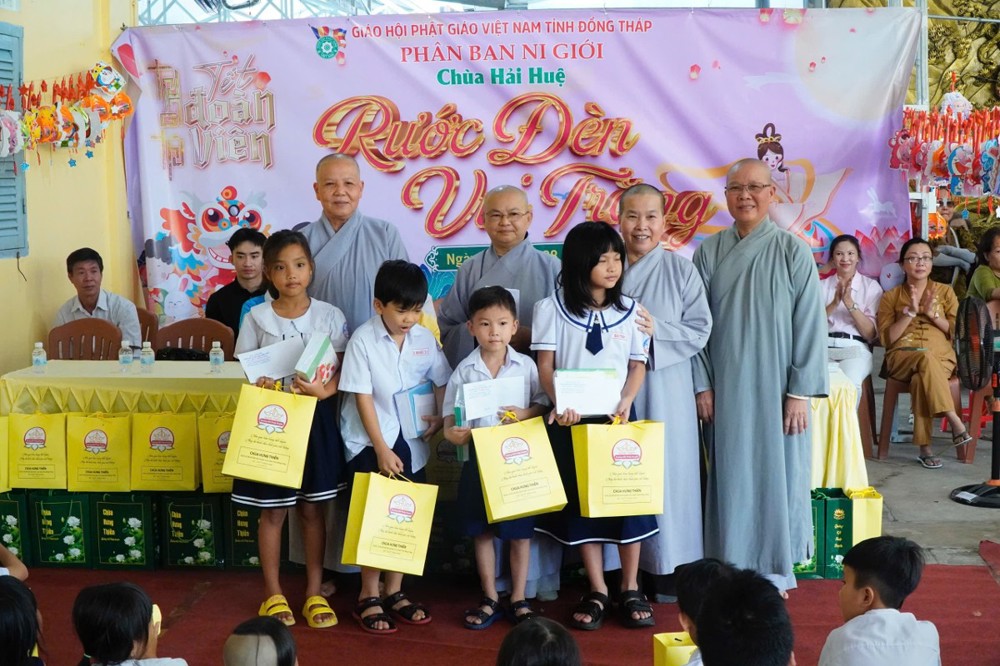Sau đó 600 phần quà trung thu mỗi phần trị giá 150 nghìn đồng và 20 suất học bổng mỗi phần 01 triệu đồng đã được Ban Tổ chức trao tặng đến các em thiếu nhi tại chùa Hải Huệ, phường Sa Đéc, tỉnh Đồng Tháp.