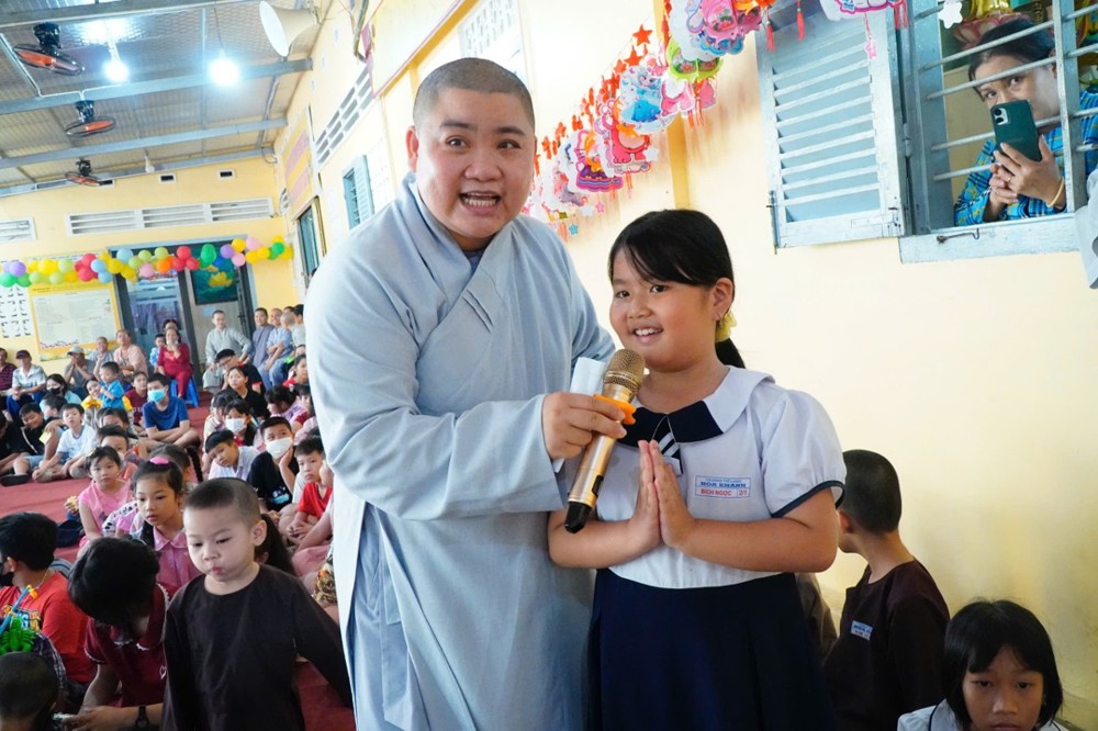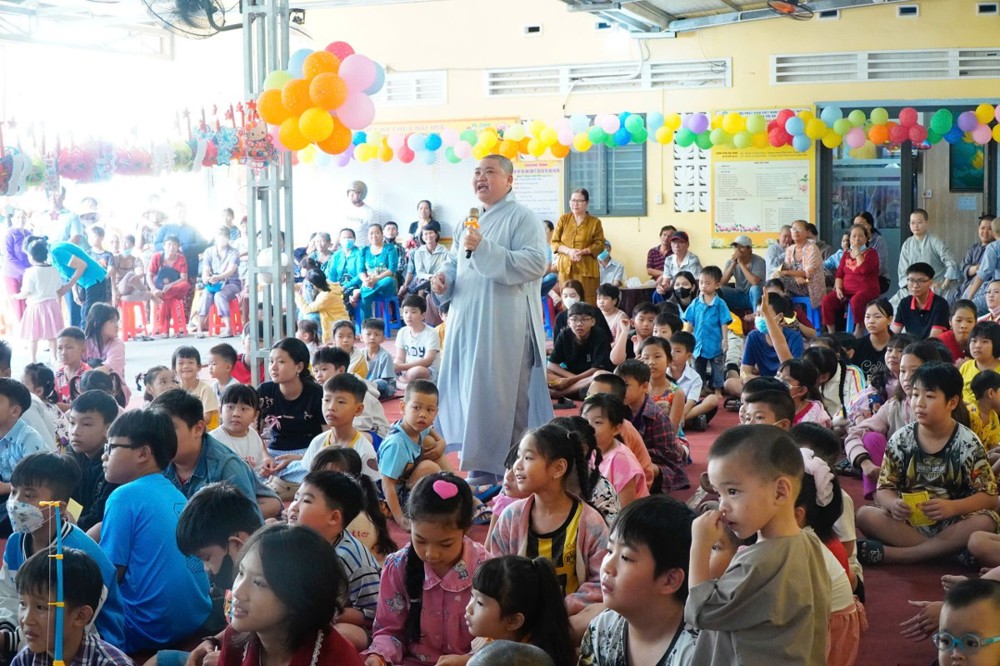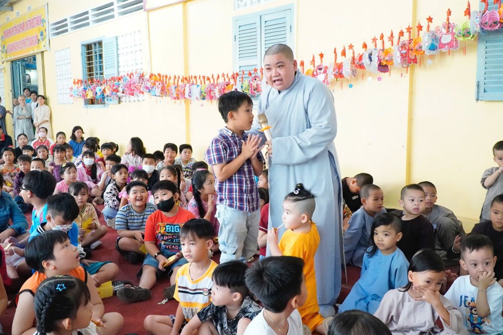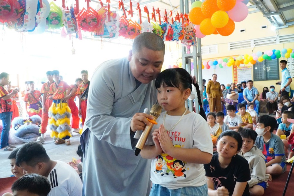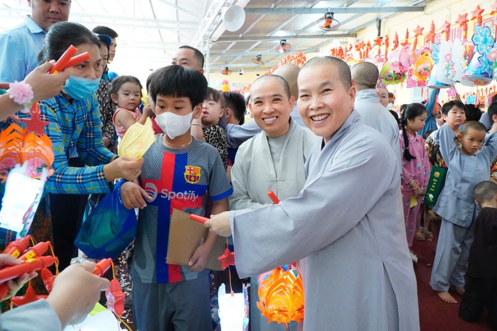 Phát biểu tại chương trình, Ni trưởng Thích Nữ Như Trung gửi lời chào đến các em thiếu nhi tham dự trung thu cũng như tri ân quý “mạnh thường quân” hỗ trợ những phần quà cho các em trong mùa trung thu năm nay.