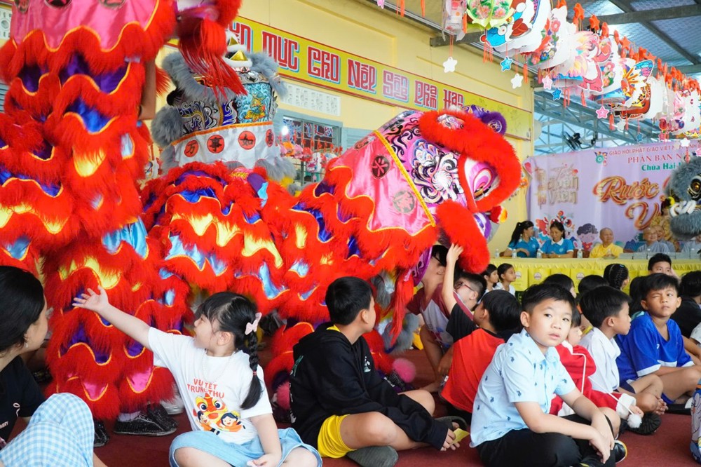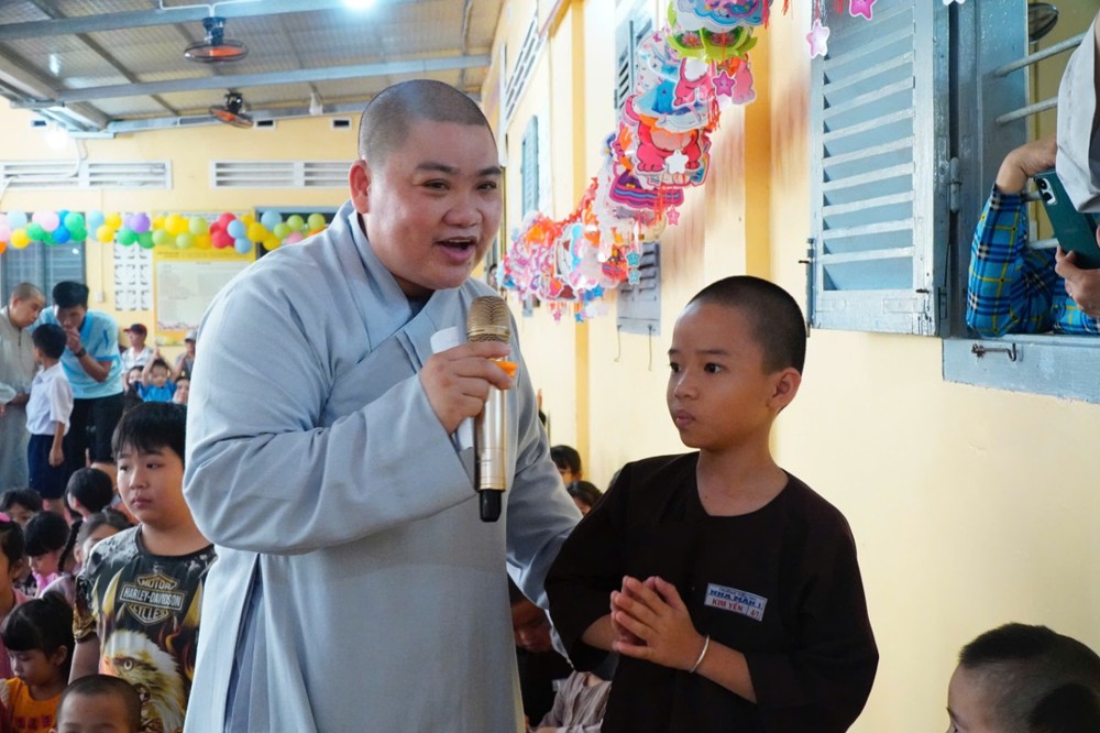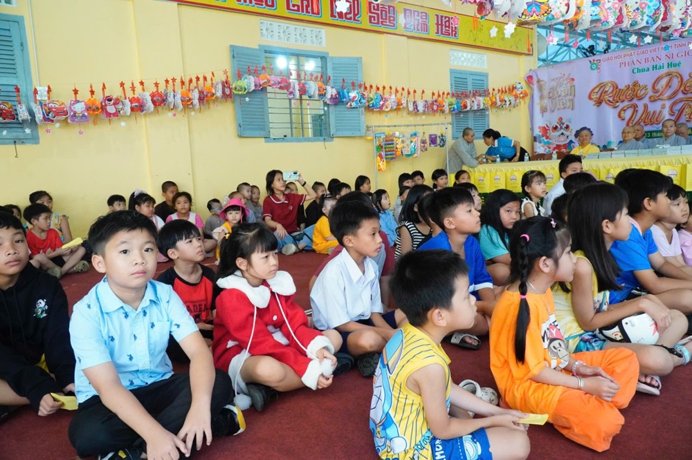 Tại buổi trao quà, các em còn được thưởng thức và cười sảng khoái với các tiết mục đố vui, văn nghệ, trò chơi dân gian ... dưới sự hướng dẫn của quý Tôn đức Ni trong Ban Tổ chức.
