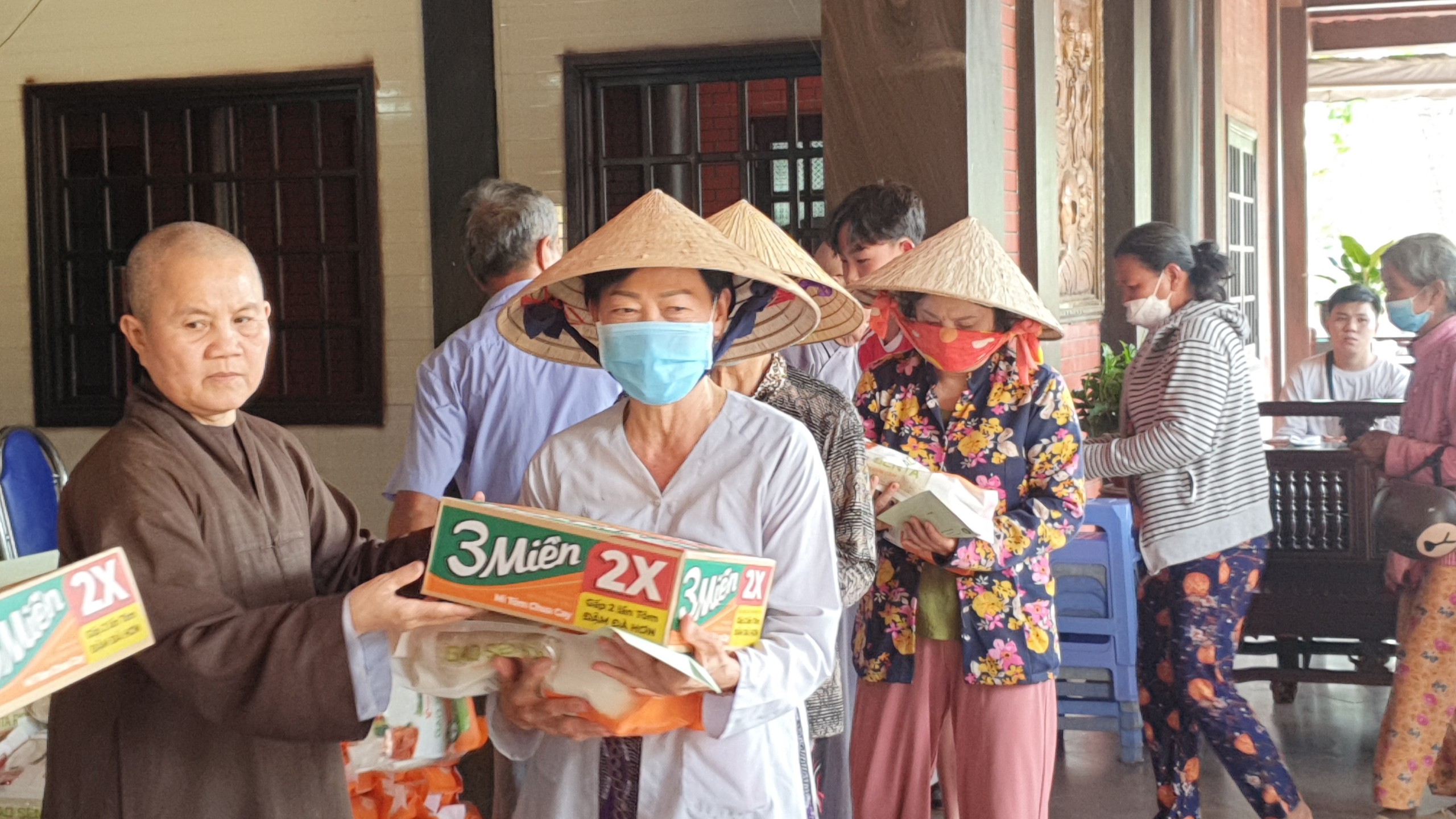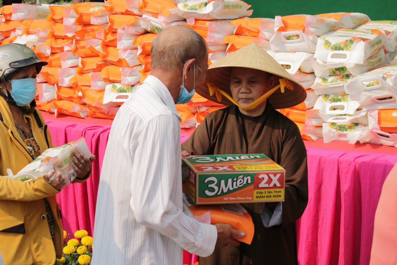 Đoàn từ thiện đã trao 400 phần quà hỗ trợ bà con huyện Châu Thành; trong đó, đoàn trao 150 phần quà tại chùa Phước Long (xã Tân Nhuận Đông) và trao 250 phần quà tại Trung tâm Văn hóa TDTT huyện Châu Thành.