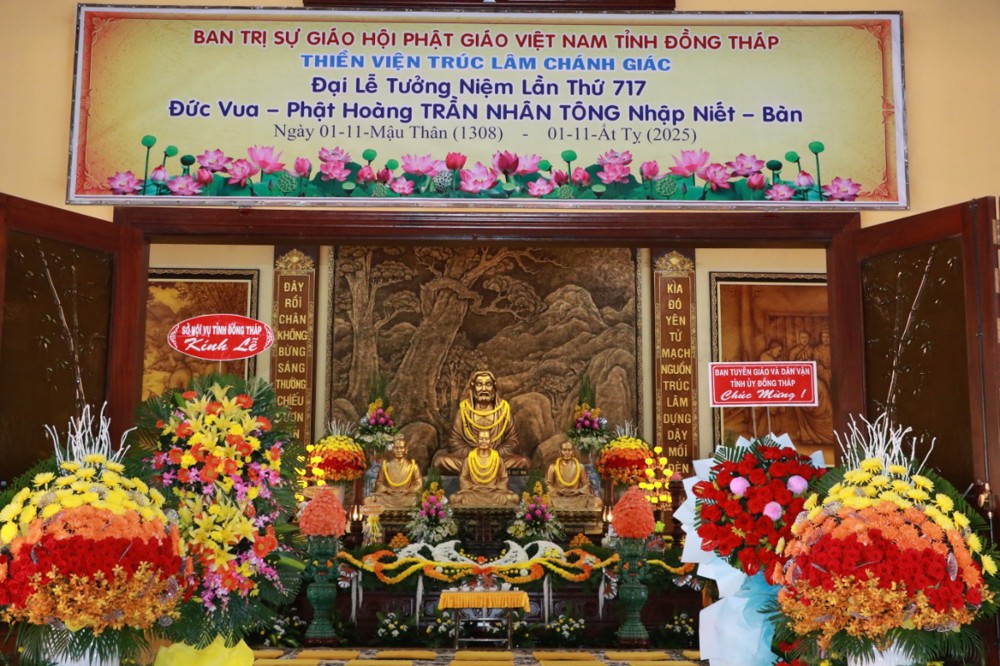 Hòa cùng đất trời Việt Nam, Phật giáo Việt Nam thành kính tưởng niệm ngày Đức Phật hoàng Trần Nhân Tông, vị vua anh minh, bậc xuất trần thượng sĩ, Tổ sư sáng lập thiền phái Trúc Lâm Yên Tử nhập Niết-bàn. Sáng 20/12/2025 (nhằm mùng 1/11 năm Ất Tỵ), tại thiền viện Trúc Lâm Chánh Giác - ấp 1, xã Tân Phước 2, tỉnh Đồng Tháp; Ban Trị sự GHPGVN tỉnh trang nghiêm tổ chức Lễ Tưởng niệm 717 năm ngày Đức vua – Phật hoàng Trần Nhân Tông nhập Niết-bàn.