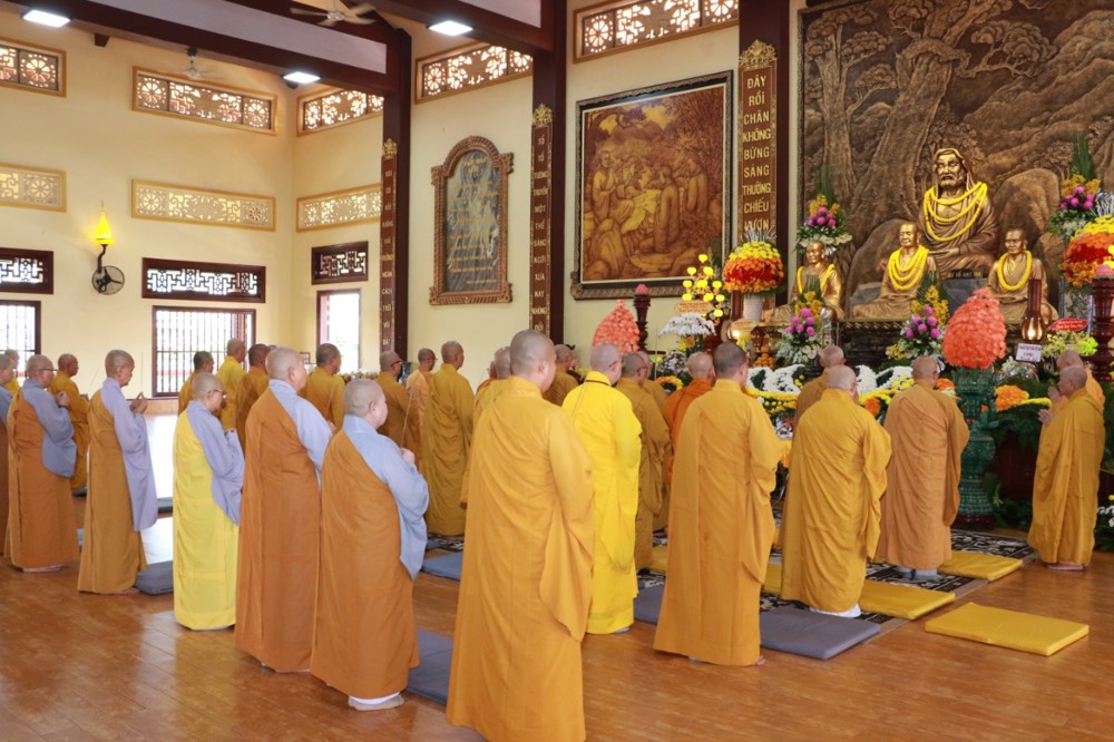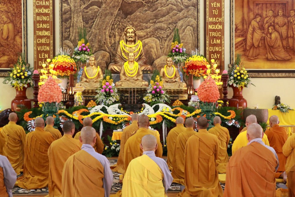 Toàn thể đại chúng đồng thanh tụng kinh, nhất tâm hướng vọng về Giác linh Đức Phật hoàng, bày tỏ niềm tri ân sâu sắc đối với công hạnh, đạo nghiệp và di sản tinh thần cao quý mà Ngài đã để lại cho đạo pháp và dân tộc. Thành kính đảnh lễ Trúc Lâm Trần Triều Sơ Tổ Điều Ngự Giác Hoàng Trần Nhân Tông Tổ sư.