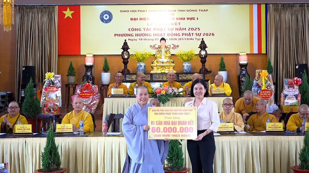 Đặc biệt, hưởng ứng lời kêu gọi của Ủy ban MTTQ Việt Nam tỉnh Đồng Tháp về việc chung tay xóa nhà tạm, tại buổi lễ, Đại diện Phật giáo Khu vực I đã trao tặng 01 căn nhà tình thương trị giá 60 triệu đồng.