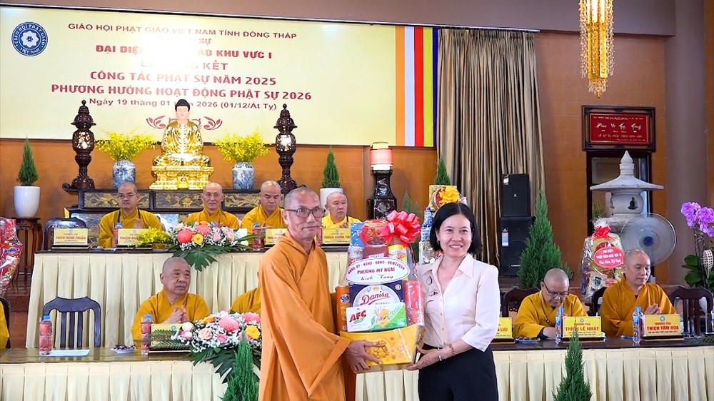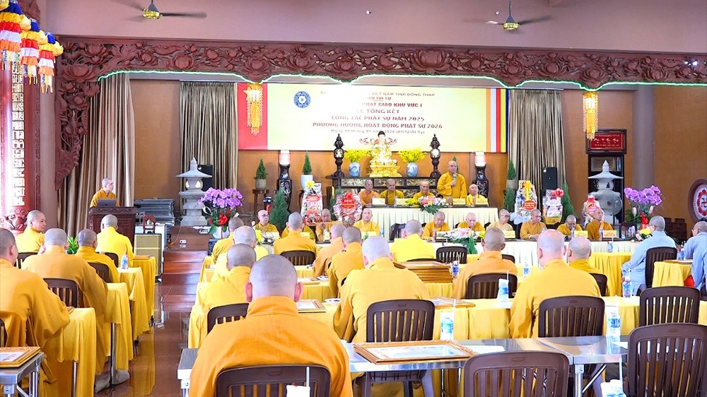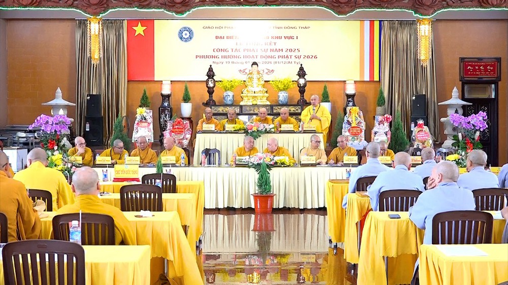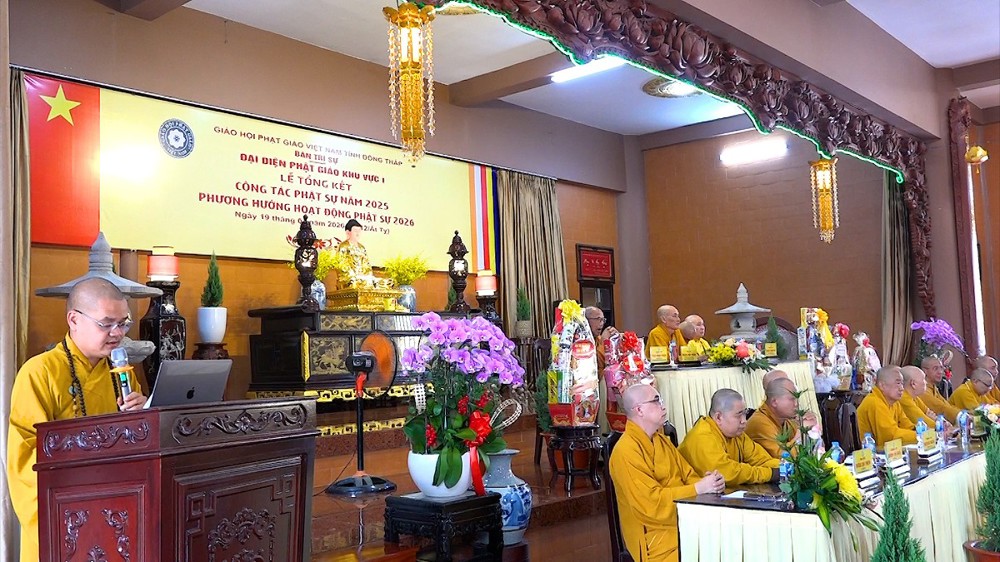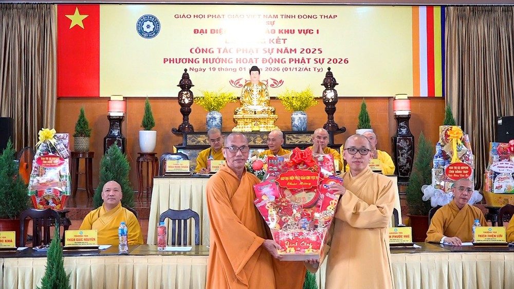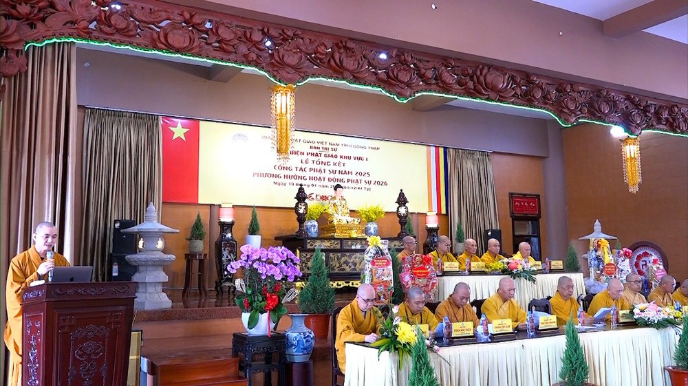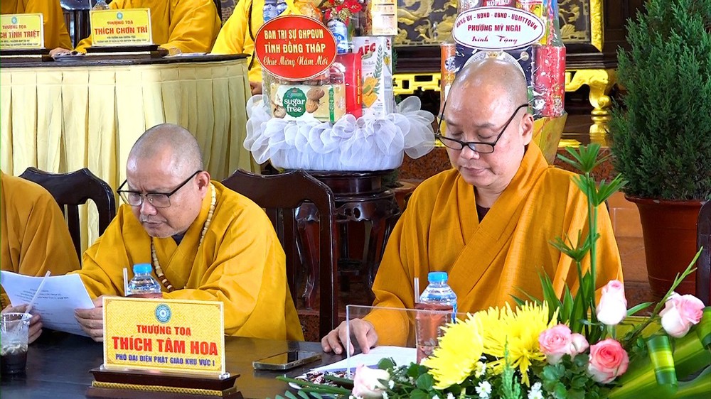 Thay mặt Ban Thư ký, ĐĐ.Thích Nguyên Ngộ – Thư ký Đại diện Phật giáo Khu vực I đã trình bày báo cáo tổng kết công tác Phật sự năm 2025. Theo số liệu thống kê, Khu vực I hình thành trên cơ sở của 4 huyện cũ (Thanh Bình, Tháp Mười, Cao Lãnh, TP.Cao Lãnh) có 61 cơ sở tự viện với tổng số 648 Tăng Ni đang tu học. Trong năm qua, công tác quản lý Tăng Ni, bổ nhiệm trụ trì đã đi vào ổn định và nề nếp.