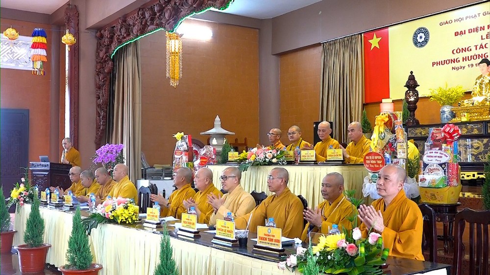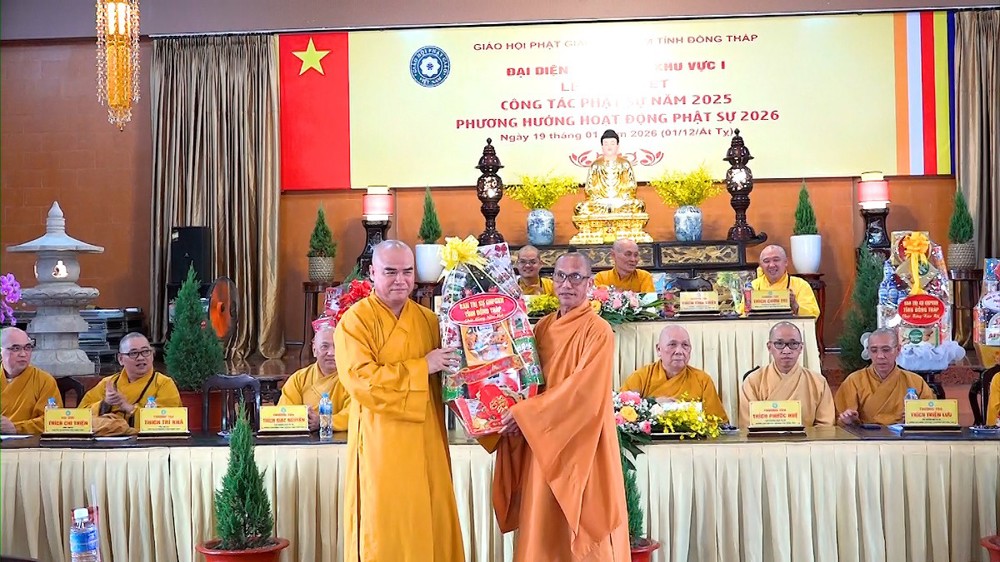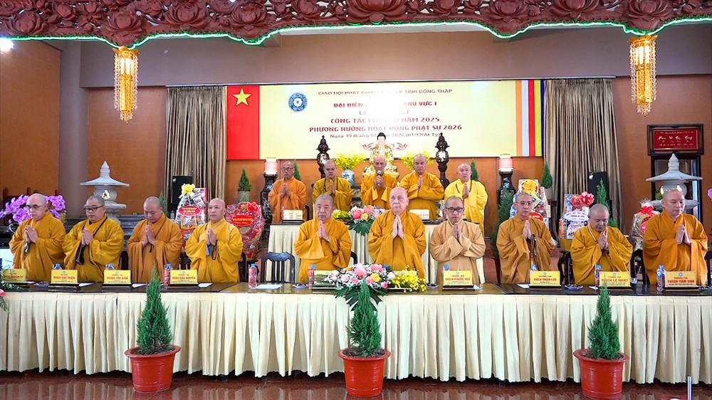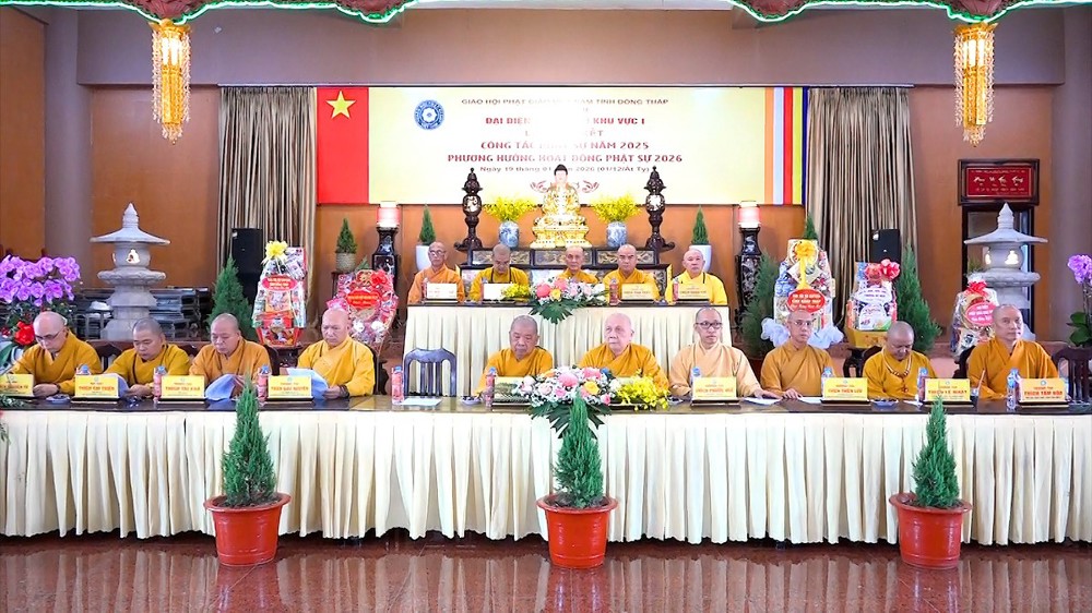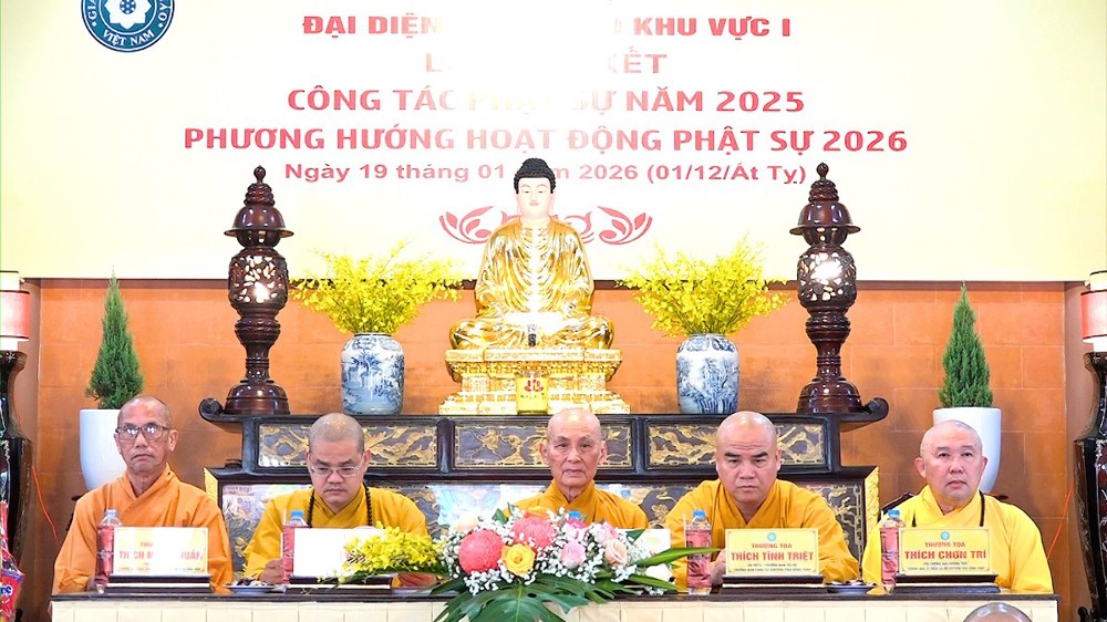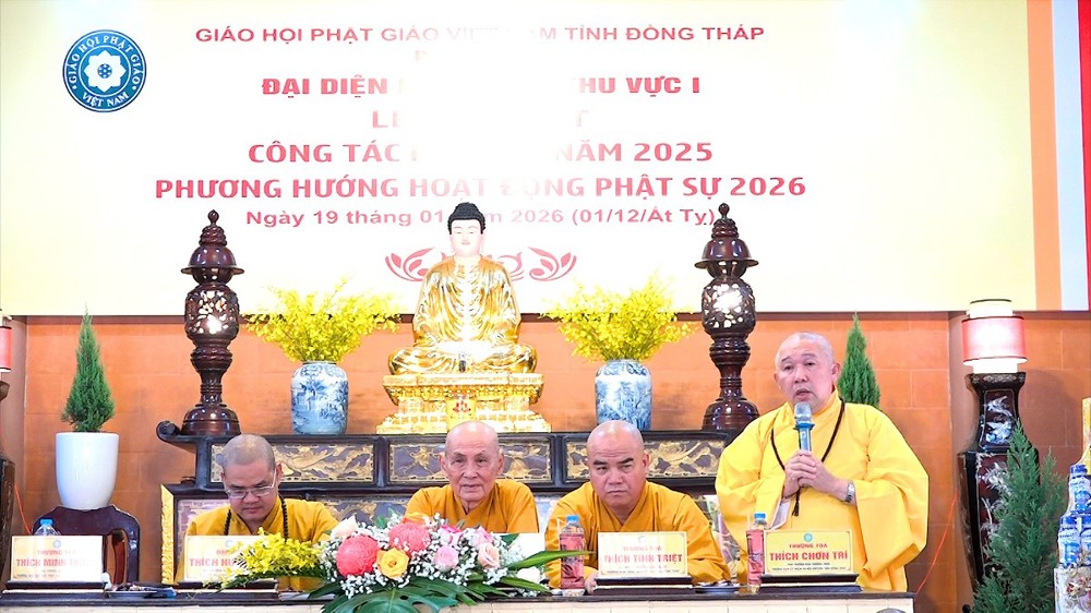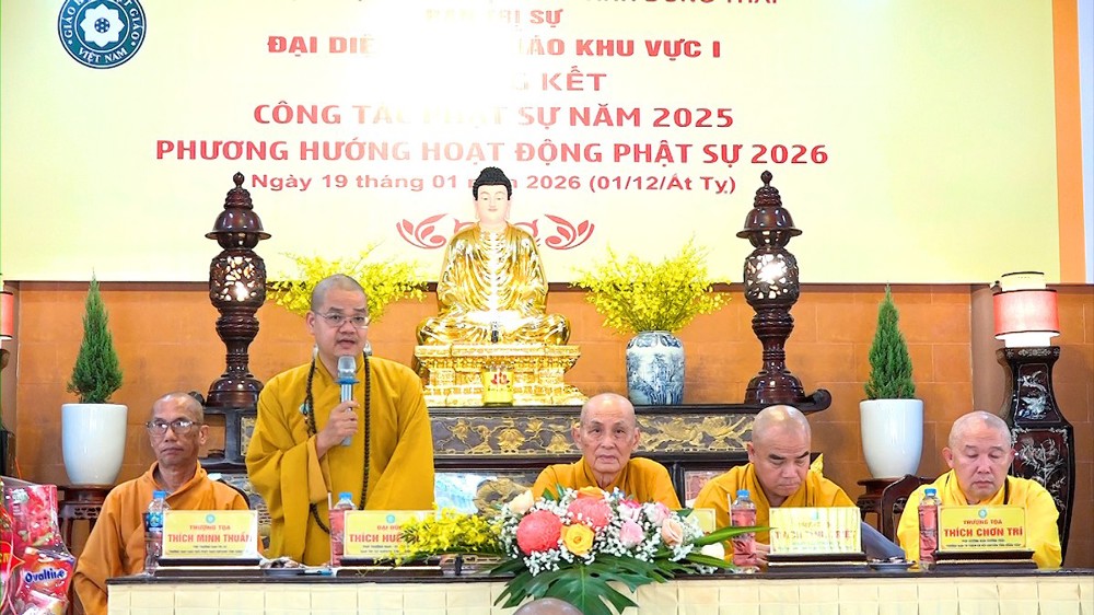 Hội nghị được lắng nghe lời đạo từ và chỉ đạo từ TT.Thích Tĩnh Triệt. Thượng tọa đã tán dương những thành quả mà Phật giáo Khu vực I đạt được, đặc biệt là con số ấn tượng trong công tác từ thiện xã hội. Thượng tọa mong muốn Tăng Ni, Phật tử tiếp tục phát huy tinh thần đoàn kết, hòa hợp để hoàn thành tốt các mục tiêu Phật sự trong năm mới 2026.