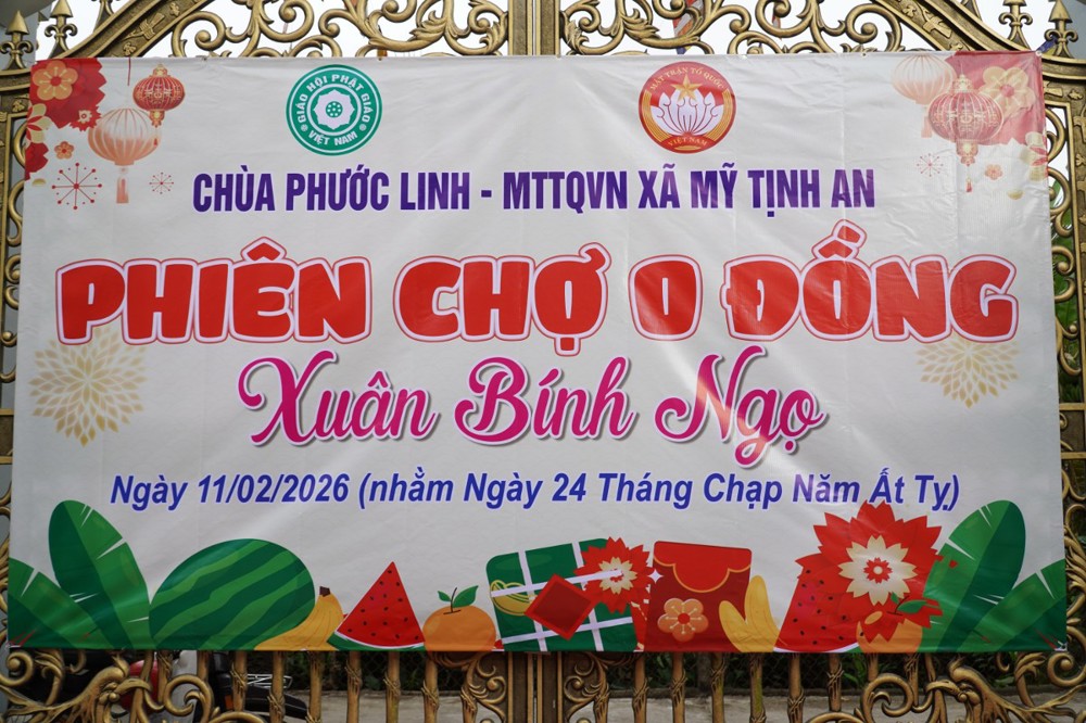 PSO - Nhân dịp Tết Nguyên đán xuân Bính Ngọ, sáng ngày 11/02/2026 (24 tháng Chạp năm Ất Tỵ) chùa Phước Linh (ấp hòa Bình, xã Mỹ Tịnh An, tỉnh Đồng Tháp) kết hợp Ủy ban Mặt trận Tổ quốc Việt Nam xã Mỹ Tịnh An tổ chức Phiên chợ Tết 0 đồng nhằm hỗ trợ các hộ gia đình có hoàn cảnh khó khăn trên địa bàn vui xuân đón Tết đủ đầy, ấm áp.