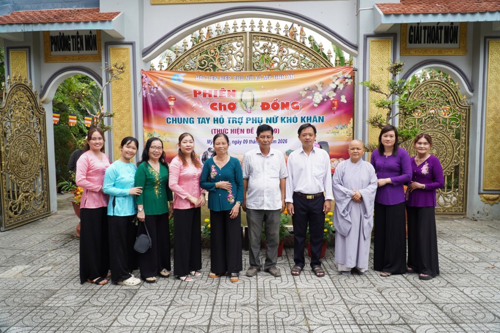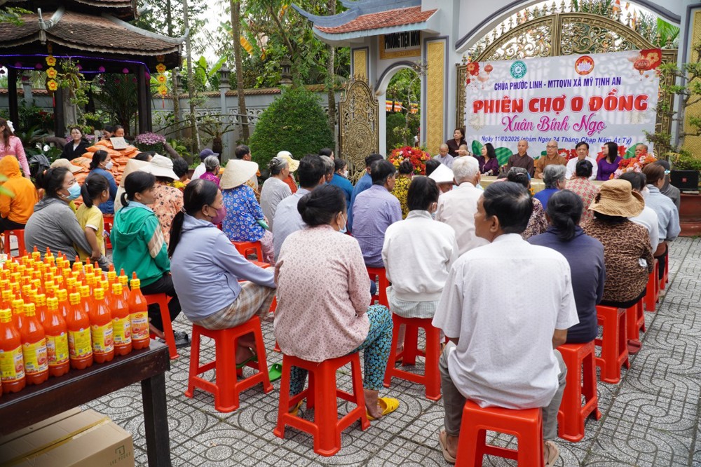 Phiên chợ được sự tham dự của chư Tôn đức Tăng, Ni một số tự viện trong tỉnh. Đại diện chính quyền địa phương có ông Nguyễn Tấn Vững – Thường vụ Đảng ủy, Chủ tịch UB MTTQVN xã Mỹ Tịnh An; bà Nguyễn Thị Hồng Nhung – Phó Chủ tịch UB MTTQVN, Chủ tịch Hội Liên hiệp Phụ nữ xã Mỹ Tịnh An; quý Phật tử tài trợ chương trình và đông đảo người dân tại địa phương.