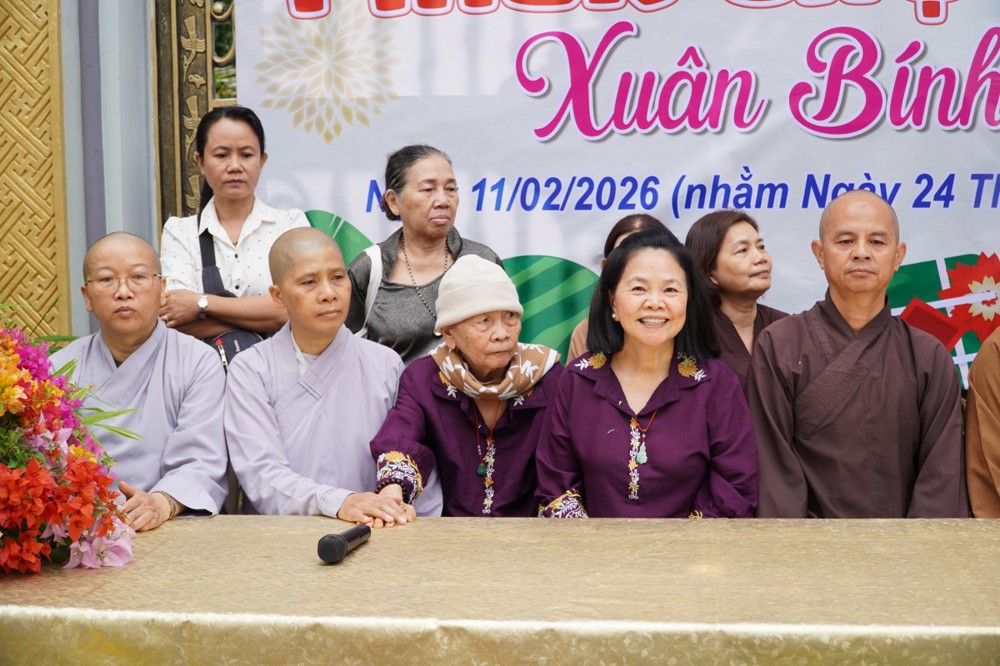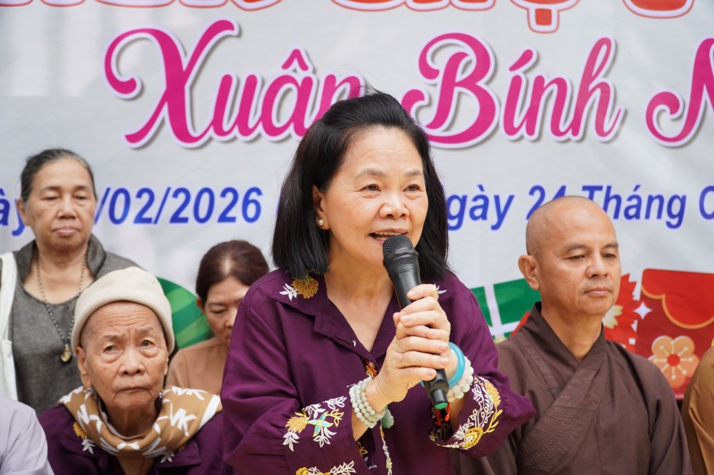 Phát biểu tại chương trình, Ni sư Thích Nữ Diệu Tâm chia sẻ mong muốn mang đến một cái Tết đong đầy nghĩa tình cho bà con còn khó khăn, đồng thời lan tỏa tinh thần từ bi, sẻ chia trong cộng đồng. Ni sư cũng gửi lời tri ân đến các nhà hảo tâm và chính quyền địa phương đã đồng hành cùng chùa để chương trình được tổ chức chu đáo, ý nghĩa.