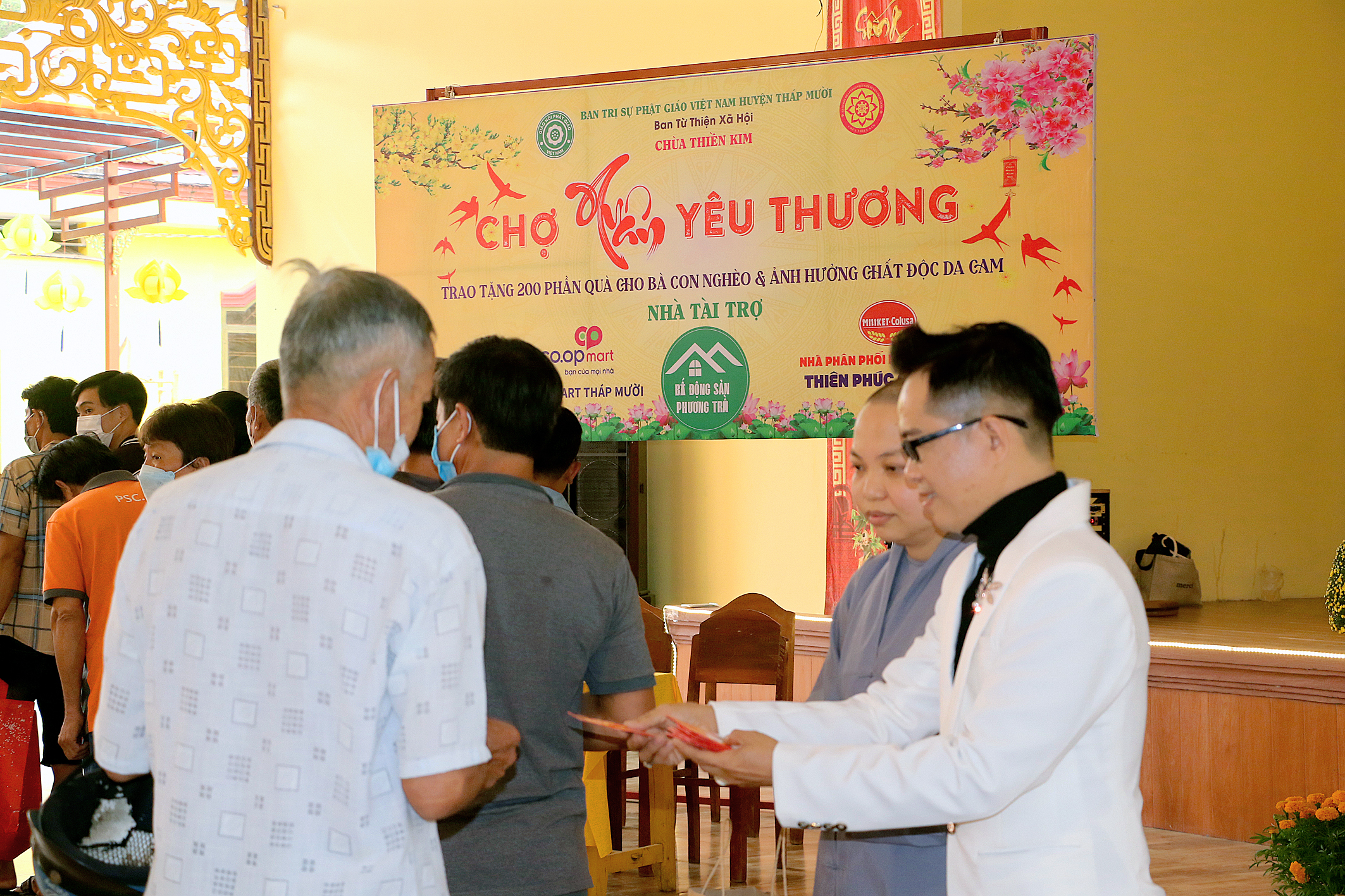 Tại buổi phát quà , Đại đức Thích Thiện Nguyện - trụ trì chùa Thiền Kim đã vận động mạnh thường quân doanh nghiệp hỗ trợ cho phiên chợ “Xuân Yêu Thương” nhằm chia sẻ một phần nào trước thềm xuân Quý Mão (2023). Qua đó, Đại đức đã gởi lời hỏi thăm sức khỏe tới bà con, cầu chúc cho mọi người có thể bình an đón một mùa Xuân với nhiều niềm vui và hạnh phúc bên gia đình. Đồng thời, Đại đức cũng căn dặn mọi người vui Xuân lành mạnh, luôn chấp hành tốt các quy định của Pháp luật, tránh xa các tệ nạn, để chung tay cùng cộng đồng đón một mùa xuân vui tươi, ý nghĩa.